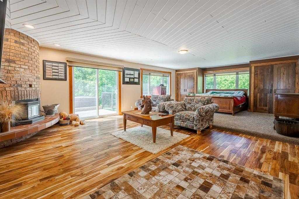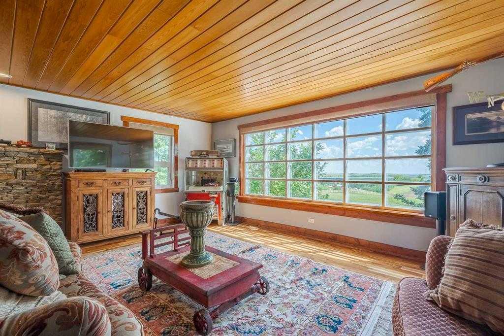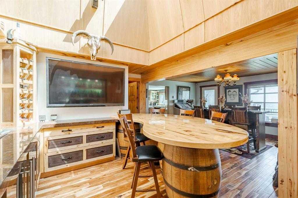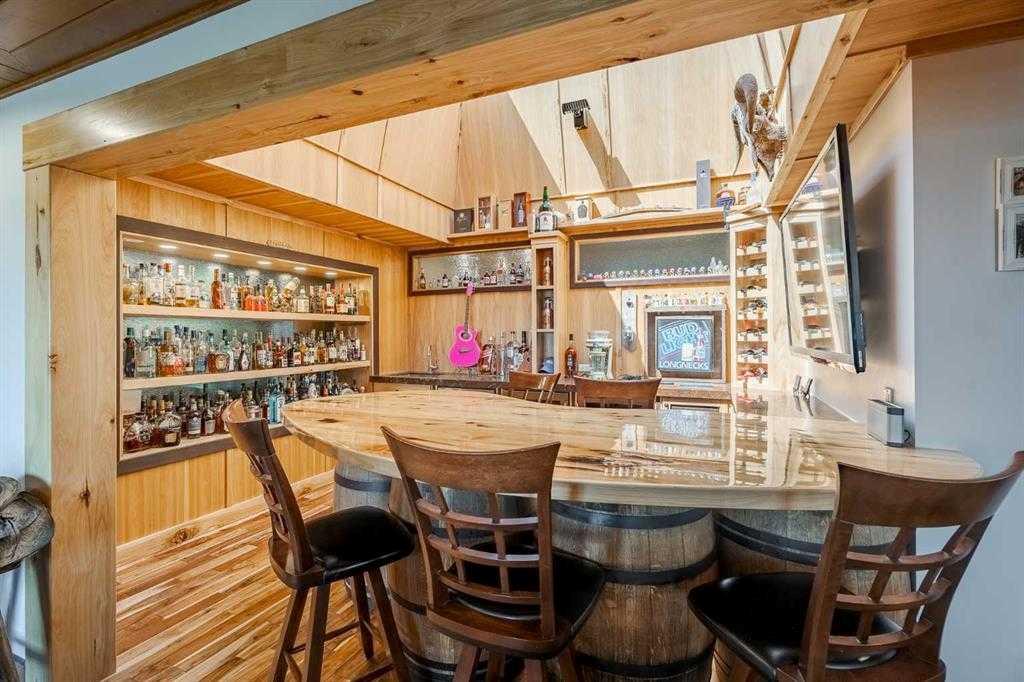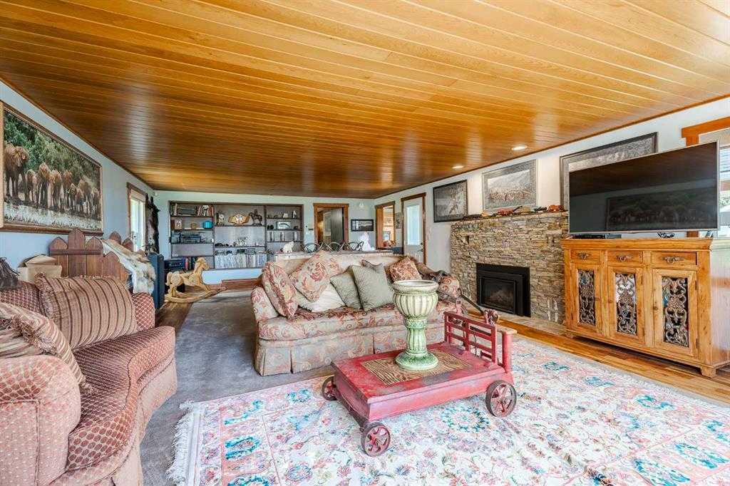 Welcome to your dream retreat, nestled on a picturesque 20-acre parcel in the scenic southwest region of Calgary. This stunning bungalow offers a rare blend of space, privacy, and tranquility—perfect for those looking to escape the hustle of city life without sacrificing convenient access to urban amenities. As you arrive, you’ll be immediately captivated by the natural beauty of the property. Lush greenery, rolling terrain, and breathtaking views create a peaceful, park-like setting—an ideal backdrop for a truly serene lifestyle. Spanning an impressive 3,768 sq. ft., the home is thoughtfully designed for both comfortable living and exceptional entertaining. At its heart is a spacious gourmet kitchen featuring high-end Electrolux appliances, heated granite countertops, knotty hickory cabinetry, and abundant workspace and storage. Just off the kitchen, a custom-built bar—highlighted by an 8x8 skylight, rich wood finishes, and bespoke cabinetry—offers a standout space for hosting and gathering. The living room exudes warmth and character, with wood ceilings and a cozy fireplace creating an inviting focal point, all while showcasing panoramic countryside views. The main floor includes four generously sized bedrooms, including a luxurious primary suite complete with a spa-inspired ensuite featuring a steam shower—your own private retreat. This home has been extensively renovated throughout, including updated wiring and plumbing, 50-year shingles, new windows, acacia hardwood flooring, porcelain tile, spray foam and batt insulation, and a natural gas backup generator. Enhanced security features include 16 on-site cameras. A full list of upgrades is available—please inquire for details. Additional features include a heated triple-car garage with full panel, as well as a fully heated barn currently used as a shop, with the rear portion functioning as a stable. The self-contained (illegal) suite above the barn is ideal for extended family or added revenue. The well produces 5+ GPM (per recent test), and the property is legally permitted to accommodate up to six horses—making it perfectly suited for equestrian or hobby farm use. Outdoor enthusiasts will appreciate direct access to nature, with the Anne and Sandy Cross Conservation Area located just across the road—ensuring protected views and no future development. Despite the peaceful setting, you’re still just a short drive to shopping, dining, schools, and essential services. This exceptional 3,700 sq. ft. bungalow on 20 acres offers a rare opportunity to enjoy a truly idyllic lifestyle. Properties like this must be seen to be fully appreciated.