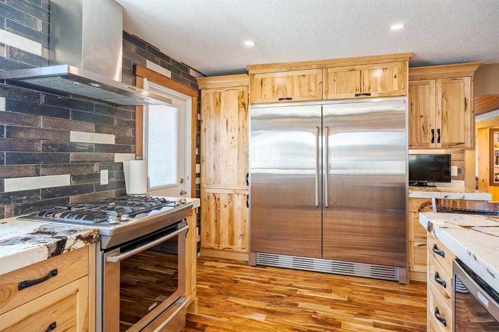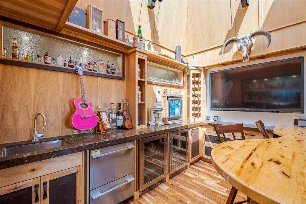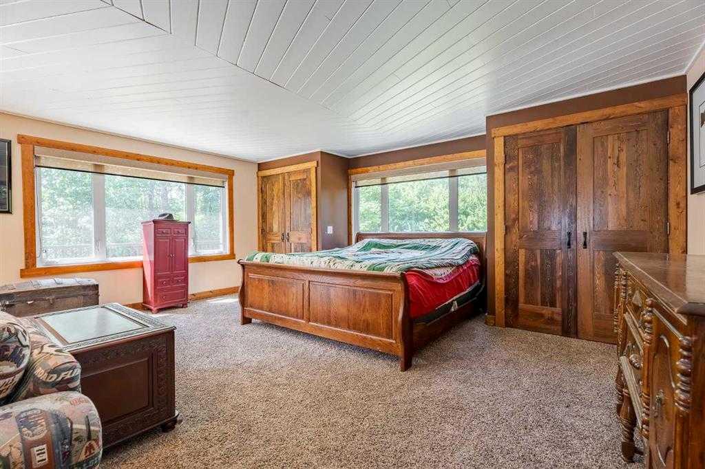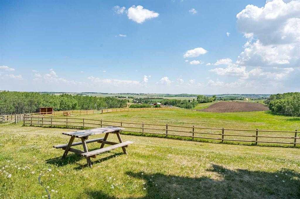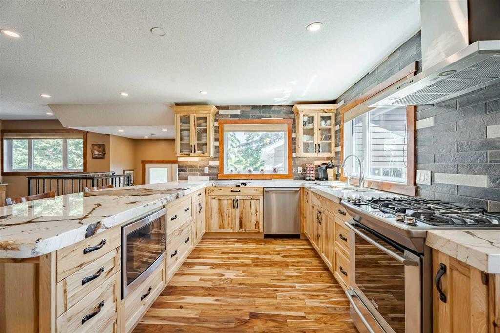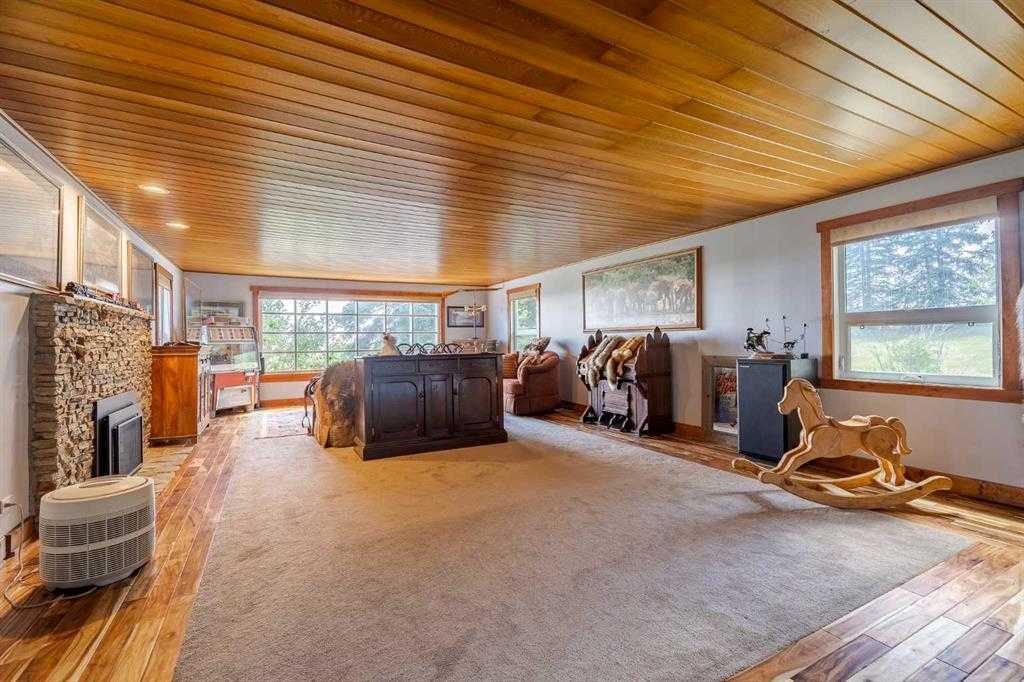 Welcome to your dream retreat, nestled on a picturesque 20-acre parcel in the scenic southwest region of Calgary. This stunning bungalow offers a rare blend of space, privacy, and tranquility—perfect for those looking to escape the hustle of city life without sacrificing convenient access to urban amenities. As you arrive, you’ll be immediately captivated by the natural beauty of the property. Lush greenery, rolling terrain, and breathtaking views create a peaceful, park-like setting—an ideal backdrop for a truly serene lifestyle. Spanning an impressive 3,768 sq. ft., the home is thoughtfully designed for both comfortable living and exceptional entertaining. At its heart is a spacious gourmet kitchen featuring high-end Electrolux appliances, heated granite countertops, knotty hickory cabinetry, and abundant workspace and storage. Just off the kitchen, a custom-built bar—highlighted by an 8x8 skylight, rich wood finishes, and bespoke cabinetry—offers a standout space for hosting and gathering. The living room exudes warmth and character, with wood ceilings and a cozy fireplace creating an inviting focal point, all while showcasing panoramic countryside views. The main floor includes four generously sized bedrooms, including a luxurious primary suite complete with a spa-inspired ensuite featuring a steam shower—your own private retreat. This home has been extensively renovated throughout, including updated wiring and plumbing, 50-year shingles, new windows, acacia hardwood flooring, porcelain tile, spray foam and batt insulation, and a natural gas backup generator. Enhanced security features include 16 on-site cameras. A full list of upgrades is available—please inquire for details. Additional features include a heated triple-car garage with full panel, as well as a fully heated barn currently used as a shop, with the rear portion functioning as a stable. The self-contained (illegal) suite above the barn is ideal for extended family or added revenue. The well produces 5+ GPM (per recent test), and the property is legally permitted to accommodate up to six horses—making it perfectly suited for equestrian or hobby farm use. Outdoor enthusiasts will appreciate direct access to nature, with the Anne and Sandy Cross Conservation Area located just across the road—ensuring protected views and no future development. Despite the peaceful setting, you’re still just a short drive to shopping, dining, schools, and essential services. This exceptional 3,700 sq. ft. bungalow on 20 acres offers a rare opportunity to enjoy a truly idyllic lifestyle. Properties like this must be seen to be fully appreciated.