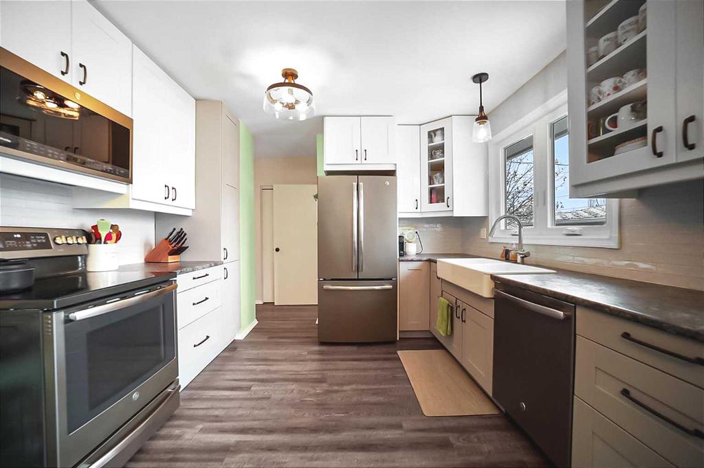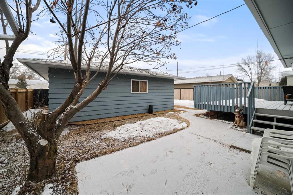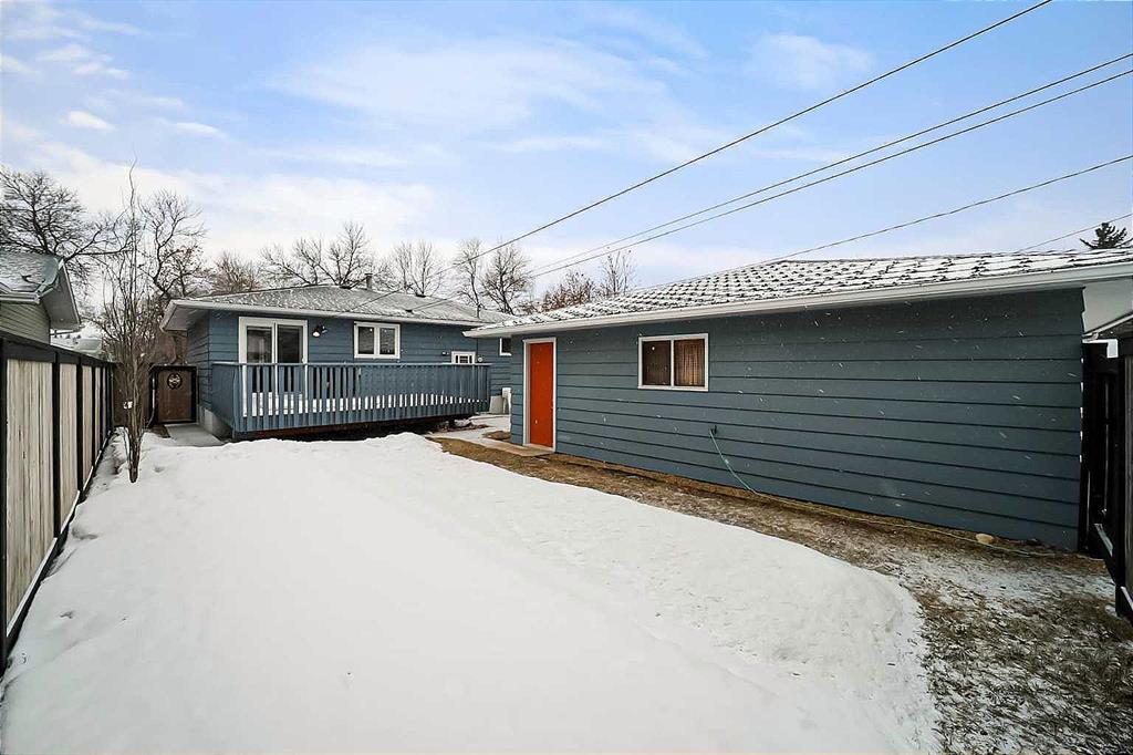 What a welcoming place to call HOME! Thoroughly and thoughtfully updated both inside and out, this entirely charming 3 bedroom, 2 full-bath Camrose bungalow is truly something to behold. Tasteful and stylish finishes greet you from the street with freshly painted siding, updated shingles, manicured lawn, crisp vinyl windows and decorative detail on the gates to the fully fenced yard. Upon entry, you'll notice the awesomeness in layers - warm and neutral vinyl plank flooring, fresh paint, cohesive light fixtures, a mosaic mantle surrounding the electric fireplace and a floorplan that flows. You might agree that the heart of the home is the entirely updated kitchen (2020); complete with counters, cupboards, appliances, sink, tile backsplash, vinyl window frames and a functionally ideal dining area. For added convenience, the patio doors lead you onto the 18' x 12' deck where grilling, gathering and relaxing can continue outdoors! Two spacious bedrooms also grace the main floor, along with a custom 4 piece bath with new and matching colorful fixtures, vanity, tile, trims and even in-floor heating. Heading downstairs, the foyer at the back door entrance offers a place to drop your bags, hang your hat and store your boots, while a few steps down lead you to a basement that everyone will want to use! The bath on this level features a tiled walk-in shower, soaker tub and updated vanity too - a spa experience at home! There's also a spacious rec area, flex space, third bedroom, cold storage, and nice open laundry room. The whole family has a newly fenced back yard to enjoy here with a level lawn and shade from a mature mountain ash tree, plus a double detached garage + parking pad with alley access to accommodate toys, vehicles and even RV parking. The location offers excellent proximity to schools and playgrounds, downtown amenities and privacy from busy streets. The shingles on the garage are the only thing left on the to-do list, don't wait to book your viewing at this one!