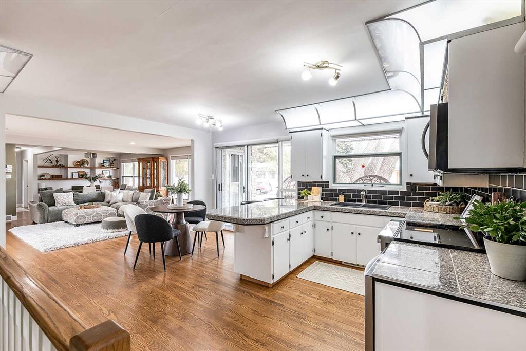 Welcome to this spacious, beautifully updated brick bungalow located in a quiet NW Crescent Heights neighbourhood - where charm, functionality, and outdoor living come together effortlessly. The timeless brick exterior sets the tone for a home that has been lovingly maintained and thoughtfully improved. Step inside to a bright and airy open-concept main floor, where warm hardwood flooring flows throughout. The updated kitchen is both stylish and practical, featuring stainless steel appliances, tiled backsplash, an island - plus a cozy spot to enjoy breakfast before going out to the front covered deck with a cup of coffee. The adjoining living room is filled with natural light from both the front and back windows and anchored by a gas fireplace, creating a warm and welcoming space. A generous dining area with built-in shelving and cabinetry offers plenty of room to gather and entertain. The main level also offers two good sized bedrooms, a full four-piece bathroom, and the added convenience of a two-piece bath combined with laundry - making everyday living easy and accessible. Downstairs, the fully developed basement expands your living space with a large family and games room complete with murphy bed for guests, an office, and a refreshed three-piece bathroom with new sink and vanity. A substantial storage room with extensive cabinetry and counter space provides the perfect opportunity for a craft or hobby area. With ample square footage, there's also potential to add additional bedrooms in the basement with the installation of egress windows. Outdoor living here is truly exceptional. Just off the back entrance, you'll find a large enclosed deck - ideal for relaxing evenings or entertaining. Step down to the lower patio with pergola, perfectly suited for a hot tub, and enjoy the convenience of a unique outdoor shower - ideal after a day in the garden or for rinsing off pets. A charming brick pathway leads to the peaceful gazebo surrounded by mature trees. For those needing space for vehicles, toys, or projects, this property delivers with a detached double (tandem) insulated & heated garage, a covered carport, and a generous driveway - offering plenty of parking and workspaces. Notable updates include a brand new high-efficiency furnace (2026) and 212 Pitch Torch-on roof (2023), adding peace of mind for years to come. This well cared for bungalow offers an incredible combination of indoor comfort, outdoor beauty, and practical features - all in a desirable neighbourhood. A truly special place to call Home.