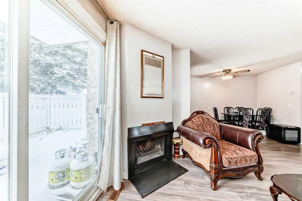 Welcome to #25, 3745 Fonda Way SE - a beautifully maintained main-level end unit townhouse offering comfort, convenience, and exceptional value. This move-in ready home features a bright open-concept layout with a cozy wood-burning fireplace, perfect for relaxing evenings. The well-designed floor plan includes 2 spacious bedrooms and 1 full bathroom, making it an ideal choice for first-time home buyers, savvy investors, or those looking to downsize. Enjoy the added benefit of a private fenced front porch—perfect for morning coffee or outdoor lounging. As an end unit, you’ll appreciate the extra privacy and natural light throughout. Located in a highly convenient area, you’re just minutes from Marlborough Mall, LRT access, Walmart, banks, restaurants, and a wide variety of shopping and everyday amenities. Additional highlights include one assigned parking stall and ample visitor parking for guests. This is a fantastic opportunity to own a well-kept home in a prime location - don’t miss out!