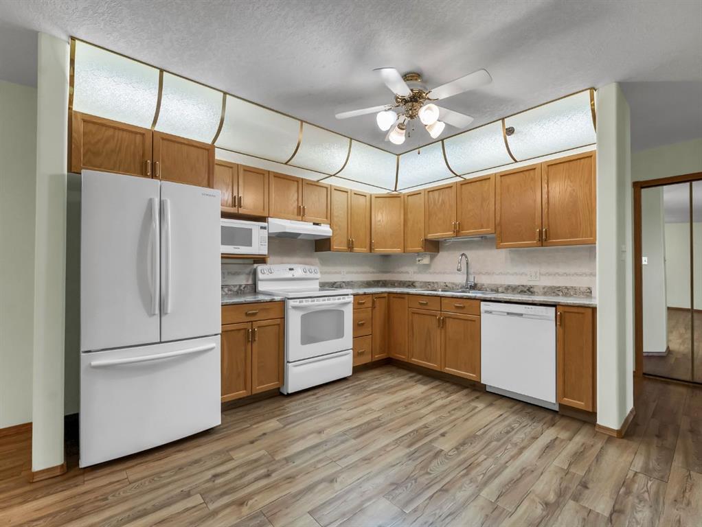 Welcome home to relaxed, carefree living in this beautifully maintained 55+ condo in Southview. Located just minutes from shopping, banking, public transit, and everyday services, this is the kind of home that makes life feel a little easier and a lot more enjoyable. Inside, the unit is exceptionally clean and offers a spacious layout with a large primary bedroom featuring a walk-in closet and private ensuite with shower. The second bedroom includes a built-in sewing/writing desk, making it a perfect space for guests, hobbies, or a quiet home office. You’ll also appreciate the newer countertops in the kitchen and bathrooms, upgraded air conditioner split units, enclosed balcony, and additional storage in the underground parking area. The building is designed for both comfort and community, with a beautiful foyer, games rooms with pool tables, an indoor pool, hot tub, peaceful courtyards, guest rooms, workshop, underground parking, and RV parking for residents. With condo fees of $615.84 per month including all utilities and full access to amenities, this is a wonderful opportunity to enjoy a welcoming lifestyle with less maintenance and more time to do what you love.