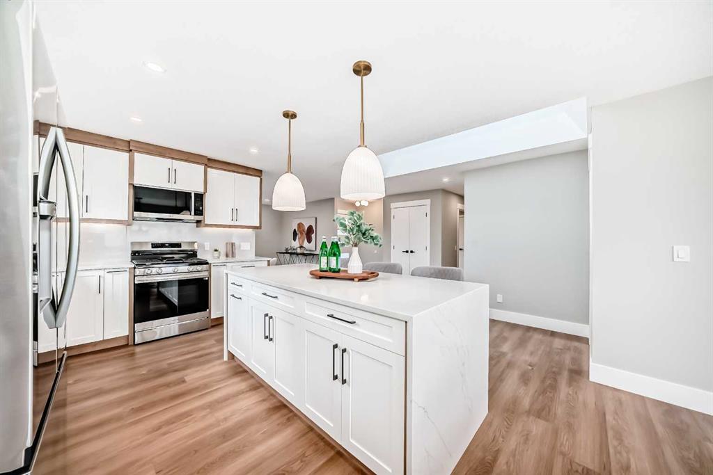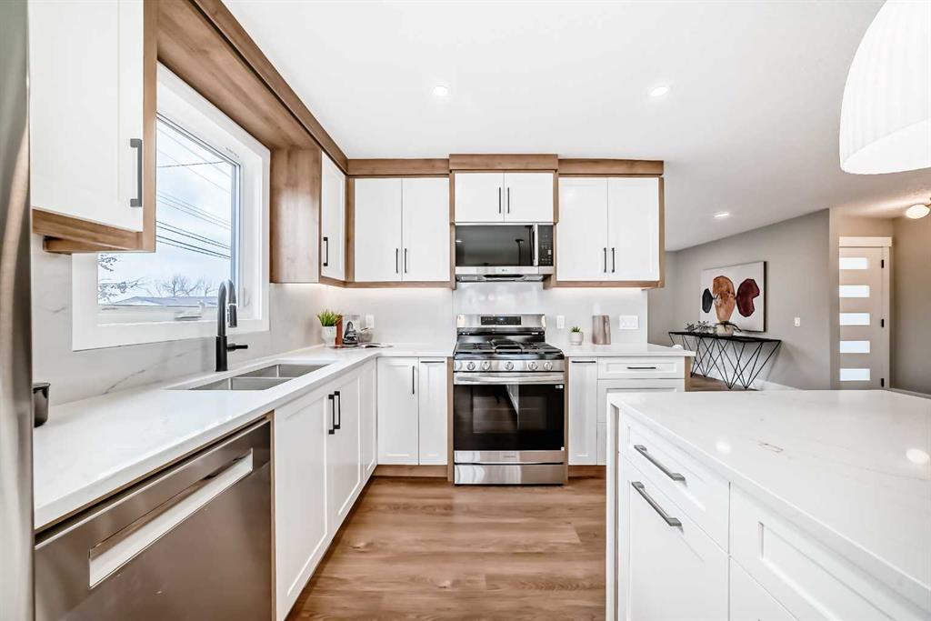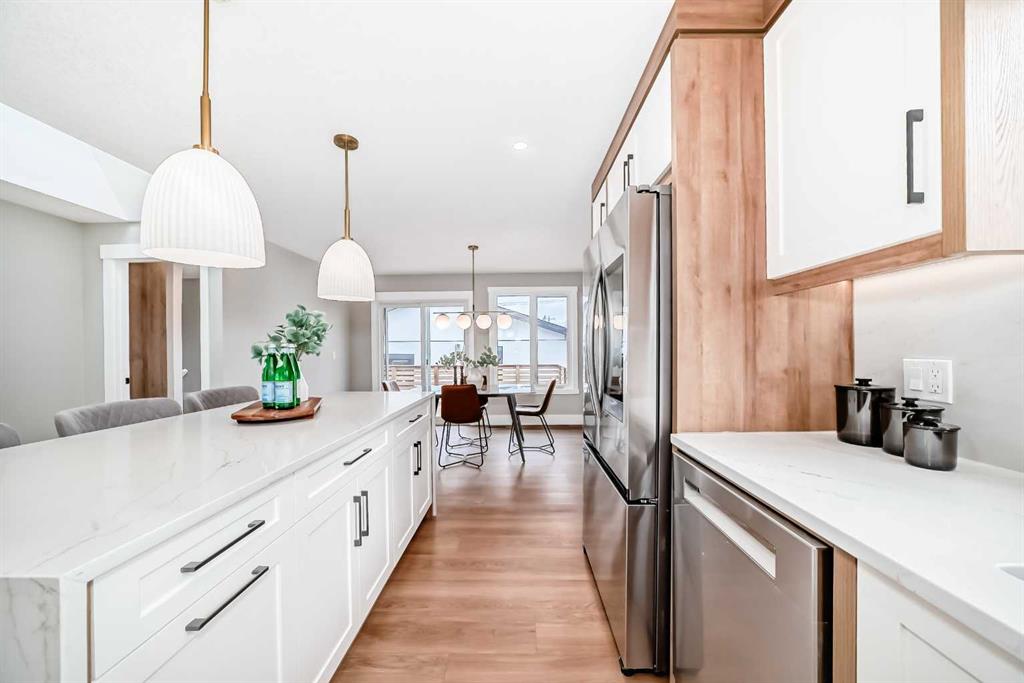 Beautifully renovated and thoughtfully designed, this 1,421 sq ft home in sought-after Lake Bonavista offers the perfect blend of style, comfort, and functionality. The bright, open-concept main floor showcases a stunning great room with a modern neutral palette, a showpiece two-tone kitchen with eat-up island, stainless steel appliances, and seamless vinyl flooring throughout. A striking feature fireplace anchors the living space, creating an inviting atmosphere ideal for both everyday living and entertaining. The main level includes three well-appointed bedrooms, highlighted by a serene primary retreat complete with a walk-in closet and private ensuite. A convenient laundry room and mudroom add to the home’s thoughtful, family-friendly layout. Downstairs, the fully developed basement expands your living space with two additional bedrooms, a full bathroom, and an impressive rec room featuring a second fireplace and a large wet bar—perfect for hosting or relaxing nights in. Step outside to enjoy the expansive deck overlooking a fully fenced backyard, along with a double detached garage and a spacious front porch that adds to the home’s curb appeal. Tucked away on a quiet street in an exceptional location close to schools, parks, and amenities, this home offers the lifestyle you’ve been waiting for.