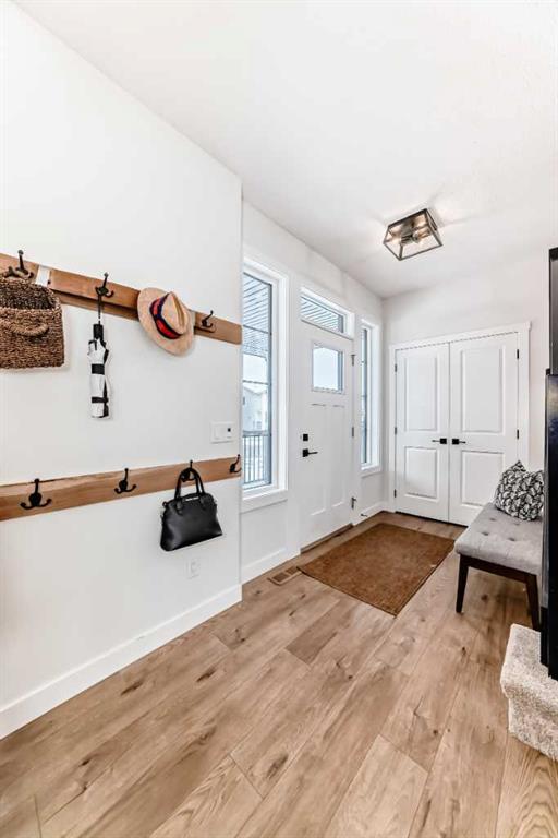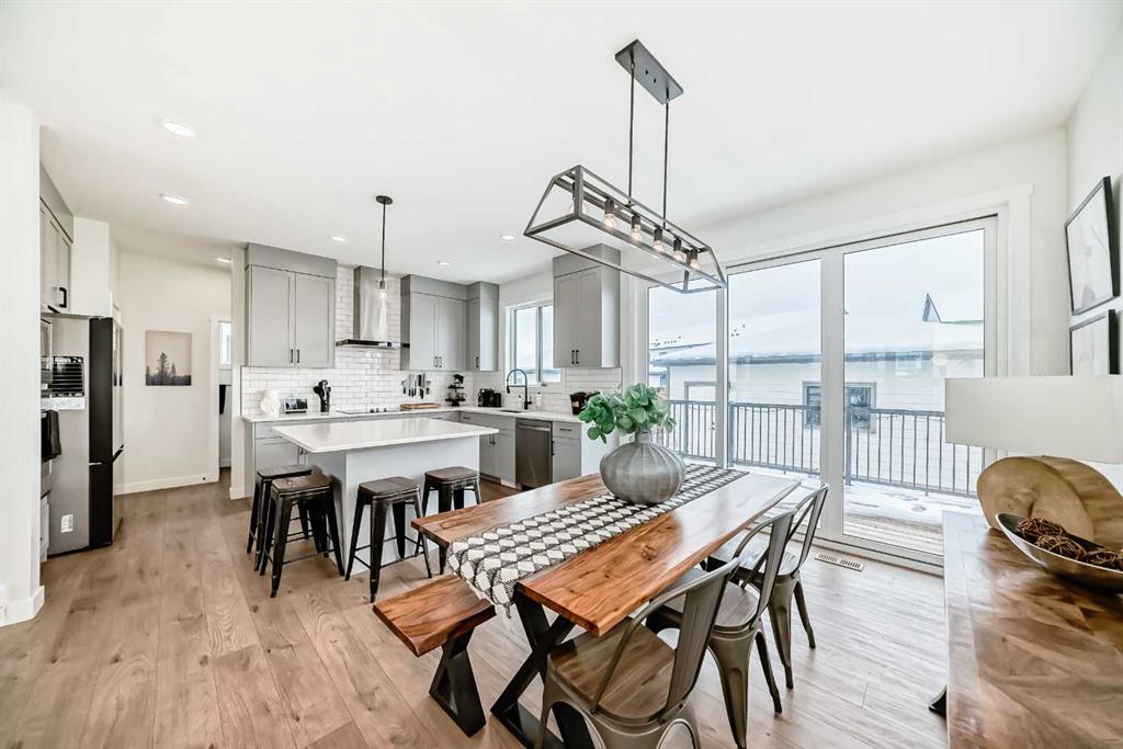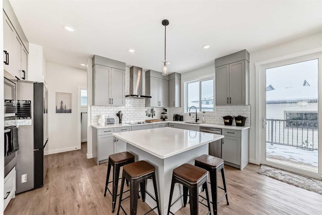Welcome to 123 Harmony Circle—an exceptional 2,093 sq ft home offering modern comfort, thoughtful design, and stunning mountain views. From the moment you step inside, you’ll appreciate the bright, open-concept main floor featuring 9’ ceilings, luxury vinyl plank flooring, and a large patio door that fills the space with natural light. The beautifully appointed kitchen is a true centerpiece, complete with all stainless steel appliances, including a wall oven/microwave, electric cooktop, dishwasher, and fridge. Full-height cabinetry provides abundant storage, while the oversized island is perfect for entertaining and everyday living. Step outside to your fully landscaped backyard oasis featuring a full-width deck, ornamental grasses, Rundle rock accents, and an automatic hose system—designed for both beauty and ease of maintenance. Upstairs, you’ll find three spacious bedrooms, two full bathrooms, and convenient upper-floor laundry. The versatile third floor loft space opens onto a large private balcony where you can take in breathtaking mountain views—perfect for relaxing or working from home. Additional highlights include, Half bath on the main floor, Custom built-in storage in the mudroom/back porch, Durable Hardie board exterior, Brand new interior paint throughout, Tile flooring in bathrooms and back porch, Ecobee thermostat and Nest doorbell for smart home convenience, Wide double detached garage (23’ x 23’) This home combines style, function, and location—ideal for families and professionals alike. Don’t miss your opportunity to own in the sought-after Harmony community.