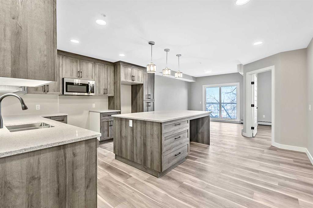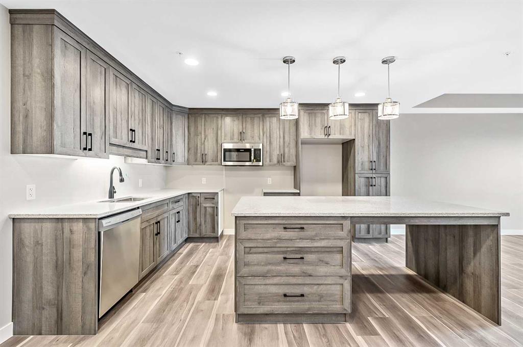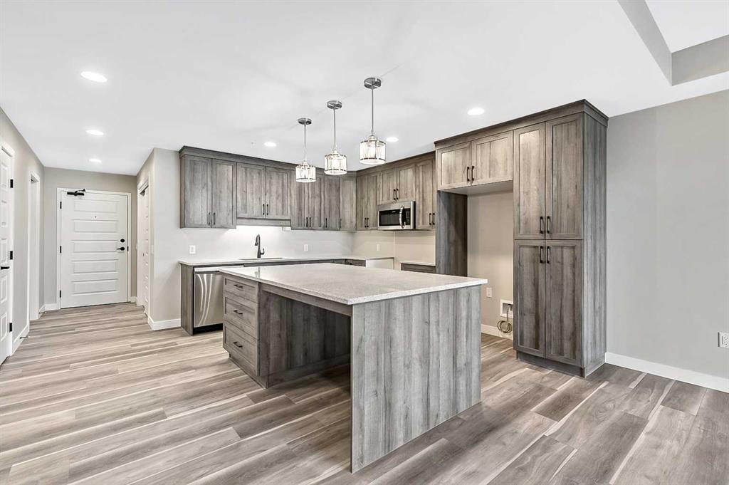 "To be Built/Pre-Construction" Be part of something new at Eagleview. This condo will have all the modern features and finishes you would expect in a premium built adult orientated condo. 4rd floor north facing unit. 9ft ceilings. This unit will offer 2 bedrooms, 2 bathroom, modern, efficient living in a thoughtfully planned community. 6 x 26ft covered deck. The open kitchen flows effortlessly into the dining and living areas, creating a bright and welcoming space. Step outside onto your private deck with additional storage, appreciate first-floor indoor parking, also on first level you will find a resident gathering room, exercise room and workshop. Outside will boast a community garden, more parking and dog run. There is still time to pick interior selections for finishes, paint colors, etc. Concrete core floor with steel beam construction make for a very quiet building which enables it to be pet friendly. There will even be a heated dog wash in the parkade. Pictures are for representation purposes of what the finishings options are like. Taxes are TBD.