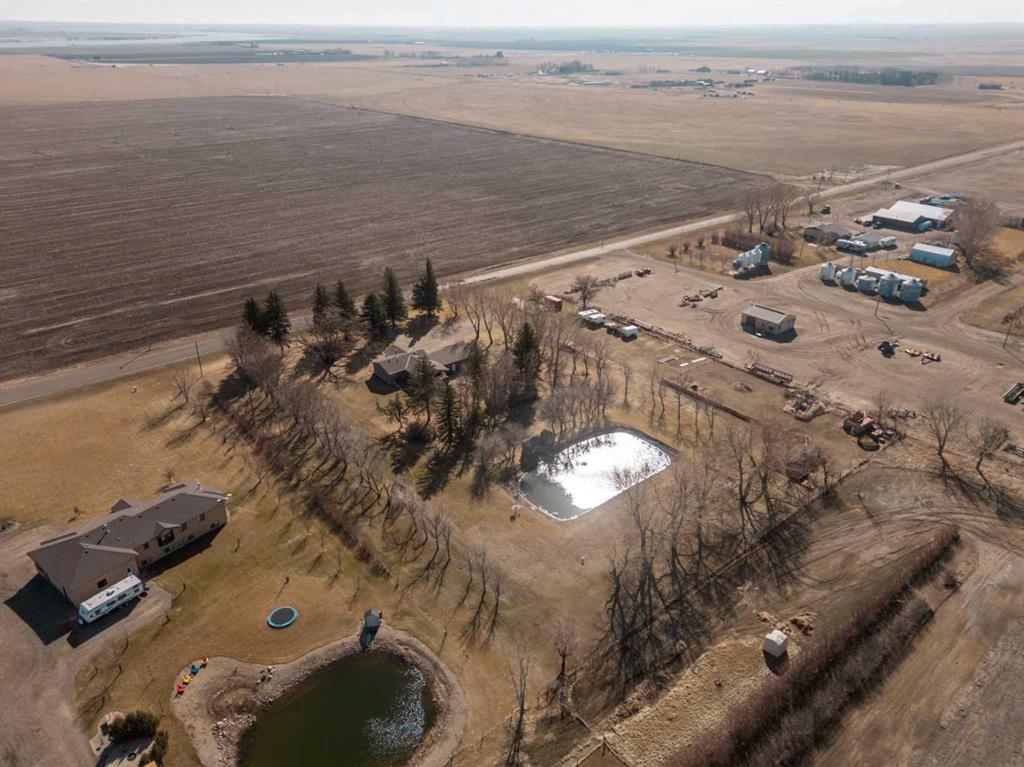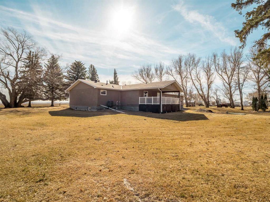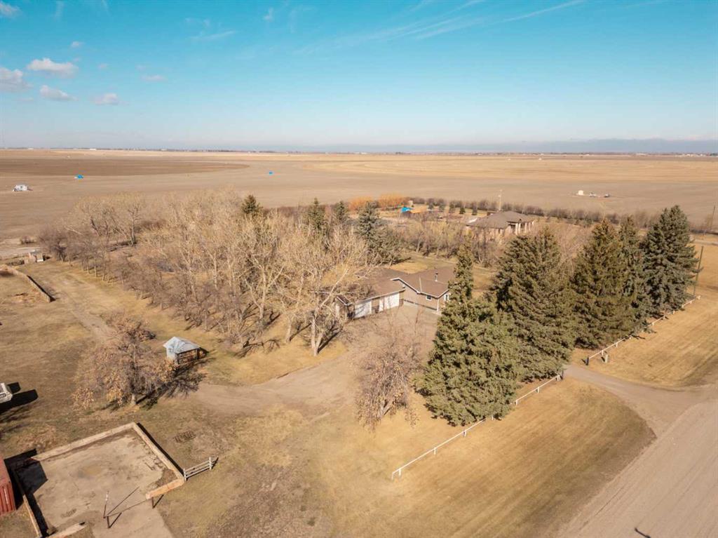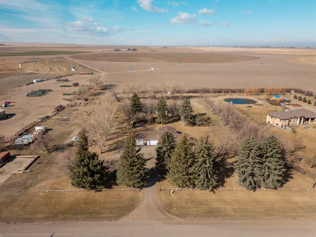 Only a few minutes from Taber - This Acreage is the perfect home to have the peacefulness of country living while still being close to a great community! With 3.88 acres of land this home will give you a great outdoor space and plenty of trees providing you with lots of privacy. Recent upgrades include roof, central air, furnace, carpet, gas stove, and fridge. The main floor is spacious and includes a large living room with a wood burning fireplace. The kitchen and dining room provide plenty of space and feature a pantry, newer gas stove and double door fridge. Both upstairs bedrooms come with brand new carpet. Enjoy the ensuite with your own jetted soaker tub. Fully developed basement with brand new carpet in the family room and bedroom. Oversized heated garage with 9 foot garage doors. Covered deck to enjoy your beautiful yard. Lined dugout with 5 stage water filtration system. The property is also zoned rural agriculture which would allow for a small amount of farm animals. If you are looking for acreage living but still want to be close to schools and amenities this is the perfect home!
