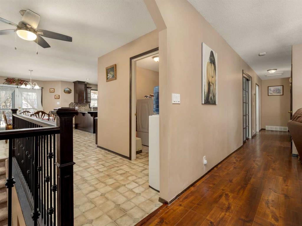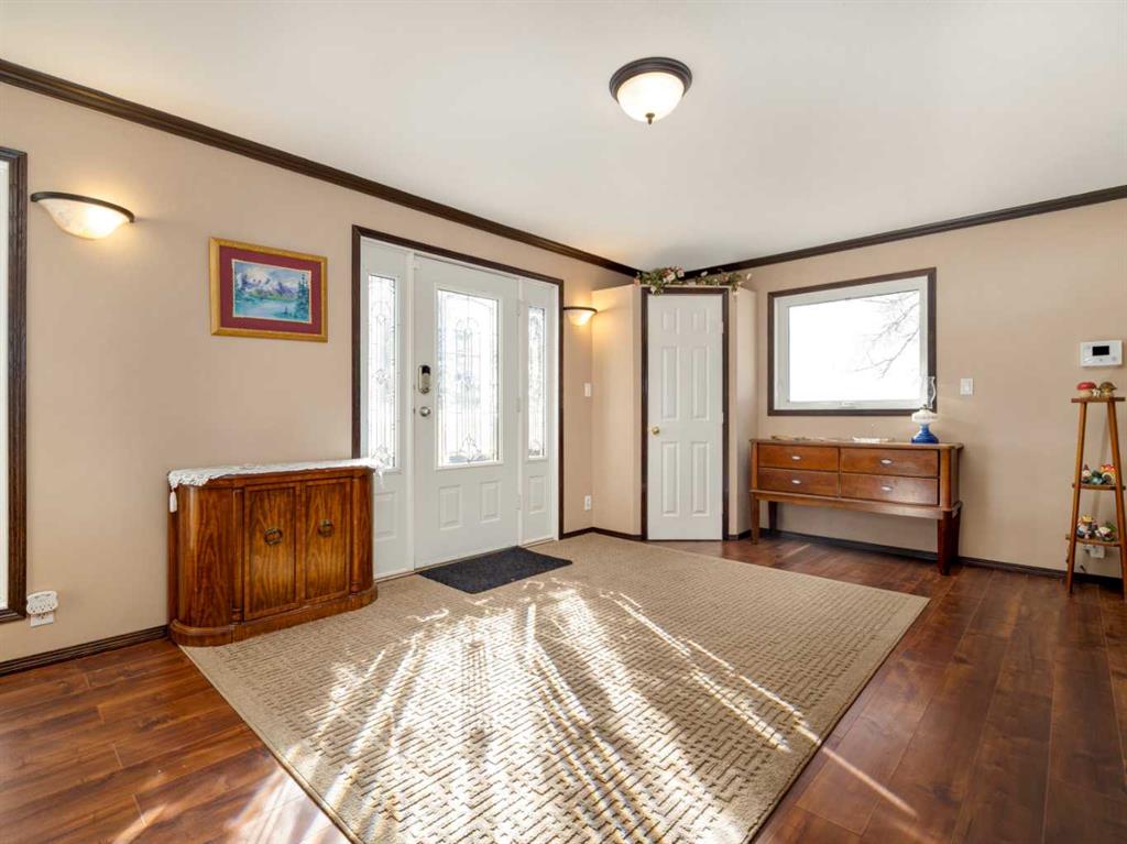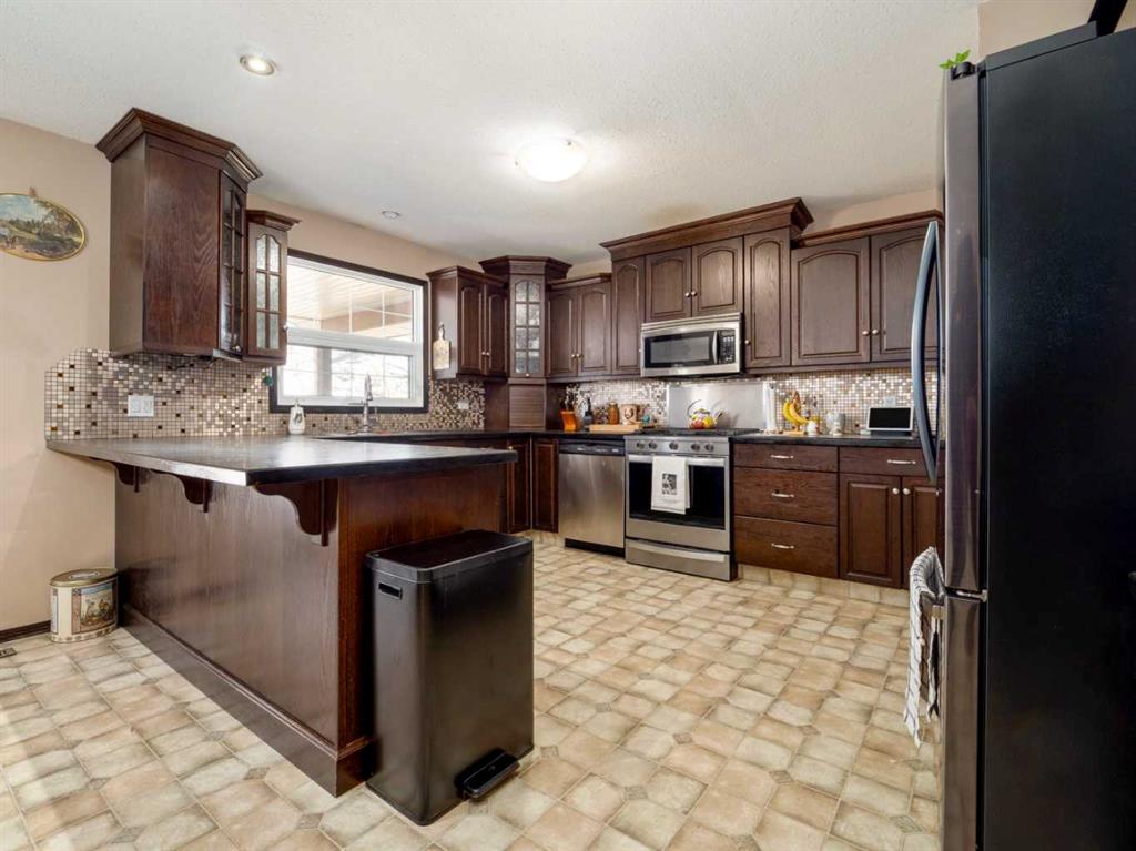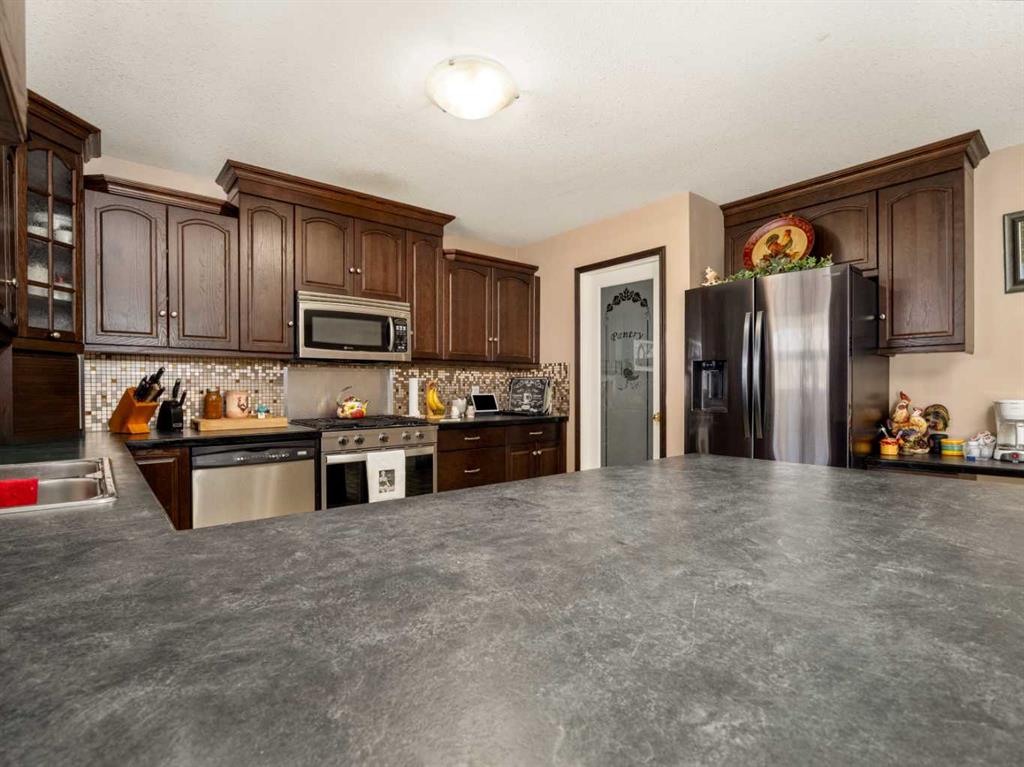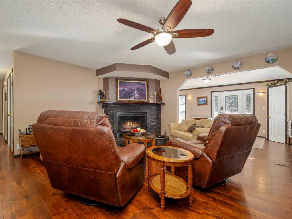 Only a few minutes from Taber - This Acreage is the perfect home to have the peacefulness of country living while still being close to a great community! With 3.88 acres of land this home will give you a great outdoor space and plenty of trees providing you with lots of privacy. Recent upgrades include roof, central air, furnace, carpet, gas stove, and fridge. The main floor is spacious and includes a large living room with a wood burning fireplace. The kitchen and dining room provide plenty of space and feature a pantry, newer gas stove and double door fridge. Both upstairs bedrooms come with brand new carpet. Enjoy the ensuite with your own jetted soaker tub. Fully developed basement with brand new carpet in the family room and bedroom. Oversized heated garage with 9 foot garage doors. Covered deck to enjoy your beautiful yard. Lined dugout with 5 stage water filtration system. The property is also zoned rural agriculture which would allow for a small amount of farm animals. If you are looking for acreage living but still want to be close to schools and amenities this is the perfect home!