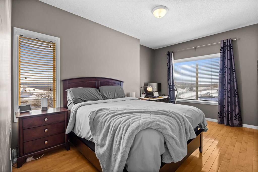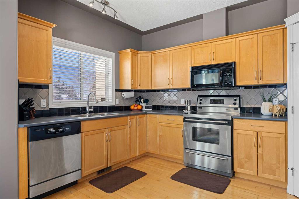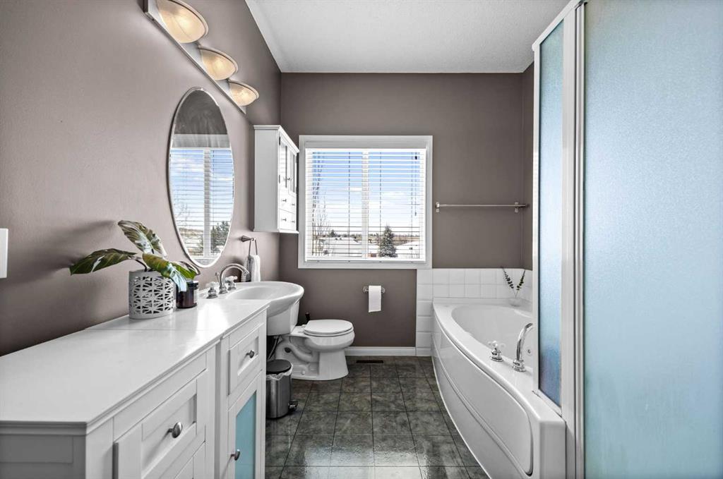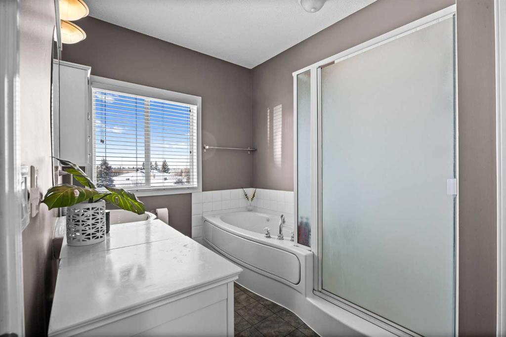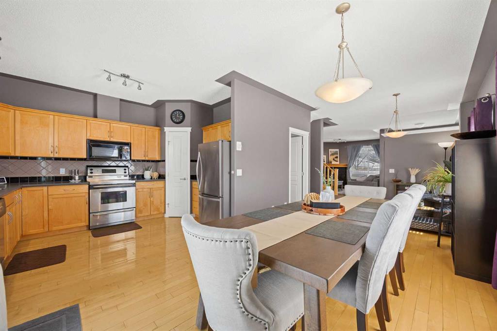 Wake up to sweeping Rocky Mountain views from your primary bedroom — a rare and highly sought-after feature in Signal Hill. From here, you can even catch glimpses of the Stampede fireworks, adding a unique touch to everyday living. This beautifully maintained home offers over 1,600 sq ft above grade plus a fully developed walkout basement, all set within the quiet and well-regarded Sierra Morena Landing community. Known for its peaceful atmosphere and limited traffic, this is a setting that truly feels tucked away while still being close to everything. The main floor is bright and welcoming, with large windows and an open-concept layout that fills the space with natural light throughout the day. The kitchen, dining, and living areas flow seamlessly together, creating an ideal setup for both everyday living and entertaining. The kitchen features maple cabinetry, stainless steel appliances, and a convenient garburator, with plenty of prep space for hosting. There’s comfortably room for a full-size dining table, while the west-facing deck with durable Dura Deck surface and gas line invites you to enjoy sunny days and evening sunsets. Upstairs, the home features two spacious primary bedrooms, each complete with its own ensuite bathroom and walk-in closet — perfect for guests, roommates, or a flexible family setup. Both rooms offer generous space and privacy, with one capturing those incredible mountain views. The fully developed walkout basement adds even more versatility, with a large recreation area ideal for a home gym, or media space. There is also an opportunity to reconfigure the space into a third bedroom or additional primary-style retreat if desired. Additional highlights include a double attached garage, upper-floor laundry, and the added privacy of an end-unit location. All of this is just minutes from Westhills Shopping Centre, parks, walking paths, top-rated schools, and major routes like Stoney Trail — offering the perfect balance of quiet living and everyday convenience.