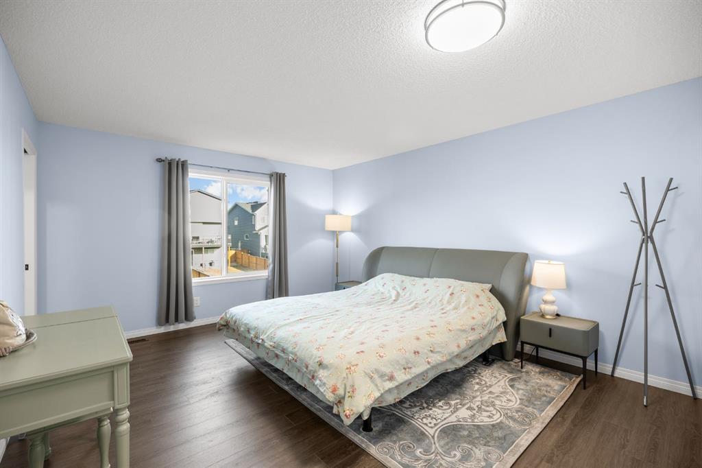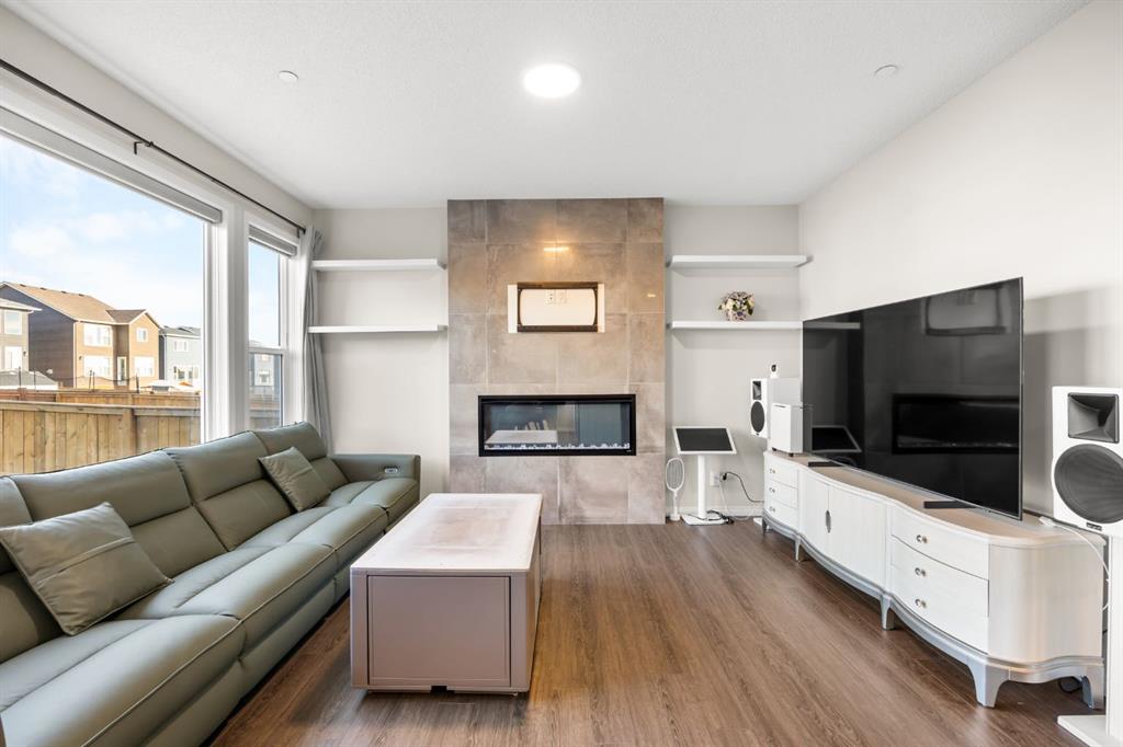 Livingston—Calgary's vibrant master-planned community with world-class amenities! This beautifully designed 3-bedroom, 2.5-bath home built in 2021 by Morrison Homes offers 1,790 sq ft of modern living space, perfect for growing families. Step inside, you'll be greeted by sleek interior finishes: 9-foot ceilings on the main floor and durable vinyl plank flooring throughout the entire home, creating a bright, contemporary feel. The open floorplan seamlessly connects the bright Living room with electric fireplace and large windows to the adjacent Dining room—perfect for family gatherings and entertaining. The gourmet Kitchen features a centre island with breakfast bar, granite countertops, stainless steel appliances including gas stove and wine fridge, ample cabinetry, and a walk-through pantry. A powder room completes the main level, and the Double attached garage provides ample parking and storage. On the upper level, a central Bonus room provides the perfect space for family movie nights or a kids' play station. The spacious Primary suite offers a peaceful retreat with a walk-in closet and 4-piece luxurious ensuite bath featuring double vanity, granite countertops, and an oversized tiled separate shower. Two additional well-sized bedrooms share a 4-piece bath, and a convenient Laundry room completes this level. The unfinished basement with bathroom rough-in awaits your imagination and development, offering excellent potential for future living space. Step outside to the landscaped, partially fenced backyard, providing outdoor space for relaxation and play. This house has new Roof, new siding and water softener. Located in Livingston, one of Calgary's most sought-after neighborhoods offering exceptional community amenities. The impressive 35,000 sq ft Livingston Hub includes an ice rink, splash park, gymnasium, playground, tennis court, banquet hall, community kitchen, daycare space, and more—providing year-round recreation and activities for the entire family. Close proximity to schools, shopping, parks, and major routes including Stoney Trail and Métis Trail makes this location both family-friendly and convenient. This is a fantastic opportunity to own a modern home in one of Calgary's most vibrant and amenity-rich communities!