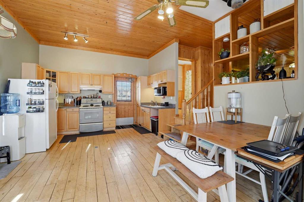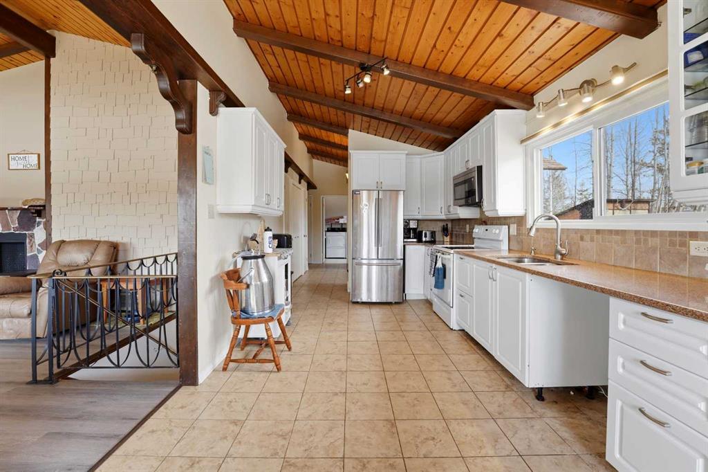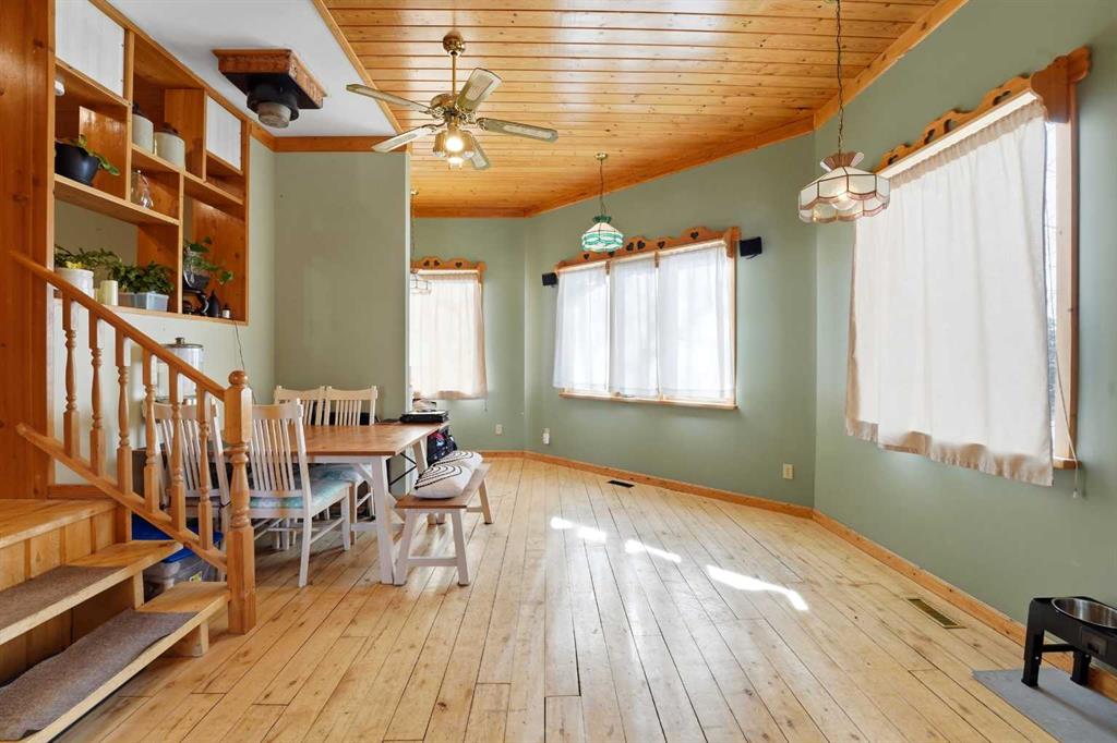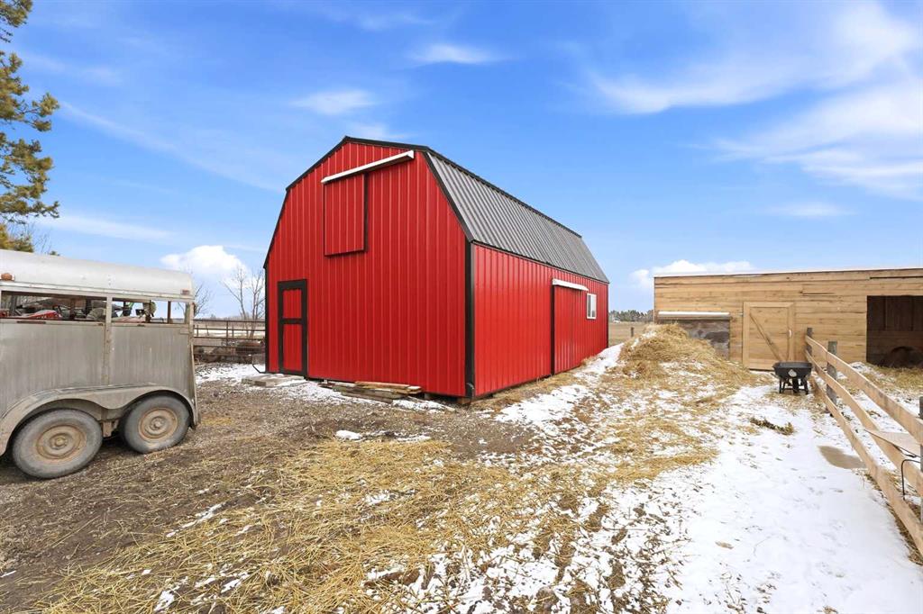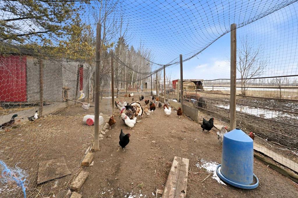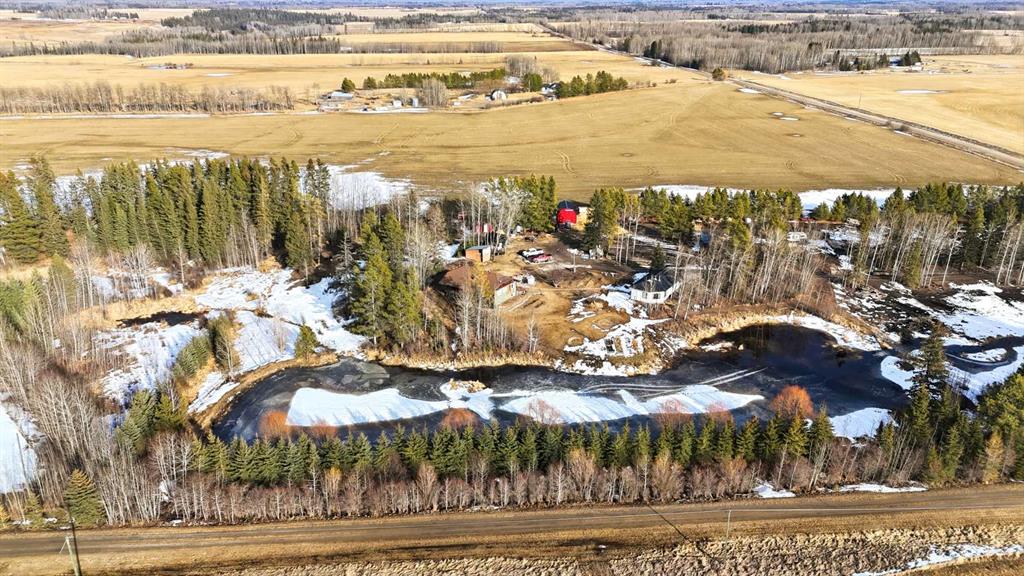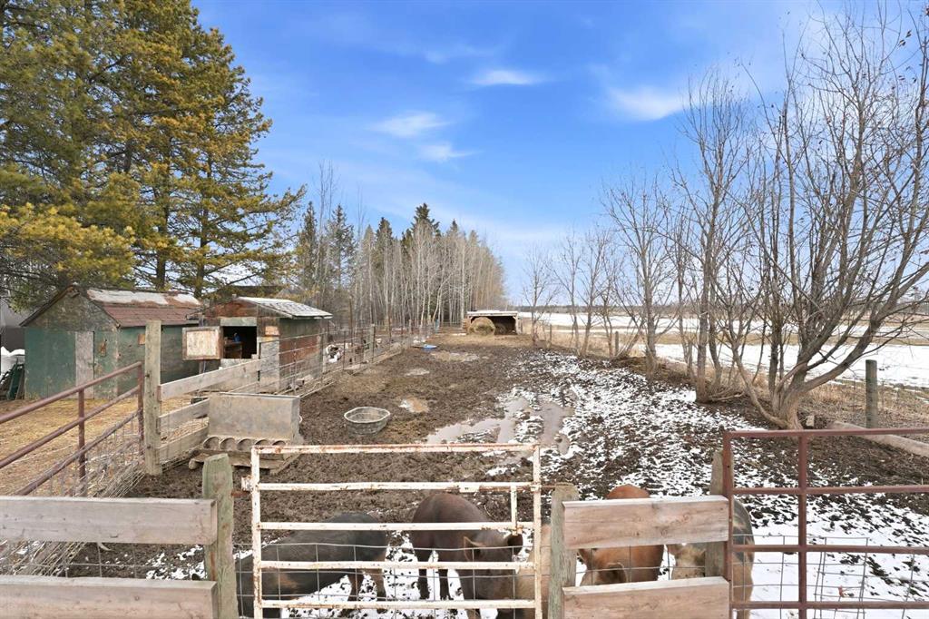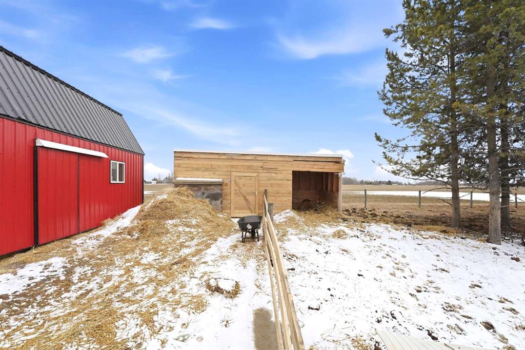 Welcome to your own private 10-acre hobby farm, perfectly set up for country living with room to grow, just 15 minutes from Rocky Mountain House and under 2 hours to both Calgary and Edmonton. Surrounded by mature trees for exceptional privacy, this picturesque property features a charming farmhouse full of warmth and character. Inside, you’ll find unique woodwork throughout, a cozy wood-burning stove, and a gas fireplace that create an inviting, rustic atmosphere. The living room is filled with natural light from large windows and offers a built-in bench seat overlooking your own private pond—the perfect place to unwind and take in the peaceful views. Convenient main floor laundry adds to the home’s functionality. Adding incredible versatility to the property is a separate 1-bedroom, 1-bathroom cabin, also overlooking the pond. Complete with new shingles, its own well and septic system, this space is ideal for multi-generational living, hosting guests, accommodating farm help, or generating rental income. The land is fully equipped for hobby farming or small-scale agriculture, featuring a new barn with a full loft, multiple paddocks, pasture areas, shelters, and coops ready for your animals. Grow your own food with an established orchard offering a variety of fruits including elderberries, raspberries, strawberries, cranberries, grapes, and apples, along with a productive garden space ready for seasonal planting. Whether you’re looking to embrace a self-sufficient lifestyle, create a family homestead, or enjoy a peaceful rural retreat with income potential, this property offers endless opportunity in a truly beautiful setting.