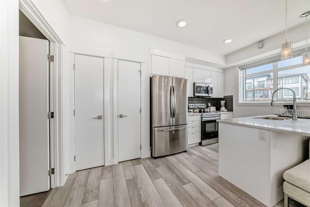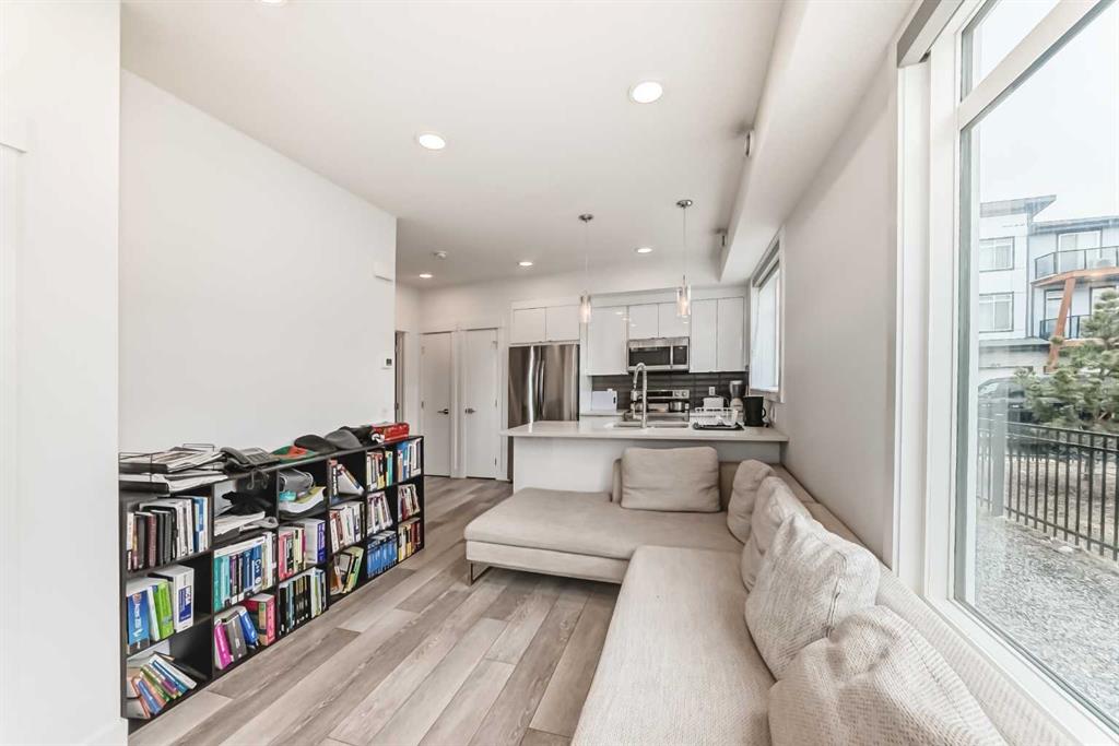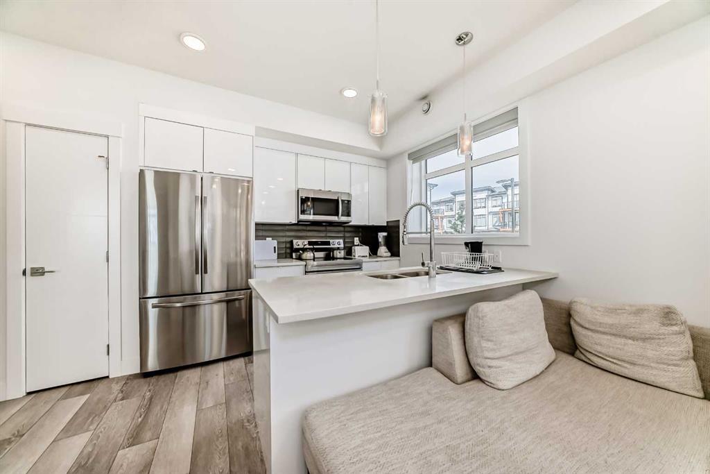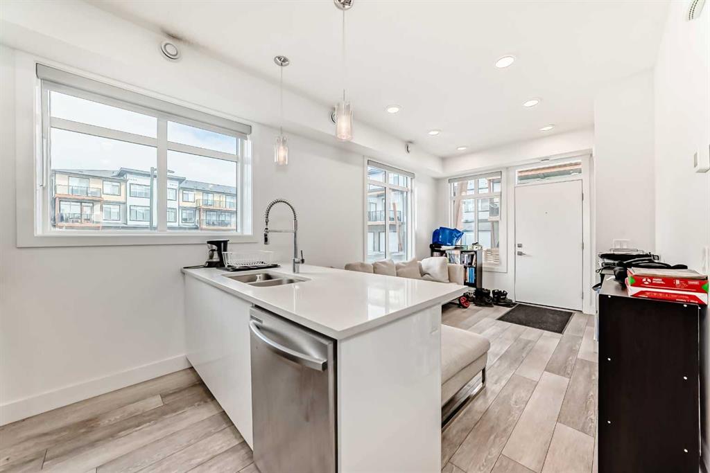 Welcome to this beautifully designed end-unit with the convenience of your parking stall right beside the unit. All in the vibrant and growing community of Seton. Built in 2023, this modern 1 bedroom, 1 bathroom home offers the perfect balance of style, comfort, and convenience. Ideal for first-time buyers, investors, or those looking to simplify without sacrificing quality. Step inside to a bright, open concept layout. This end unit is filled with natural light as it has extra windows and finished with durable luxury vinyl plank flooring throughout. The contemporary kitchen features sleek granite countertops, stainless steel appliances, and ample cabinetry, making it both functional and inviting for everyday living or entertaining. The bright bedroom provides a comfortable retreat, while the well appointed bathroom showcases modern finishes. As an end unit, you’ll enjoy added privacy and extra light—features that truly set this home apart. Step outside to your private covered front porch, perfect for morning coffee or evening unwinding. Adding to the convenience, your assigned parking stall is located right beside the unit for easy access. Situated on the main floor, this home offers effortless entry and is just moments away from all that Seton has to offer, including shopping, restaurants, the South Health Campus, and a wide range of recreational amenities. A fantastic opportunity to own a nearly new home in one of Calgary’s most desirable communities, don’t miss out.