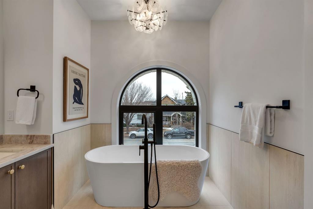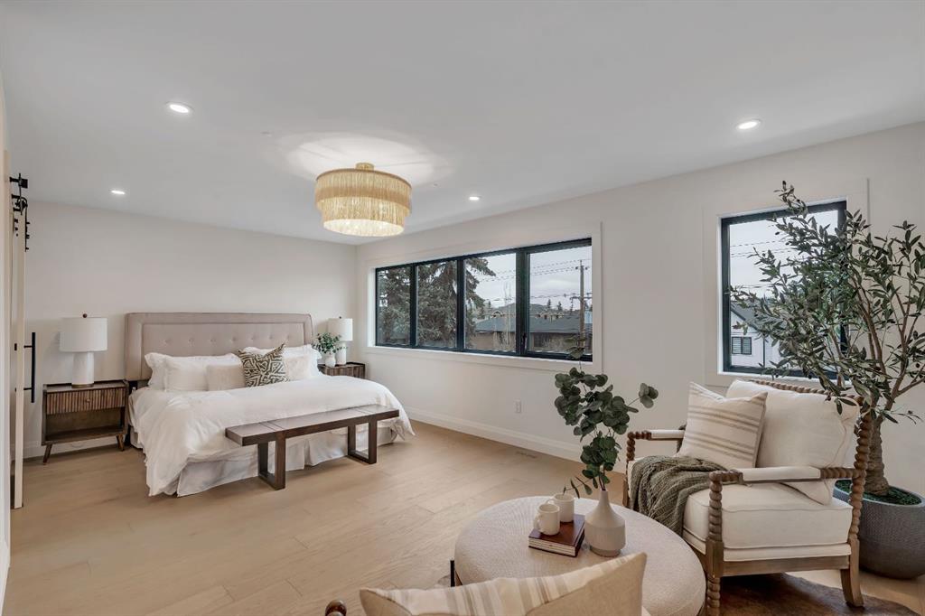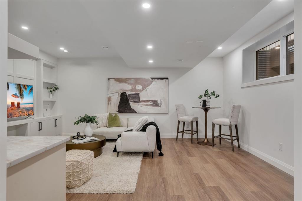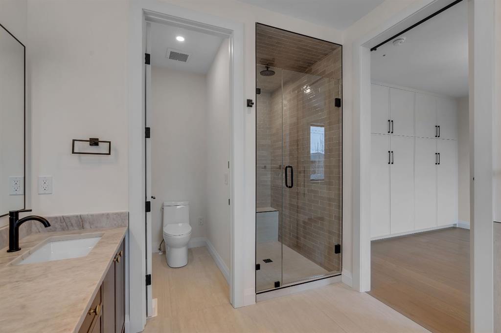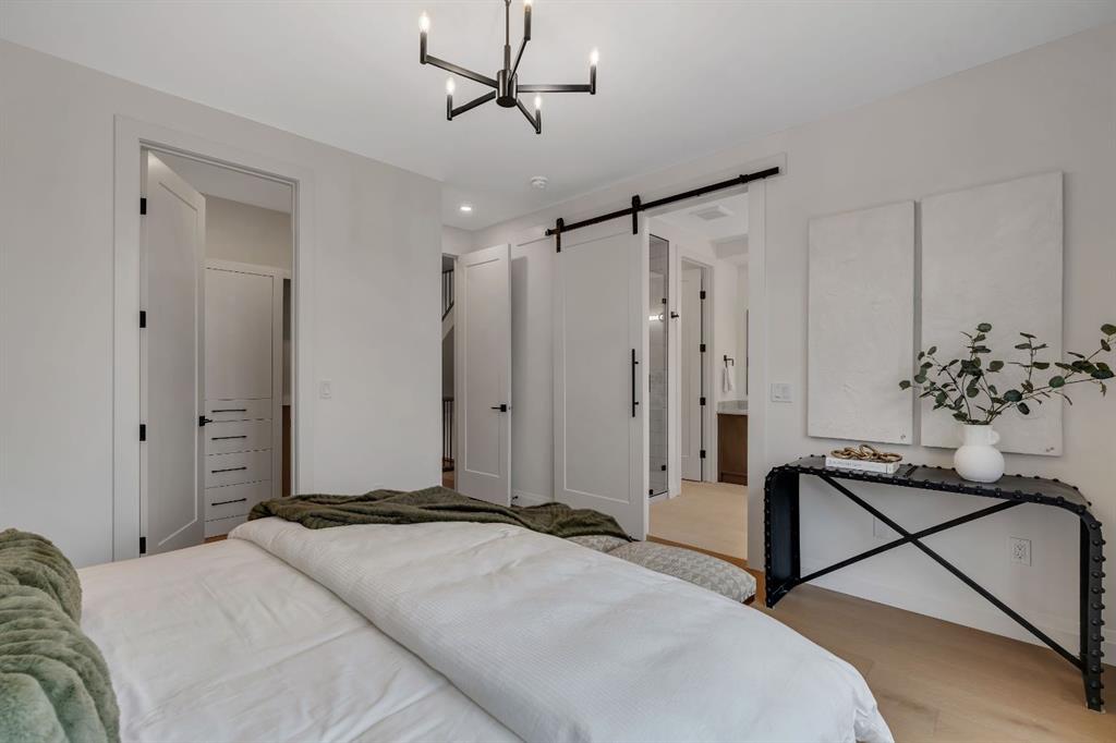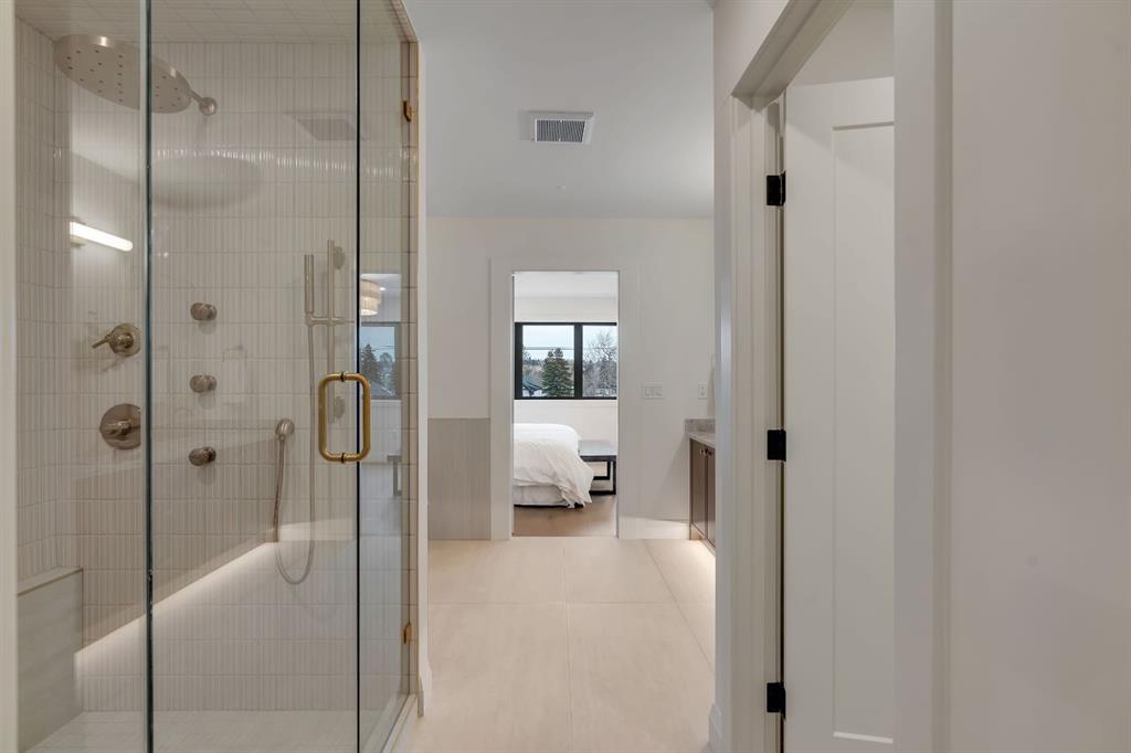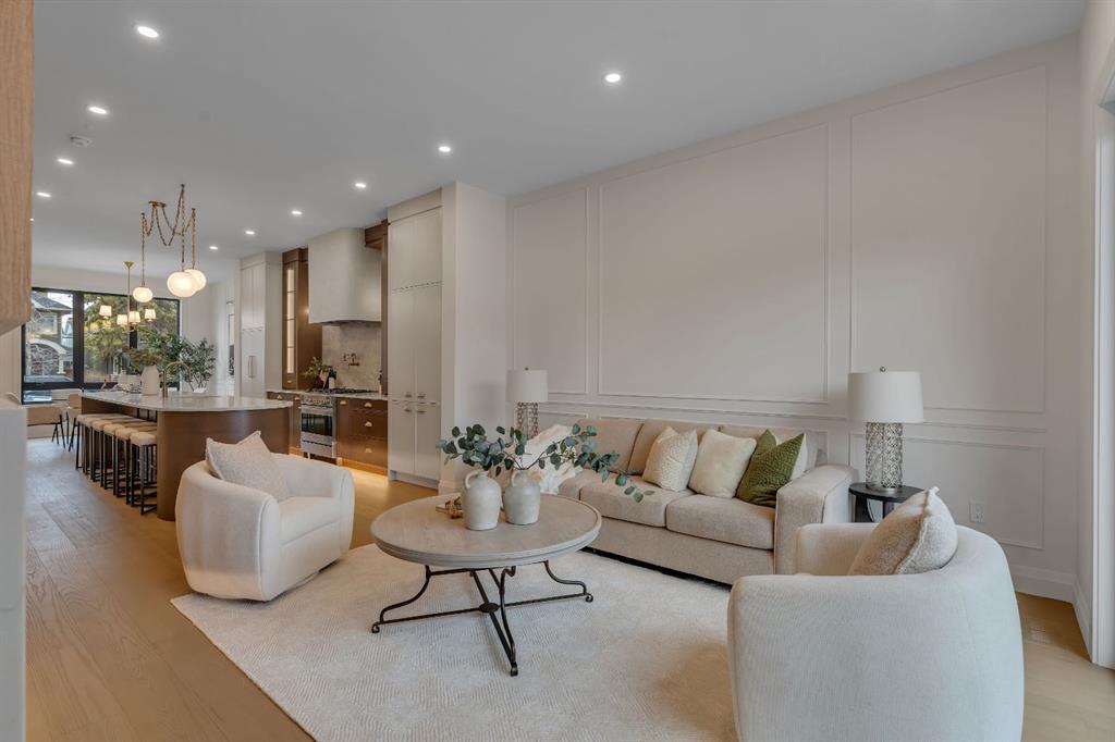Unit 2 is sold with only Unit 1 remaining, presenting a rare opportunity to own a brand new exceptional three storey semi detached infill offering a total of over 3,700 sqft of thoughtfully curated living space across four levels in the sought after West Hillhurst. This residence showcases elevated inner city living with impeccable craftsmanship and refined contemporary design, highlighted by wide plank hardwood flooring and striking custom oak detailing throughout. The open concept main floor is defined by 10 foot ceilings and a formal dining area with custom wainscoting and large south facing windows that fill the space with natural light, while the kitchen stands out as a true centrepiece with a dramatic 12 foot curved oak island, quartz countertops and backsplash, premium built in appliances, gold and black hardware, two tone cabinetry, a plaster finished curved hood fan, gold pot filler, and under cabinet lighting, complemented by a thoughtfully concealed walk in pantry with custom cabinetry. The living room offers a warm yet sophisticated atmosphere with a designer gas fireplace featuring fluted tile, quartz accents, and curved oak built ins, stepping out to a very large backyard, while a spacious mudroom with built ins leads to a beautifully finished powder room with oak cabinetry, half panelled walls, and under mount lighting. The upper level features two luxurious primary suites, each complete with double oak vanities, freestanding soaker tubs, fully tiled showers, and in-floor heating, along with a versatile bonus room and a full laundry room, all enhanced by carefully selected designer lighting and elegant sconces. The third level loft creates a private retreat with an additional expansive primary bedroom, a large walk in closet with an oak finished island, make-up desk, a spa inspired ensuite with double oak vanity, in-floor heat, and a steam shower, as well as a dedicated office space that opens onto a private balcony with unobstructed downtown views. The fully developed basement adds further functionality with a generous recreation area, wet bar, fourth bedroom, full bathroom, rough-in for in-floor heat & A/C, and a dedicated home gym, all finished with oversized windows to maximize natural light. Designed by John Trin, this architectural statement home offers a seamless blend of luxury, comfort, and design, ideally located near parks, schools, the river, and everyday amenities. Call today to book your private tour!
