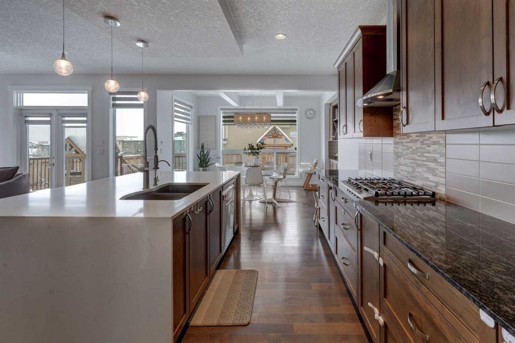 Welcome to this stunning, meticulously maintained home in Sherwood offering nearly 4,000 sq ft of beautifully developed living space, perfectly designed for modern family living. Situated on a desirable corner lot with views of the pond and greenspace, this home blends elegance, functionality, and comfort. The open-concept main floor showcases rich hardwood and tile flooring, a grand front entrance, and impressive floor-to-ceiling windows that flood the space with natural light. The chef-inspired kitchen features stainless steel appliances, a gas cooktop, an oversized island (56” x 87”), and a custom-built pantry. A thoughtfully designed mudroom/laundry area, stylish 2-piece powder room, and a private den with sliding French doors complete the main level. The dining area is enhanced with a built-in coffee and wine bar, while the living room offers a striking floor-to-ceiling tiled accent wall with gas fireplace and TV. A dramatic open-to-below staircase leads to the upper level, where you’ll find a spacious bonus room with vaulted ceilings, wet bar, and Lexan glass safety guard—ideal for families with young children. The luxurious primary suite features a custom walk-through closet and spa-inspired 5-piece ensuite with soaker tub, dual vanities, and a walk-in shower. Two additional generously sized bedrooms, both with walk-in closets, and a full 4-piece bath complete the upper floor. The fully finished basement offers even more living space with a large recreation room and wet bar, a fourth bedroom, 3-piece bathroom, and a versatile flex room. Enjoy outdoor living in the fully landscaped and fenced yard with a large deck, perfect for entertaining. This home is pet and family-friendly and located steps from scenic pathways and greenspace. Recent upgrades include new shingles, siding, and eavestroughs (2025), new appliances (2023), and luxurious wool carpet (2023). Complete with a double attached garage, this exceptional home truly has it all.