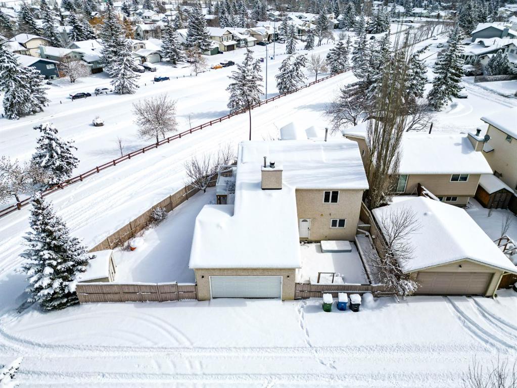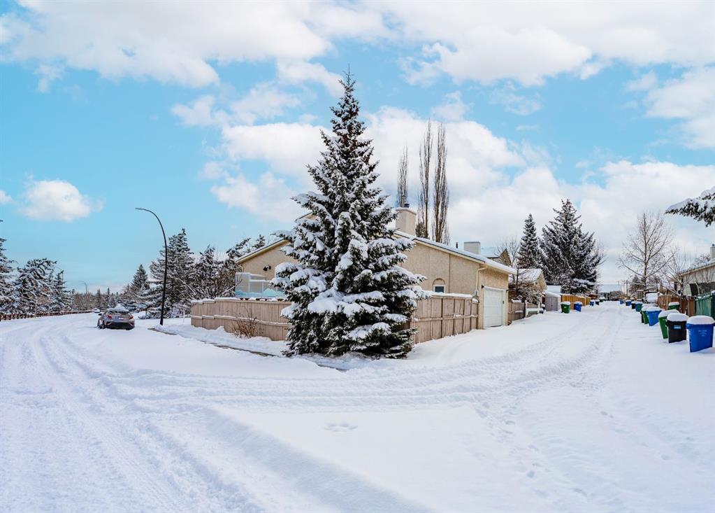 OPEN HOUSE SATURDAY 1-3 PM Welcome to 215 Scenic Way NW, located on a desirable corner lot directly across from green space in the established community of Scenic Acres. This property offers exceptional street parking, an extra wide double semi detached garage, and a functional layout ideal for families. The main level features a sunken living room with vaulted ceilings, creating a bright and open feel. Glass railings enhance the flow between the living, dining, and kitchen areas. The kitchen includes stainless steel appliances, an eating area, and access to a raised deck leading to a sunny yard with shed and gated access—ideal for pets, kids, or trailer parking. The third level offers a spacious family room with fireplace, a fourth bedroom, a 3-piece bathroom, and laundry, along with walk-out access to a private garden area and garage access.. The partially finished fourth level includes a workshop and large storage space—perfect for hobbies or seasonal equipment. Extensive upgrades and improvements include triple pane windows (2020), garage sub panel (240V/60 amp), and a slate HP(hail proof) rubber roof (2022) Backyard drainage improvements and updated garage lighting (2023) enhance functionality. Outdoor features include raised stainless steel garden beds with geogrid stabilized rock, and additional landscaping. Energy-efficient upgrades include a solar panel system (2024) and upgraded attic insulation (R60 with additional cellulose in house and garage, 2025), helping reduce utility costs and improve year-round comfort. Excellent location within walking distance to schools, including French Immersion, and just minutes to the LRT. Quick access to Stoney Trail and close proximity to the Bow River pathway system, Bowness Park, and Baker Park. A well-maintained property offering space, functionality, and long-term value in a sought-after NW community.