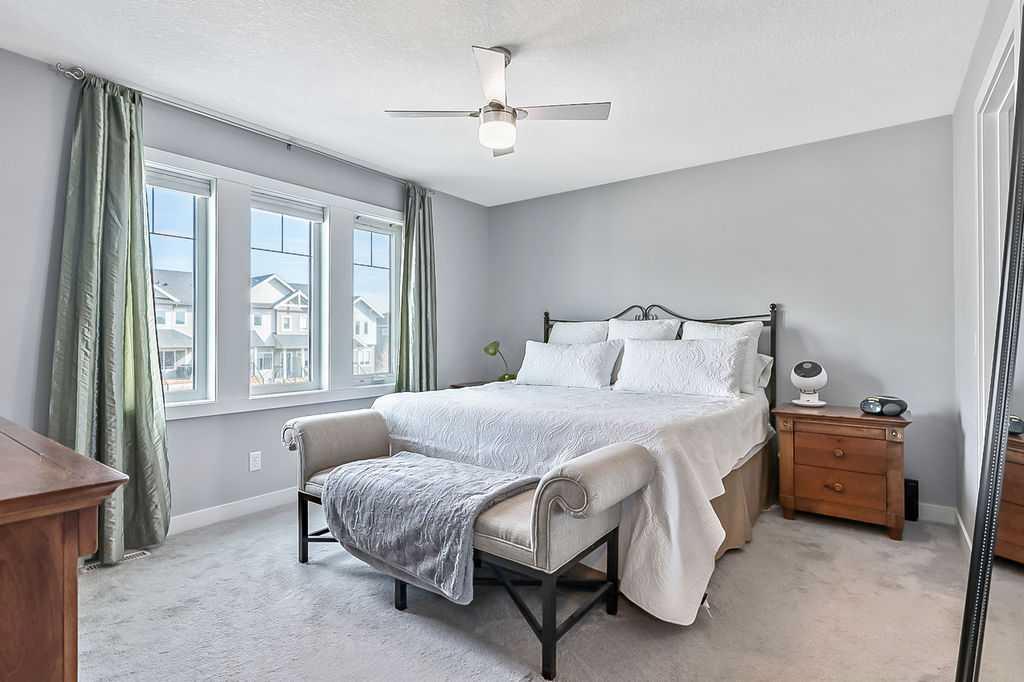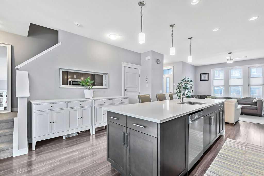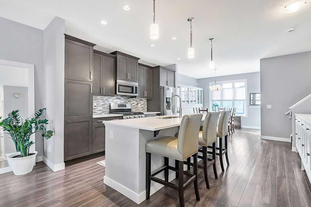 Welcome to this gorgeous semi-detached two storey home in the highly desirable, FAMILY FRIENDLY RIVER HEIGHTS neighbourhood of Cochrane. Thoughtfully designed with a stunning wide open floor plan, this home is filled with natural light and modern finishes throughout. The central kitchen, featuring an extra long island, quartz countertops, quality appliances including a gas stove, ample cabinetry and a spacious dining area - perfect for both everyday living and entertaining. The inviting living room showcases a stylish freestanding electric fireplace and large windows that enhance the open feel of the main floor. Upstairs has a generous king sized primary retreat with an oversized walk-in closet and a luxurious ensuite with dual vanities and a corner soaker tub. Two additional well sized bedrooms and convenient upper floor laundry complete the upper level. Additional highlights include luxury vinyl plank flooring, ceramic tile, central air conditioning and a spacious back deck overlooking a SUN FILLED SOUTH FACING FULLY FENCED YARD… ideal for families, pets and outdoor enjoyment. This is the perfect blend of comfort, style and location with quick easy access to downtown Cochrane, schools, shopping, dining and recreational activities.