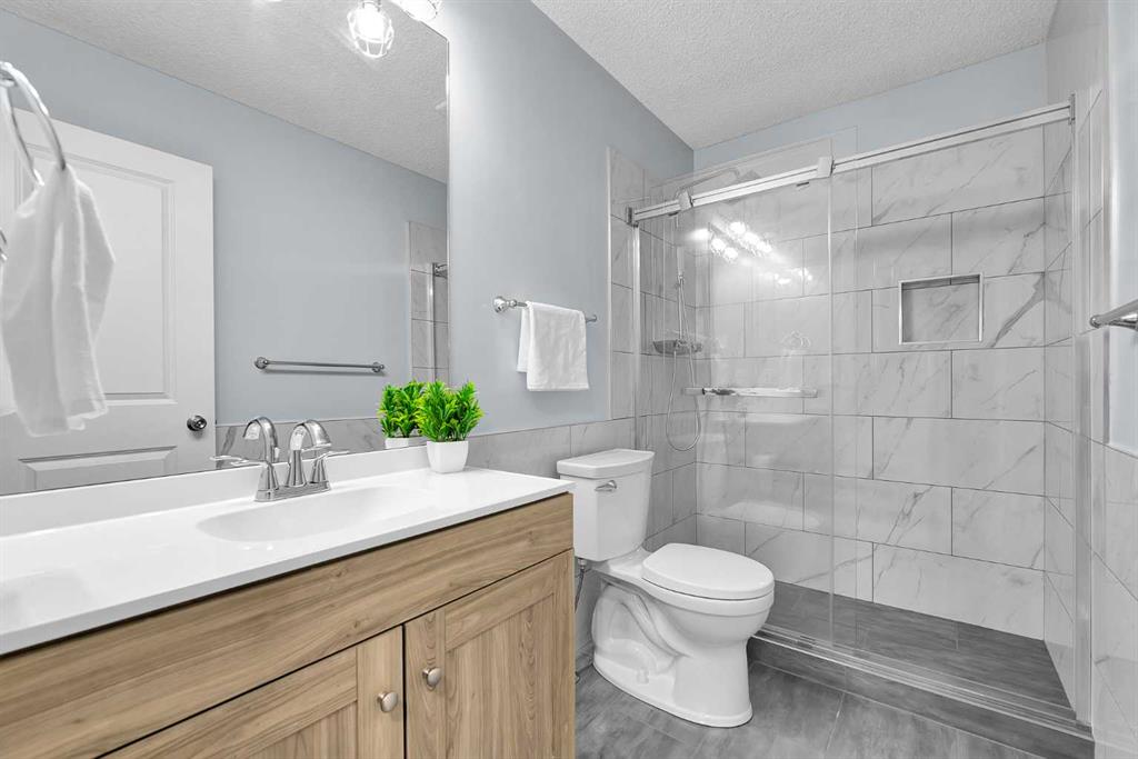 *OPEN HOUSE MARCH 28th 12:00pm-2:00pm* This beautifully updated and fully finished home offers nearly 2,000sqft of functional living space designed for modern family life—complete with 3 bedrooms, 2.5 bathrooms and an oversized double detached garage with RV parking option. Located in beautiful Edgewater you are close to schools, shopping and of course Nose Creek Park. The main floor is bright and welcoming, featuring new luxury vinyl plank flooring, fresh paint, and clean white baseboards throughout. A sun-filled living room from the bay window creates the perfect place to unwind, while the spacious kitchen complete with an island, abundant cabinetry, and generous counter space, flows seamlessly into a large dining area made for hosting dinners comfortably. Step outside to enjoy a spacious west-facing backyard and expansive deck, ideal for entertaining, relaxing, or soaking up the afternoon sun. Upstairs, the primary bedroom offers a private ensuite, while two additional bedrooms and a full bathroom provide plenty of room for family or guests. All bathrooms have been recently renovated plus new carpet upstairs adds a fresh cozy finish. With its extensive bathroom upgrades, exceptional outdoor space, and versatile parking options, this home delivers the perfect blend of comfort, function, and elevated design!