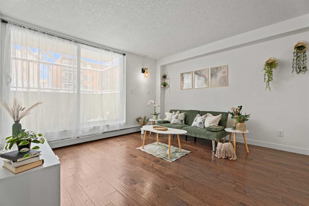 Low condo fees that include all utilities except electricity! Come and check out this updated unit that includes all furnishing and decor in the sale of the property. You won't believe the location either! Literally under a minute to the river front (~100m), and less than a 10 minute walk (~850m) to the Erlton Entrance for Stampede! Nestled on a quiet street, you won't have to worry about traffic noise. From the corner of the block, you can see Calgary Tower a few blocks away, and the community garden is less than a block away. This unit was recently given a refresh and is ready for a loving new owner to enjoy their new boho sanctuary in the middle of the city! Don't wait, schedule your showing today.