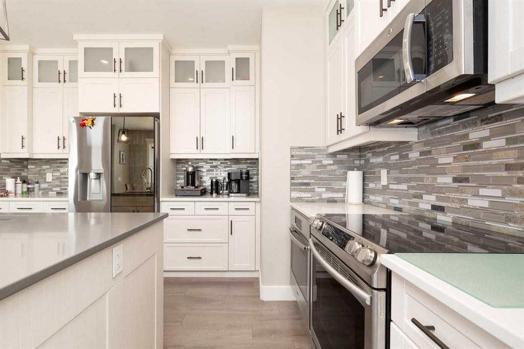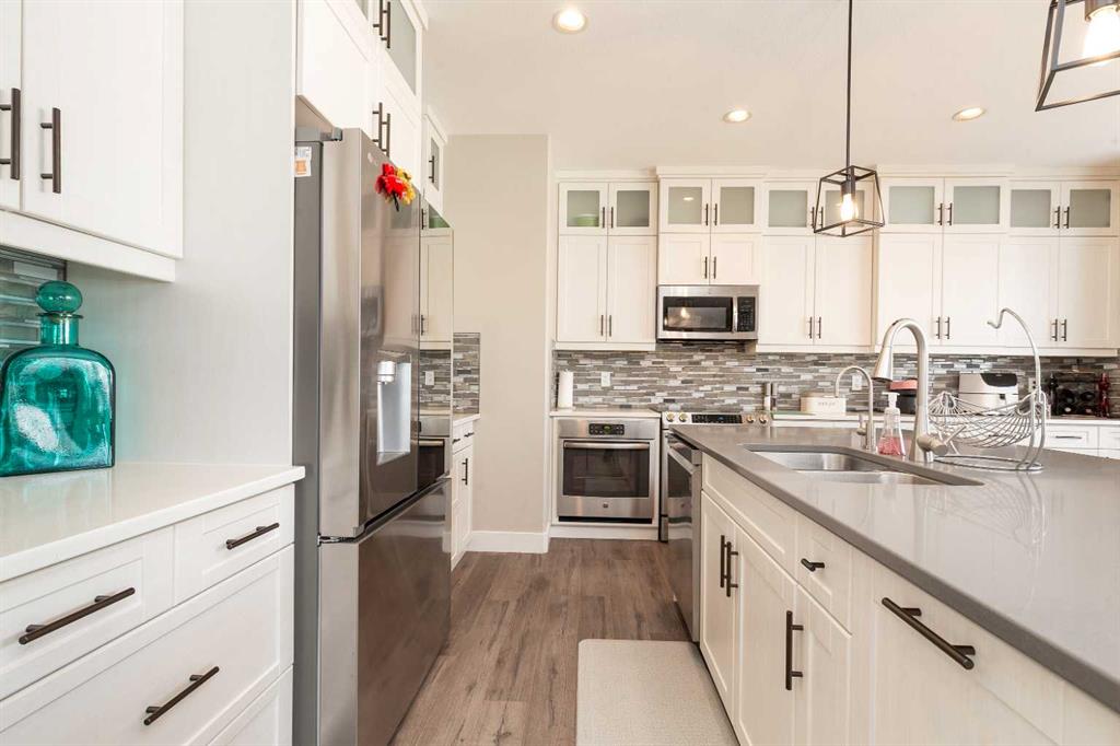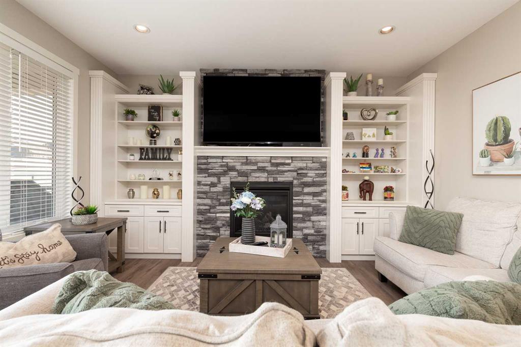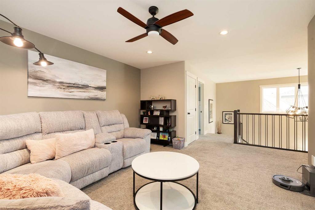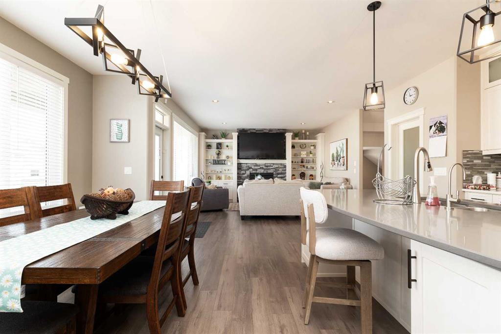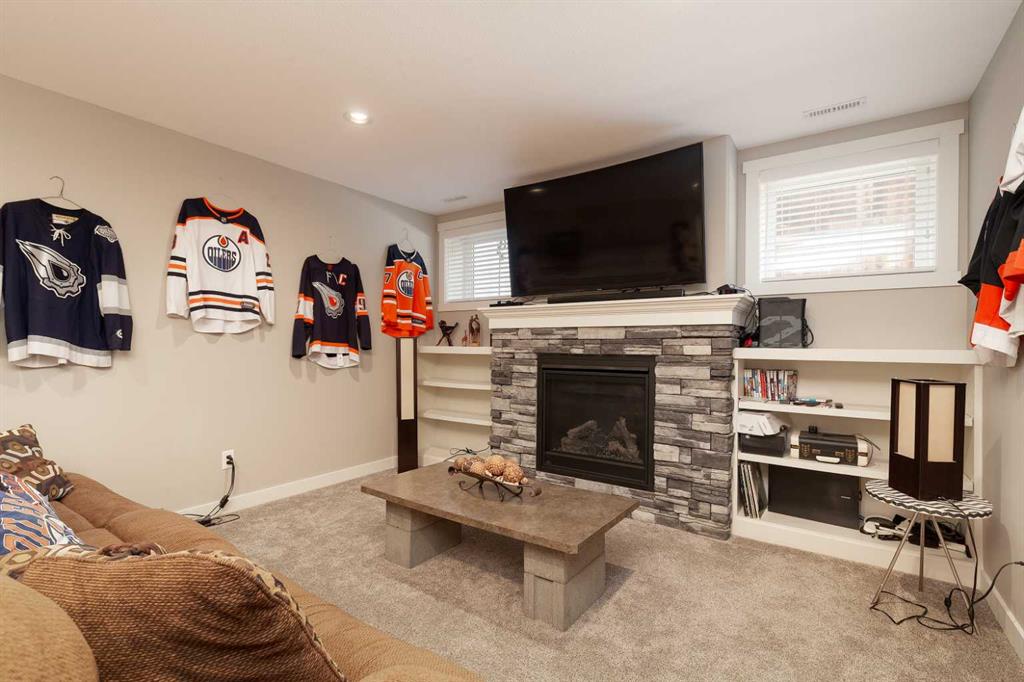 Welcome to this stunning, fully developed home in desirable Southgate, offering space, style, and high-end finishes throughout. Step inside to a stunning open-to-above entrance that immediately set the tone. The main floor features a massive kitchen with quartz countertops, updated appliances, dual ovens, and cabinetry that wraps seamlessly into the dining area. A convenient walk-through pantry connects directly to the garage. The inviting living room showcases a gas fireplace with floor-to-ceiling built-in shelving, while a versatile office or spare bedroom and a 2-piece bathroom complete the main level. Upstairs, you’ll find a spacious primary retreat with a luxurious 5-piece ensuite, including dual sinks, quartz counters, a jetted tub, stand-up shower, heated tile floors, and a walk-in closet. This level also offers a large bonus room, two additional well-sized bedrooms, a 4-piece bathroom, and a dedicated laundry room. The fully finished basement is perfect for entertaining, featuring a large family room with a wet bar, quartz countertops, bar fridge, and a second gas fireplace. Two more bedrooms and a 4-piece bathroom complete the lower level. Outside, enjoy a beautifully landscaped backyard with mature perennials, a circular patio with a water feature, a covered deck with natural gas hookup, and a lower stone patio. The property backs onto an alley and includes a true double garage with impressive 10’ doors, plus permanent outdoor LED lighting. This home checks all the boxes—space, upgrades, and incredible outdoor living.