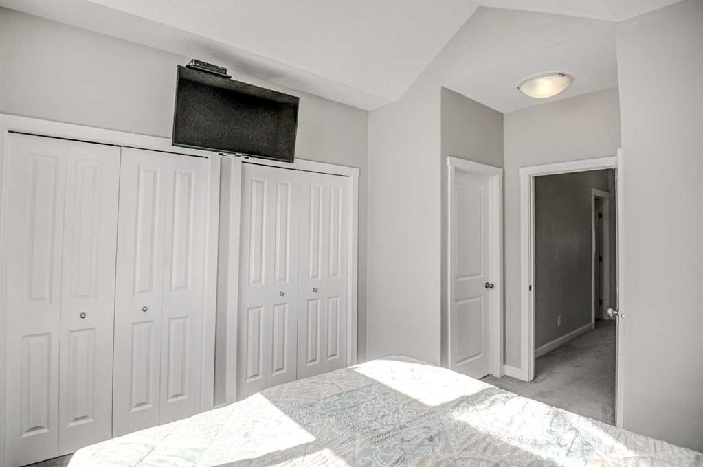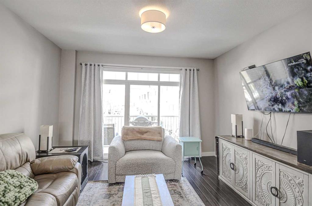 This Gem shows 10/10! In the amenities rich neighbourhood of Skyview your new home awaits, this move in ready townhome has plenty to offer. When you enter you will find a great size foyer with a flex room, perfect for a home office, gym or even a craft space, this level for added convenience has a 2 piece bath and the entrance to your oversized, fully insulated single car garage. Upstairs the second level is the heart of the home, with a large open concept perfect for entertaining, the living room has patio doors that lead to a large balcony and on the other side you will find the dining room and a fully appointed kitchen with ample cupboard space and stainless steel appliances, this level offers 9 foot ceilings and tons of natural light. On the upper level you will find a large primary bedroom with beautiful vaulted ceilings, a 4 piece ensuite and tons of storage with double closets, this level has an additional large bedroom, another 4 piece bathroom and the laundry room. Where comfort and affordability meet, with low condo fees and a maintenance free lifestyle, this home is ready for you!