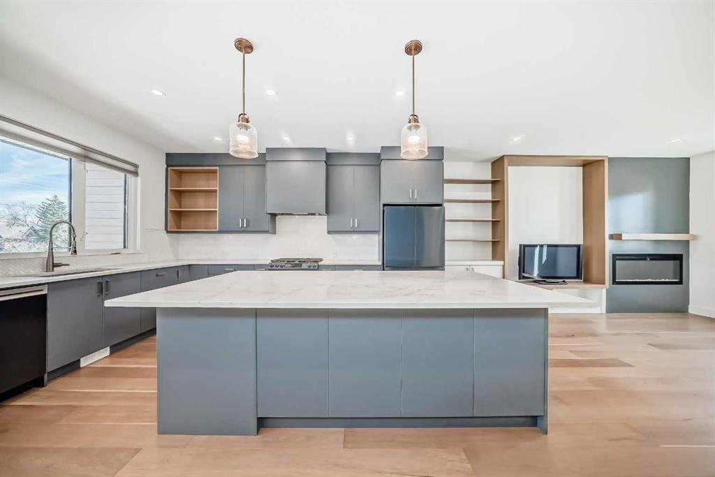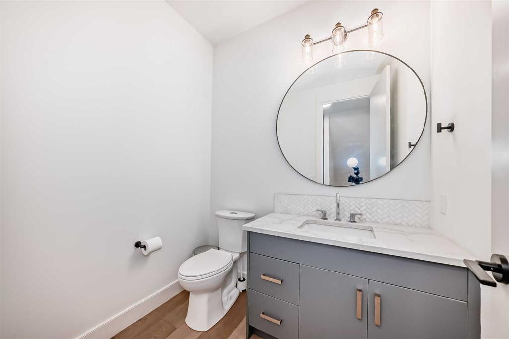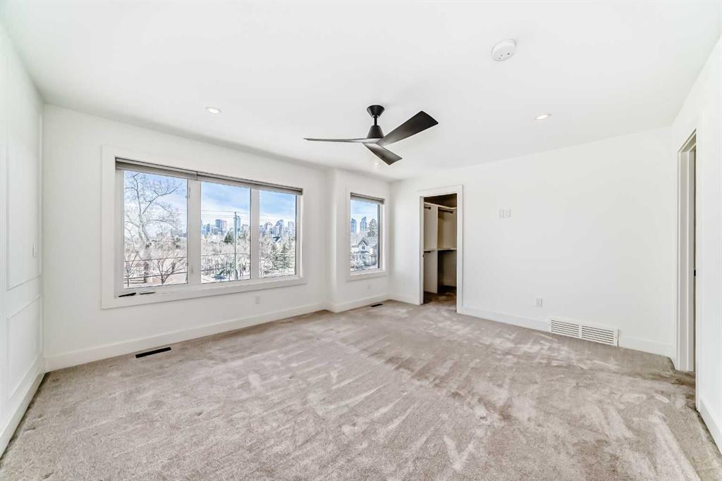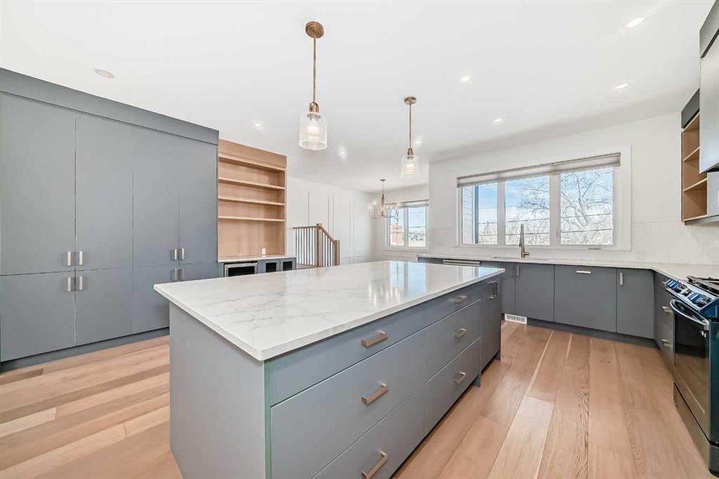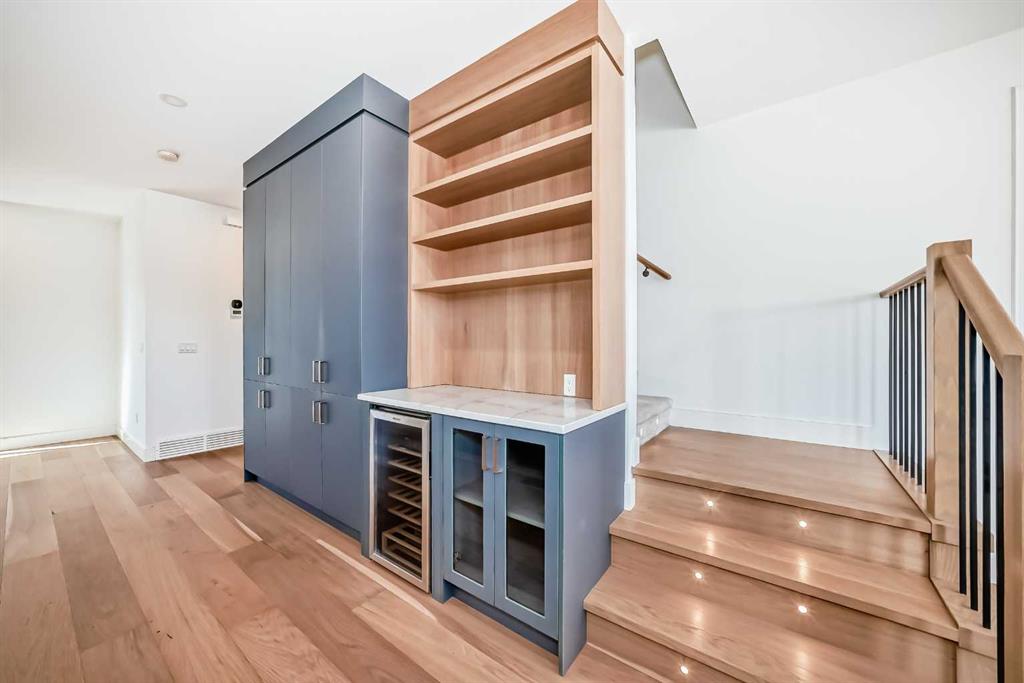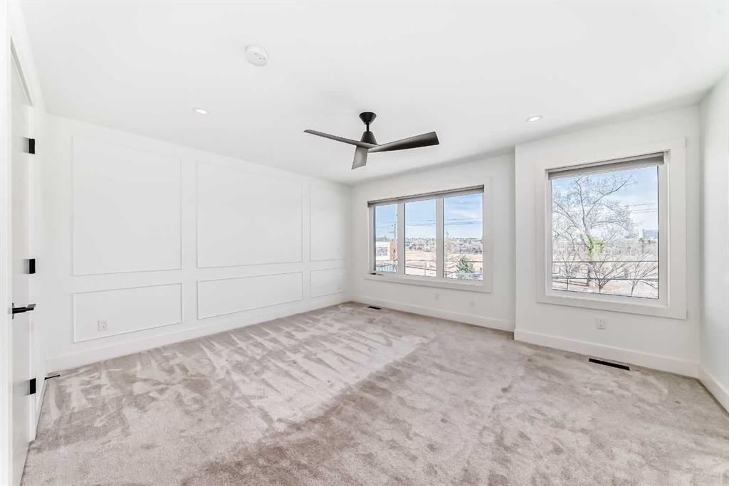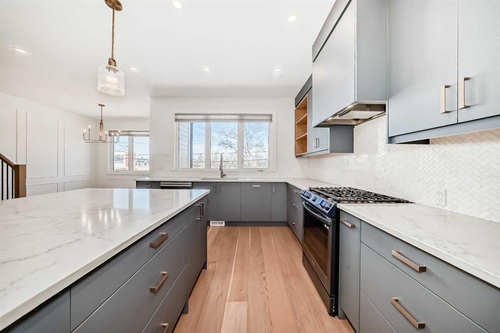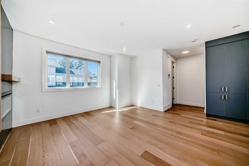 Welcome to West Hillhurst living in a modern designed Rowhouse. With a spacious layout featuring Unobstructed City Views and High-End Finishes, this is one you do not want to miss. This 3-storey Rowhouse boasts 3 bedrooms, 3.5 bathrooms and an attached heated garage with EV hookup. A beautifully designed open concept main floor featuring wide-plank hardwood flooring, oversized triple-pane windows. The kitchen is designed for home chefs and boasts sleek cabinetry, quartz countertops, premium appliances, gas range, open shelves and stylish gold accents. The kitchen island is perfect for entertaining and just off the dining room is a private balcony with BBQ hookup. A stylish powder room completes the main level. Upstairs, the primary suite is a true retreat, featuring a spa-inspired 5-piece ensuite with a soaker tub under a gorgeous chandelier, oversized rainfall shower with build-in quartz bench, double vanity and heated floors. The primary walk-in closet is thoughtfully designed with ample storage. The second bedroom is spacious, complete with its own walk-in closet and a 4-piece ensuite with quartz countertops. A conveniently located laundry room adds to the thoughtful design. The lower level has an additional bedroom and 3-piece bathroom along with an oversized mechanical room with ample storage. Located directly across from highly desirable schools and just steps from parks, shops and restaurants with easy access to Crowchild Trail, downtown and transit, this unbeatable location offers the very best of city living!