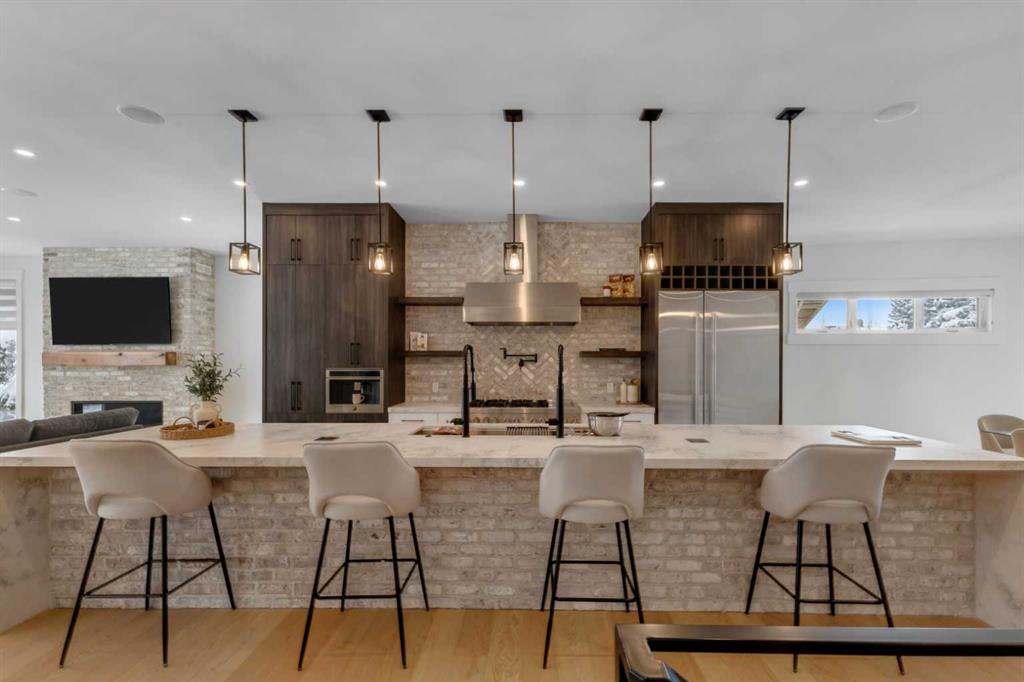 Welcome to your dream home in the heart of Rosemont, offering 4045 sq ft of total living space in a stunning front drive-under bungalow located directly across from Confederation Park. This newly built, custom-designed residence combines modern luxury, thoughtful craftsmanship, and the best of Calgary’s inner-city lifestyle. Enjoy breathtaking park views from your front windows, stroll across the street to the walking paths, or relax in your own private backyard retreat featuring a sports court for pickleball or basketball and professional landscaping. With parkland in front and recreation in back, this home offers an unmatched blend of serenity, space, and sophistication. Step inside and you’ll immediately feel the quality. The grand foyer opens to a bright, open floor plan with 10-foot ceilings, expansive windows, and rich hardwood floors flowing throughout. Natural light fills every space, enhanced by automatic blinds that provide both convenience and privacy. The spacious living room is a statement of design, complete with a custom library wall and incredible park views. At the heart of the home is the chef-inspired kitchen, showcasing a spectacular 18-foot island with quartz countertops, JennAir appliances, a massive walk-in butler’s pantry, dual kitchen sink faucets, and a handcrafted stone backsplash. Designed for both everyday living and entertaining, this space delivers function and style in equal measure. The dining area opens through large glass doors to a sun-filled deck, perfect for morning coffee or evening gatherings overlooking the park. The main level offers three spacious bedrooms. The primary suite is a true retreat, featuring a walk-in closet and a spa-inspired ensuite with heated flooring, a built-in makeup vanity, freestanding tub, oversized glass shower, and double vanity. Two additional full bathrooms and a powder room provide added comfort for family and guests. A well-designed main floor laundry room with custom cabinetry adds everyday convenience. Downstairs, the fully finished lower level offers a spacious recreation area and direct access to the oversized drive-under garage, complete with a heater for year-round use. A large additional bedroom provides flexibility for guests, teens, or extended family. Additional features include a full security system, water softener, and tankless hot water heater. Set on a quiet street, this home is minutes from downtown, SAIT, the University of Calgary, shopping, schools, and transit, all while offering peaceful park-front living. This is more than a home, it’s a lifestyle. Experience luxury, comfort, and timeless design across from Confederation Park in Rosemont.