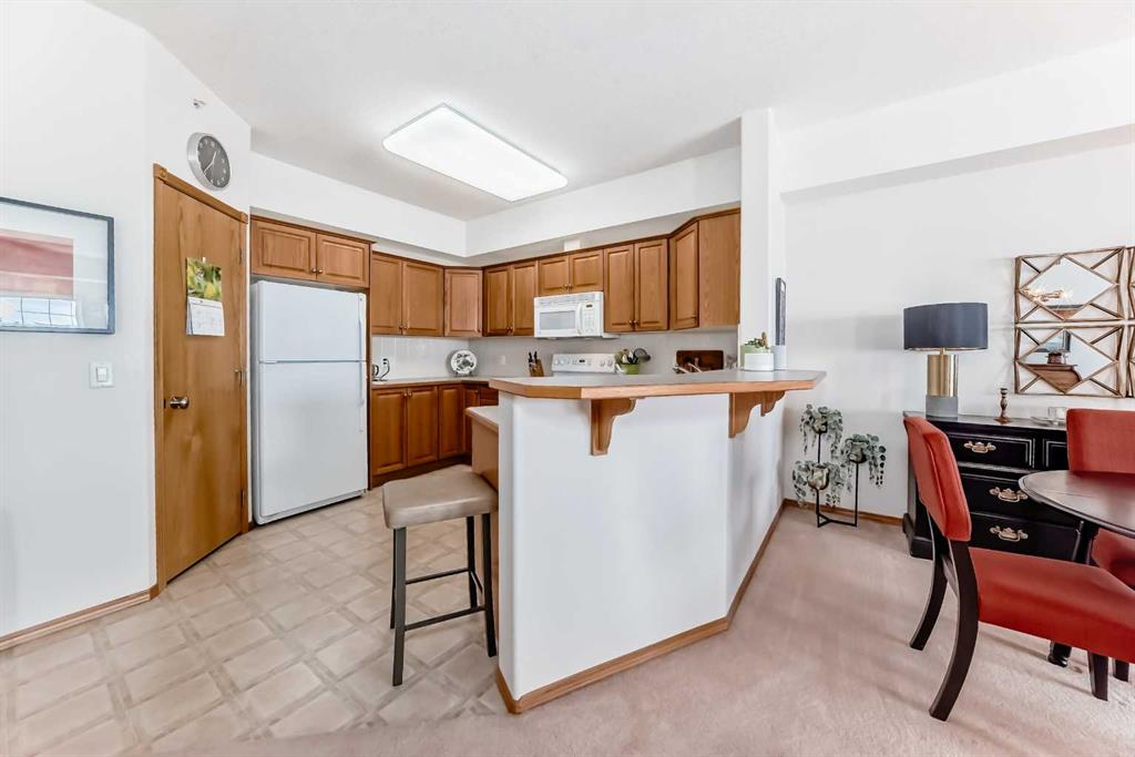 Looking to downsize but thinking an apartment might be too small? At over 900 sf this immaculate top floor unit offers plenty of space for all your furniture including the dining room set! The spacious entry has a double closet for all your exterior clothes. The spacious large living room has an electric fireplace, large windows and plenty of options for furniture placement. The separate dining area will accommodate a cabinet and there’s room to stretch out the family dining room table. The kitchen features a corner pantry, good counter space, and a raised eating bar, ideal for casual meals or entertaining. The primary bedroom is generously sized and includes a walk-in closet and a full 4-piece cheater ensuite. In-suite laundry is conveniently located with additional storage space. Your titled underground parking is located near the entrance of the parkade and is a middle space so there are no posts to navigate as you park! Country Estates on the Cove is a +40 adult building catering to the +55 demographic. Amenities include: theatre, indoor pool and hot tubs, craft room, guest suites, bowling alley, 2 libraries, "dance hall", and pool tables.