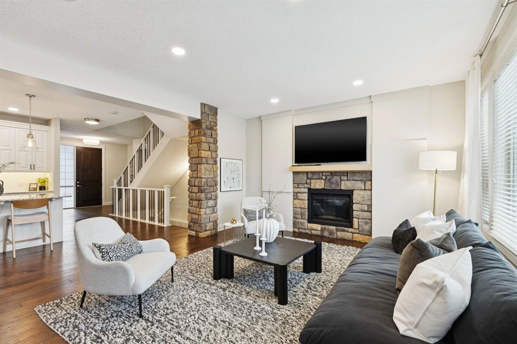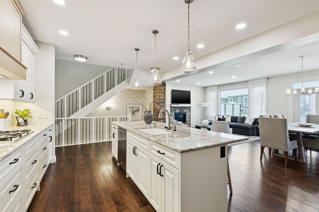 This beautifully updated home in one of Aspen’s most desirable pockets offers the kind of effortless lifestyle today’s families are looking for with recent renovations, an immaculate turn-key condition, and ready to you to simply move in and enjoy. From the moment you step inside, the home feels warm, inviting, and thoughtfully designed for everyday living. An open-concept main floor seamlessly connects the living, dining, and kitchen spaces, making it ideal for both relaxed family time and entertaining. The living room is anchored by a fireplace and framed by large windows that fill the space with natural light, while the dining area opens onto a generous west-facing deck, perfect for summer evenings and sunset dinners. Just off the dining area, a tucked-away home office sits behind French doors, complete with built-in desks for two, and designer wallpaper. It’s the perfect place to work from home or keep an eye on homework while staying connected to the heart of the house. The kitchen is timeless and functional, designed with both beauty and practicality in mind. A large central island with seating invites gathering, while a gas cooktop, wall oven, and a well-appointed pantry with additional fridge/freezer make it a dream for home chefs. The pantry conveniently connects to an organized mudroom and out to the triple garage, making daily routines seamless. Upstairs, a cozy loft offers a flexible space for kids to relax or watch TV. Down the hallway, the primary suite is a luxurious retreat, featuring a spacious walk-in closet and a gorgeous, newly renovated ensuite with in-floor heating, a soaker tub, oversized shower, double vanities, water closet, high end finishes and stylish fixtures. Two additional bedrooms each offer their own walk-in closets and ensuites, offering privacy and space for each family member. A well-equipped laundry room with sink, storage, and drying rod adds everyday convenience. The fully developed basement expands your living space with a media room, home gym, fourth bedroom, and full bathroom. Outside, the west-facing backyard is beautifully landscaped for privacy, creating a serene setting to unwind at the end of the day. Additional features of note include updated cabinetry, a recent paint refresh, air conditioning, and Gemstone exterior lighting that enhances curb appeal. This home is ideally located just minutes from the shops and restaurants of Aspen Landing, top-tier schools like Rundle College, Calgary Academy, and Webber Academy. As well, Ernest Manning High School, Westside Recreation Centre, the C-Train, and Stoney Trail are only moments away. This is a home that truly balances lifestyle, location, and design.