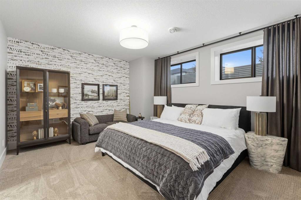 A rare opportunity to own a former Crystal Creek LOTTERY HOME in Watermark, offered FULLY FURNISHED and completely turn key, where every detail has been professionally curated and included. Set on a large lot with a sunny south facing backyard, this 5,652 sq ft fully developed luxury home with triple car garage makes an immediate impression. Soaring open to above ceilings, full height windows, and a statement fireplace define the main living space. The main level flows effortlessly through a designer kitchen with oversized island, premium appliances, butler’s pantry, and an elegant dining area framed by architectural arches and custom lighting, while a private office, functional mudroom, and thoughtful storage round out the floor. Upstairs, the primary retreat feels like a boutique hotel, complete with a spa inspired ensuite with in-floor heating, freestanding tub, oversized shower, fully built out walk in closet, and a private balcony overlooking the south facing yard, a quiet spot for morning coffee or winding down at the end of the day. Additional bedrooms offer their own character and access to ensuites, while the upper lounge overlooks the great room below, creating a bright and open second living space. The fully developed basement is designed for entertaining with a large rec room, bar, gym or flex space, and guest bedroom. Built for comfort and efficiency, this home features dual furnaces, dual A/C units, tankless hot water, HRV system, water softener, audio system, Wi-Fi extenders and full new home warranty coverage for complete peace of mind. Outside, the property features Gemstone lights, is fully landscaped with irrigation system and ready to enjoy from day one. Located just outside Calgary, the prestigious community of Watermark offers estate living with quick access to the city, mountain views, pathways, and a level of privacy that is increasingly hard to find. Homes of this caliber, fully finished and furnished, rarely become available. Book your private showing and experience it in person.