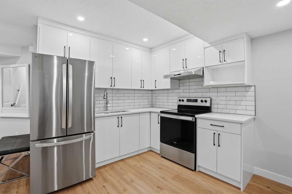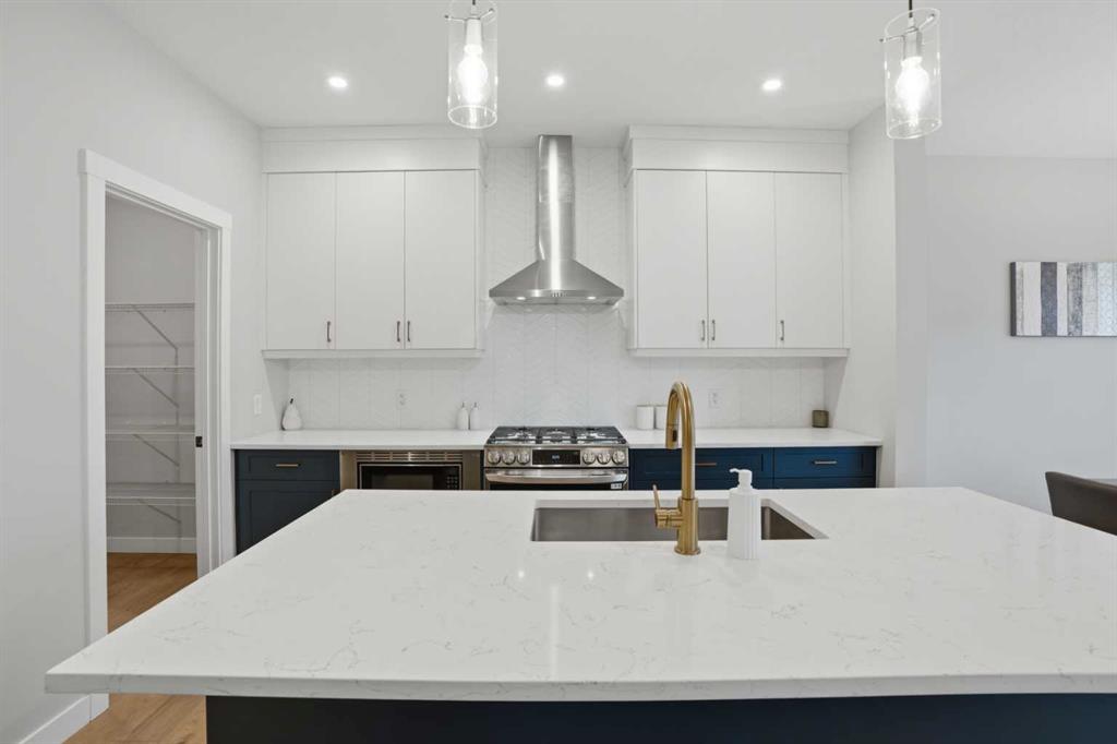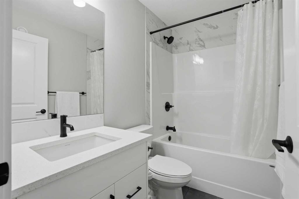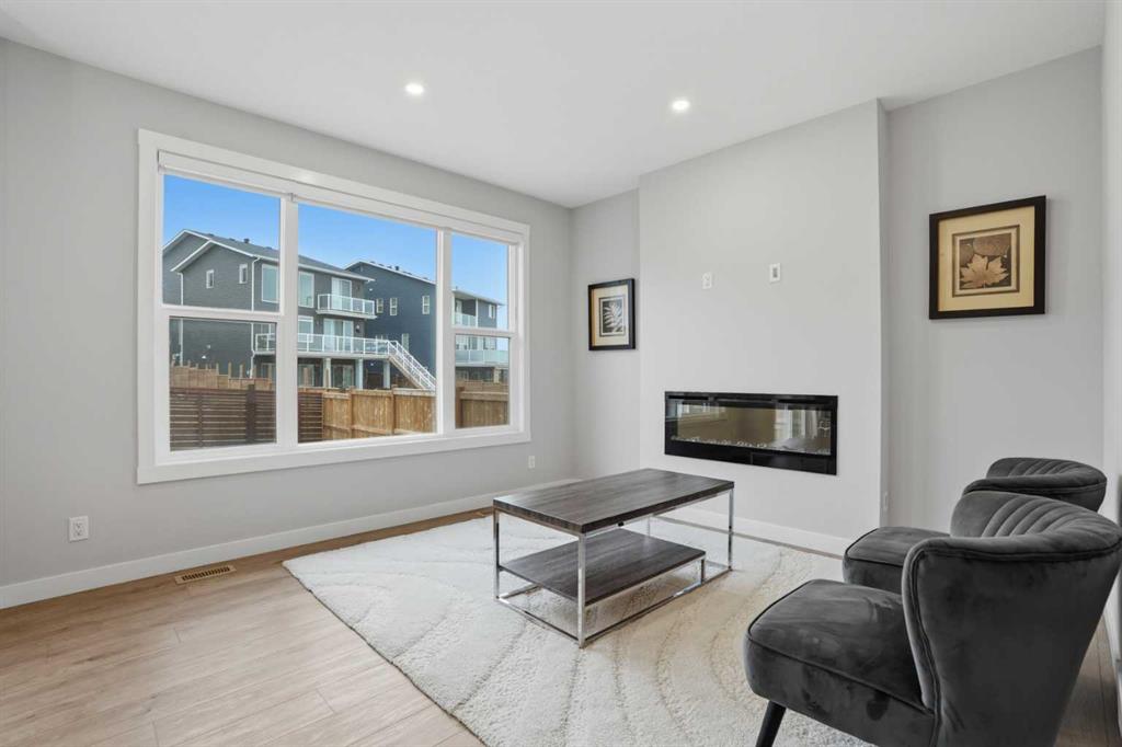 **LEGAL 1 Bed + Den Basement Suite** Stunning Family Home | 2,218 SqFt Main & Upper | 814 SqFt Legal Basement Suite | Sleek Modern Design | Two Toned Kitchen | Full Height Cabinets | Herringbone Backsplash | Stainless Steel Appliances | Gas Stove | Quartz Countertops | Kitchen Island with Barstool Seating Space | Walk-through Pantry | Main Level Office | Electric Fireplace | Open Floor Plan | High Ceilings | Large Windows | Great Natural Light Throughout | 3 Upper Level Bedrooms | Upper Level Family Room | Upper Level Laundry Room with Folding Shelf | Primary Ensuite Bath Standalone Soaking Tub | Great Closet Space | Separate Entry to Legal Basement Suite | Basement Laundry | Open Concept Living | Sizeable Bedrooms | Generous Storage | Rear Deck | Large Fully Fenced Backyard | Front Double Attached Garage. Welcome to your beautiful 2-storey family home boasting over 3,000 SqFt of developed living space throughout the main, upper & basement levels. The front door opens to a view of the beautiful the spindle staircase. The wide plank flooring, high ceilings & wide hallways highlight the size of this home. Step into the open floor plan kitchen, dining & living rooms where you'll immediately want to entertain! The kitchen is two-toned white & blue, a herringbone backsplash, sparkling quartz countertops & stainless steel appliances with a gas stove. The centre island with barstool seating is the perfect space to socialize while you cook or to enjoy small meals. The walk-through pantry that connects the kitchen to the mud room area off the interior garage door makes every grocery drop easy! The dining & living rooms are framed with glass providing incredible natural light. The dining room has sliding glass doors that lead to the back deck making indoor/outdoor living easy in Calgary's warm summer months. The living room is centred with an electric fireplace with a TV ready wall above. The open-door office across from the kitchen island is a bonus for anyone with a work-from home lifestyle or can be used a kid's playroom! The main level is complete with a 2pc bath. Upstairs holds 3 bedrooms, 2 bathrooms, a family room & laundry room. The primary bedroom is a personal oasis with plush carpet flooring, a deep walk-in closet & private 5pc ensuite bathroom. The ensuite has a deep standalone soaking tub, walk-in shower, double vanity & private washing closet. Bedrooms 2 & 3 are on the other side of the central family room; these share the 4pc bath with a tub/shower combo. The family room is a great space to come together in the evenings to relax & unwind. The laundry room located upstairs is every home owner's dream as its near all the bedrooms! Downstairs, the legal 1 bed + Den basement suite has a separate side entry & its own laundry making it a completely independent level in the home. The open floor plan kitchen & rec room is spacious! The bedroom is sizeable & share the 4pc bath. Outside is an incredible backyard is ready to be enjoyed! Hurry and book your showing today!
