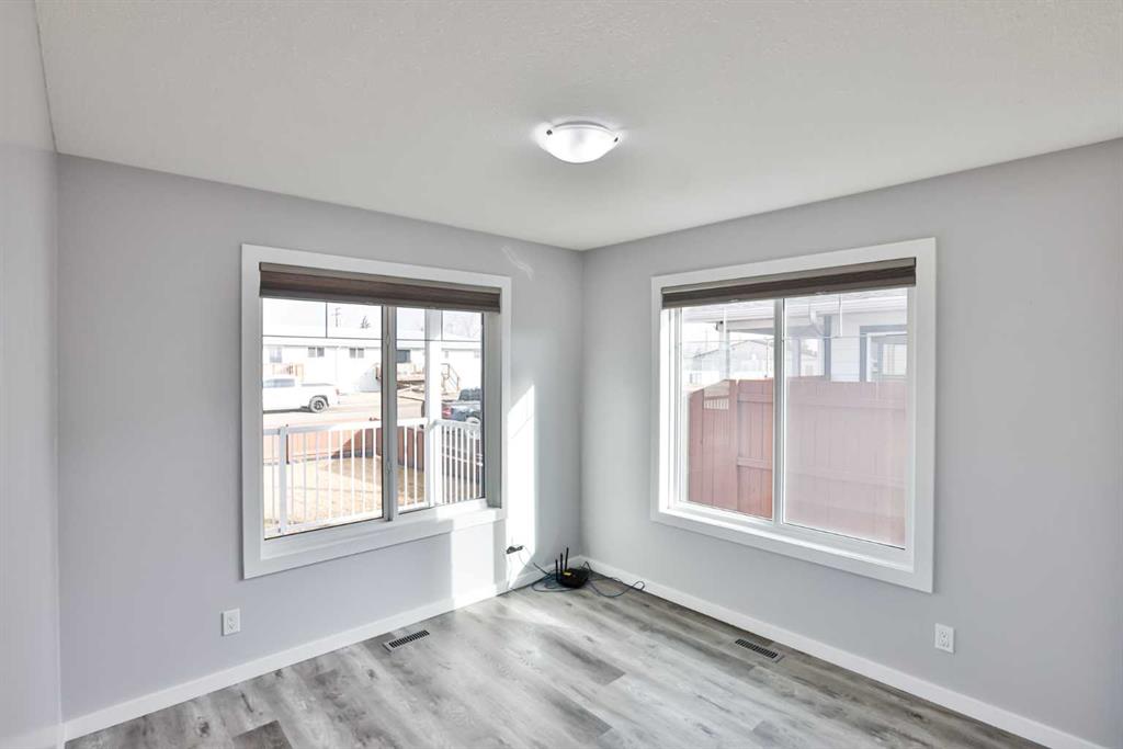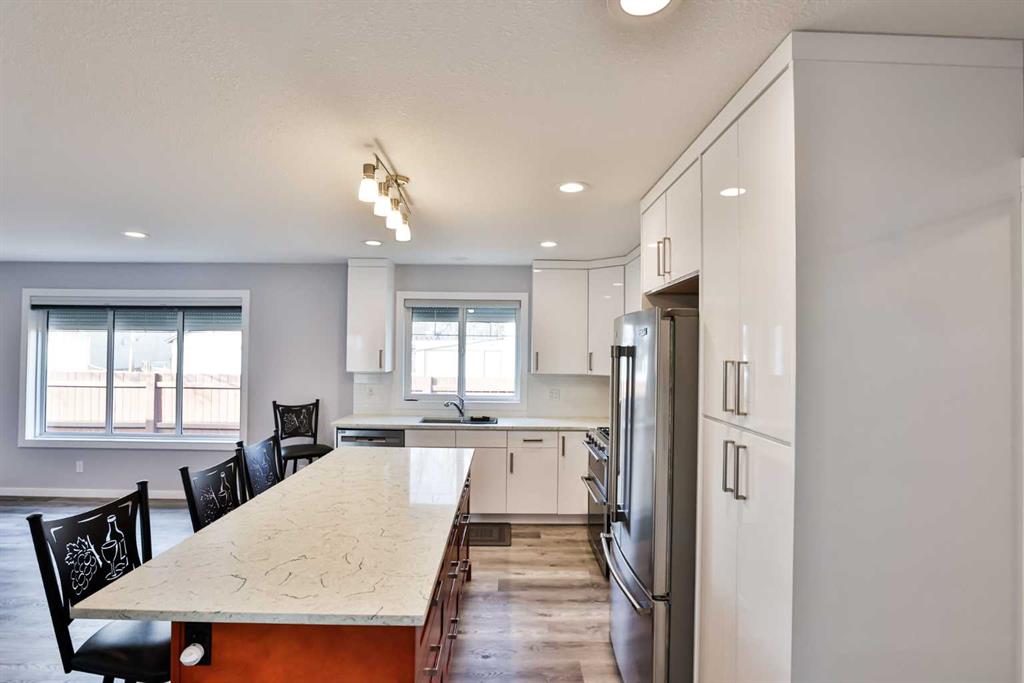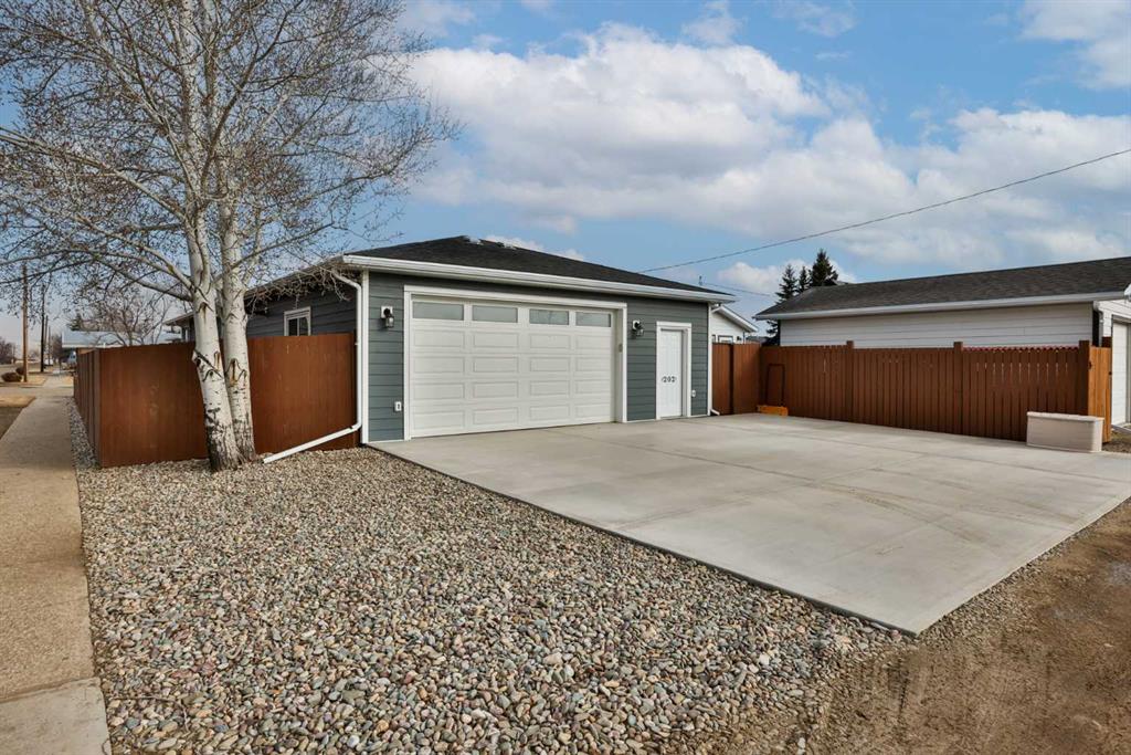 Immaculate 2023 Bungalow in Champion – Move-In Ready! Welcome to this beautifully maintained, like-new home in the charming community of Champion. Built in 2023, this bungalow offers just under 900 sq. ft. of thoughtfully designed living space with 2 bedrooms and 1 bathroom—and truly nothing left to do but move in and enjoy! From the moment you arrive, you’ll appreciate the quaint fenced front yard and welcoming covered porch—perfect for a cozy bistro set where you can relax and watch the world go by. Step inside to find durable vinyl plank flooring flowing throughout the main level. At the front of the home, a spacious laundry and mudroom features a large window that fills the space with natural light while overlooking the front yard. The open-concept kitchen, dining, and living area is bright and inviting, showcasing crisp white cabinetry on the uppers and a warm wood on the island, quartz countertops, stainless steel appliances, and a gas range—ideal for both everyday living and entertaining. Large windows in both the kitchen and living room are outfitted with blinds and automatic Peka rollshutters, offering comfort year-round—keeping the home cool in the summer, warm in the winter, and filled with natural light when desired. The front bedroom is beautifully lit with windows on two sides, making it a perfect guest room or home office. The main bathroom is positioned between the bedrooms and features in-floor heating, a stunning 5-foot tiled shower with glass sliding doors, a spacious vanity, and additional storage. A convenient pocket door connects directly to the primary bedroom, which easily accommodates a king-size bed and includes select furnishings such as a side table and dresser and Tempur-pedic bed. The primary suite also features a manual Peka rollshutter. Just off the living space, you’ll find an oversized double attached garage (28’ x 23’), fully drywalled and painted, complete with a gas heater, furnace room, additional storage closet, and even a full-size fridge and freezer—perfect for extra storage and convenience. At the rear of the home, a massive driveway extends the full width of the garage and then some, providing ample parking—ideal for guests, RVs, or when the grandkids come to visit! The exterior is finished in beautiful dark grey-blue Hardie board siding with crisp white accents, offering timeless curb appeal. Additional features include underground sprinklers, a mature birch tree in the backyard, and a recently installed $12,000 gutter guard system—making exterior maintenance a breeze. Champion amenities include two schools both K–12, an outdoor pool, skating rink, baseball diamonds, parks, walking paths, community hall, and a seniors’ centre. Located just minutes from Little Bow Provincial Park. Only 20 minutes to Vulcan (with a recently renovated hospital), 40 minutes to Lethbridge, and under 2 hours to Calgary. Call your favourite REALTOR® today to book your showing!
