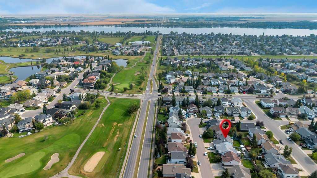 Welcome to this beautifully maintained and meticulously clean bungalow offering over 2500 sq ft of living space in a fantastic location 5 minute walk to the golf course and 10 minute walk to Chestermere lake.. The main floor boosts 1370 sq ft with soaring peak ceilings, large picture windows, and stunning flooring throughout. The bright and open layout is highlighted by a cozy three-sided fireplace, creating warmth and ambiance between the living spaces. You'll find two spacious bedrooms up, including a primary retreat complete with a full ensuite, plus an additional full bathroom on the main level. The basement is over 1200 sq ft and is 1/2 developed offering two additional bedrooms, a 3 piece bathroom, a large laundry room with extra shelving and plenty of extra space with just a small amount of finishings left to make it your own. Step outside and enjoy the charming front porch and a private back deck, perfect for relaxing or entertaining.. The large heated garage easily accommodates a full size truck and car ideal for Alberta living. Extensive updates include, Updated roof , Newer furnace , newer hot water tank, vacuflo system , New fan in fireplace. The home shows extremely well - modern, spotless , and move in ready. THIS ONE WILL NOT LAST AT THIS PRICE - BOOK YOUR SHOWING TODAY!