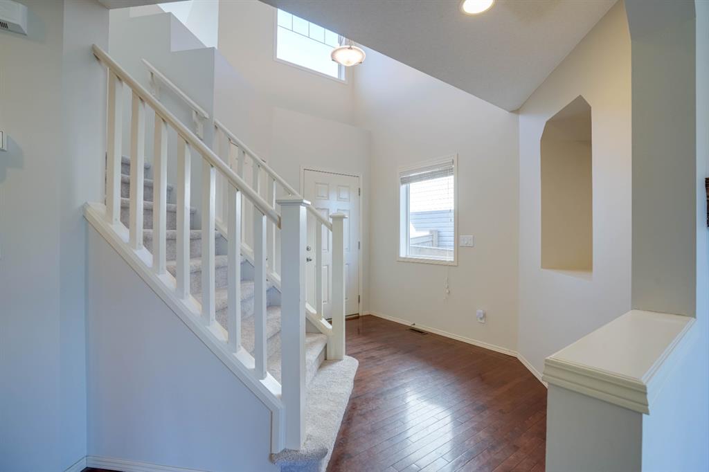 Great Cul-de-sac location in Tuscany with mountain views. This 3 bedroom, one of Cedarglen's best-selling homes, the "Bonneyville" has been newly renovated with New Carpeting & Fresh Paint. A large entrance welcomes you and opens up into a bright, beautiful space with gleaming hardwood flooring extending into the kitchen. The large kitchen features pot lights newer stainless steel appliances, a centre island with and a corner pantry. The large eating nook opens up to the landscaped backyard, featuring a large deck with metal railing. A 2 pc bathroom & laundry/mudroom area completes the main floor. Upstairs boasts 3 great sized bedrooms, including a large primary bedroom with a walk-in closet and spacious en-suite featuring a soaker tub and separate shower. The garage is insulated with a gas -fired heater for a comfortable work-space.