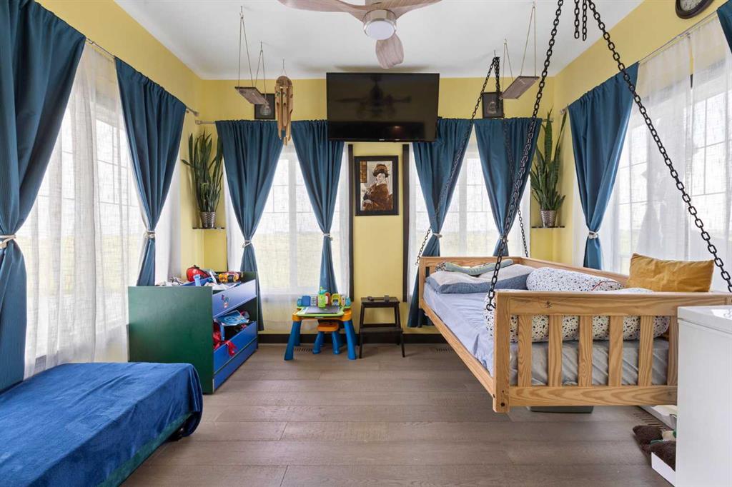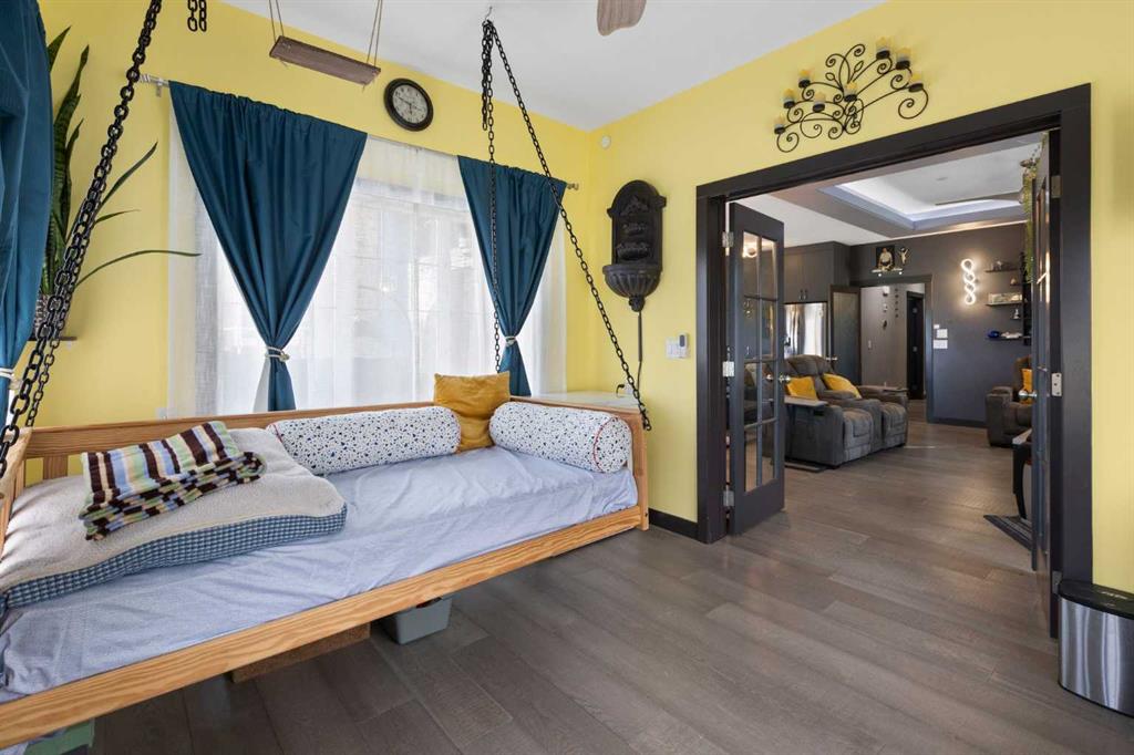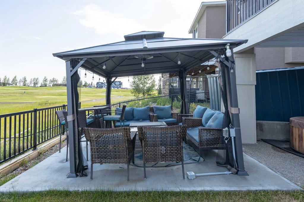 Exceptional 6-Bedroom + Den Walkout Backing onto Muirfield Lakes Golf Course! Experience nearly 3,800 sq. ft. of luxury and versatility in this fully finished two-storey retreat. Designed for modern living, the main floor features a rare bedroom and full bathroom, perfect for guests or multi-generational families, plus a stunning sunroom that can easily serve as a 7th bedroom. At the heart of the home is a chef-inspired kitchen with a massive gas-cooktop island, walk-in pantry, and soft-close cabinetry. Transition seamlessly to the raised deck to soak in breathtaking golf course and pond views. Upstairs, the primary suite is a true sanctuary with his-and-hers walk-in closets, dual vanities, and a private balcony. Lower Level & Outdoor Oasis: The walkout basement is an entertainer’s dream with 3 additional bedrooms, a wet bar, and a spacious living area. Step outside to a professionally landscaped yard featuring fruit trees, a fire pit, and a patio wired for a hot tub. Bonus Features: * EV-ready oversized garage (240V) Pet-lover's dream: Private dog run, built-in dog wash, and custom cat litter cabinet. Comfort: A/C, brand-new roof, and updated railings. Located just 30 minutes from Calgary, this home offers the perfect balance of peaceful golf-course living and urban convenience.