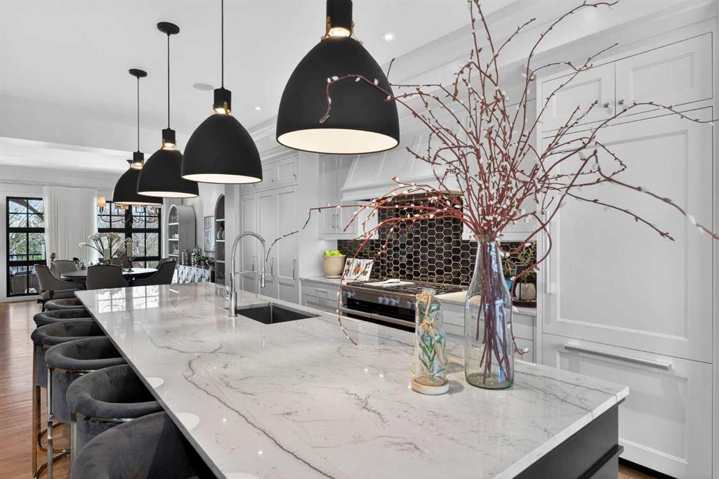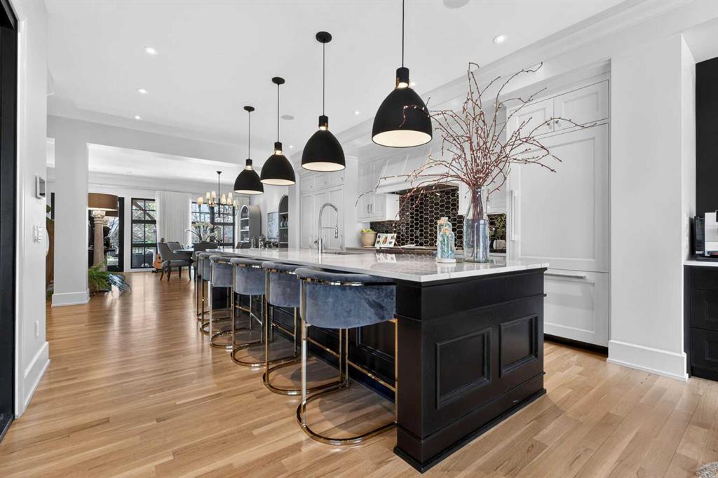 Introducing The Altadore Crest, a custom inner-city residence where timeless architecture meets thoughtful, design-driven refinement. This is not your average infill. At first glance, it's beautiful. But it's how this home lives that truly sets it apart. Situated on an oversized 57' × 124' lot with a west-facing backyard, this Altadore luxury home offers almost 6,000 sq ft of developed living space, including 4,069 sq ft above grade. Built in 2017 with exceptional craftsmanship - full-bed reclaimed antique brick, stone, cedar shakes, copper detailing, and 50-year architectural shingles - the home has since been thoughtfully elevated with extensive smart home integration and mechanical upgrades. The main level features 10-foot ceilings, site-finished white oak hardwood, and a chef's kitchen with Miele appliances, solid wood cabinetry, quartzite counters, and an oversized island. A Lux Tesoro folding wall connects the kitchen to a covered outdoor lounge with gas heaters, typhoon-proof retractable screens, and an outdoor TV - a true extension of the home for year-round entertaining. Unlike most Altadore infills, the backyard offers three distinct zones for entertaining, relaxing, and play — with room for kids and pets to enjoy real green space. Upstairs, the 772 sq ft primary retreat offers spa-inspired luxury: a marble steam shower, a freestanding soaker tub, double vanities with a makeup station, and a fully customized dressing room with Hacker Kitchens cabinetry. Two additional bedrooms each feature ensuites and walk-in closets. Heated floors throughout all bathrooms. A versatile bonus room with a wall of built-in storage and illuminated shelving completes the level. The fully developed lower level includes a temperature-controlled wine cellar, wet bar with custom cabinetry, premium audio throughout, a versatile room with a custom-built desk currently used as a music studio but equally suited as a gym or office, games area with added millwork for seamless storage, Nordic sauna, media and recreation space, plus a fourth bedroom and bath. Behind the walls, the home has been extensively upgraded: fully integrated Control4 automation with hardwired lighting, blinds, audio, and security; Araknis network infrastructure; comprehensive camera and alarm system; upgraded HVAC and A/C units; on-demand hot water; water softener; and leak detection with auto shutoff. Additional features include in-floor slab heat, central A/C, central vacuum, and a triple-heated garage with epoxy floor, metal cabinetry, and a gas heater, plus professional landscaping with irrigation. Altadore defines inner-city family living - steps to top-rated schools, restaurants and coffee shops, parks, river pathways, and Marda Loop. Homes of this scale, quality, and refinement rarely come to market. The Altadore Crest is an exceptional opportunity. Don't forget to check out the VIDEO and give me a call to book a showing. All showings by appointment with listing agent present.