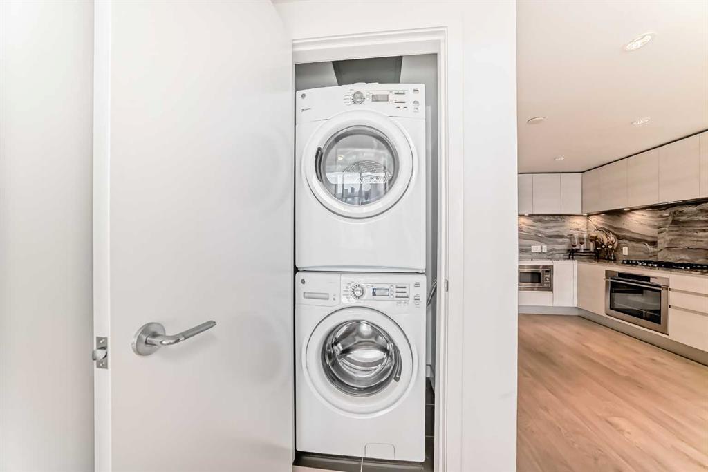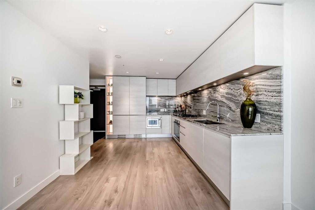 Beautiful 2-bedroom, 2-bathroom home on the 28th floor with an amazing, unobstructed view, right across from Central Memorial Park. With its high-floor location and southern exposure, the unit is exceptionally bright and filled with natural light throughout the day. Parkpoint, an upscale development, offers 24-hour concierge service and a beautiful Zen garden. Residents can also enjoy a well-equipped fitness centre featuring a yoga area, steam room, and sauna, along with an outdoor social lounge. A fully furnished guest suite and ample underground visitor parking are also available. The beautifully crafted kitchen features Italian Armony Cucine cabinets with under-cabinet lighting, along with full slab granite countertops and backsplash. The spa-like bathroom is finished with a marble countertop. The unit offers 9-foot ceilings and wide plank wood laminate flooring throughout. Floor-to-ceiling windows further enhance the open, airy feel of the space. This unit also comes with a titled heated underground parking stall and a designated storage locker for added convenience. This unit is exceptionally clean, smoke-free, and pet-free, making it ideal for those with allergies. Walk or bike everywhere. Safeway, Superstore, restaurants, the park, the public library, and even access to downtown and the Plus Fifteen walkway are just steps away. Additional amenities include fully secured bicycle storage and a car wash