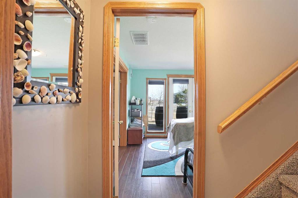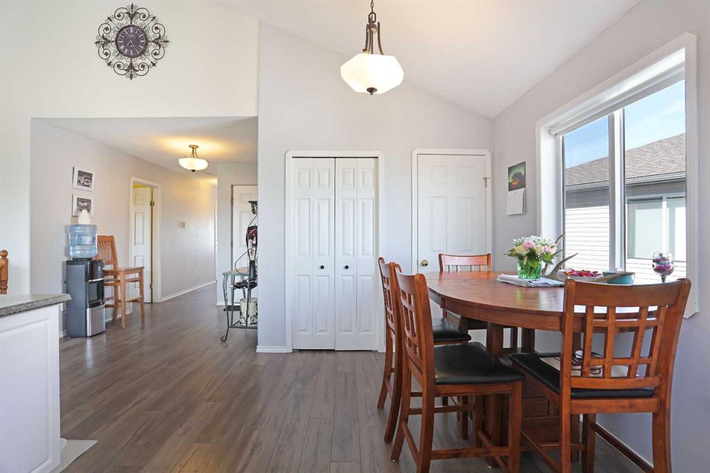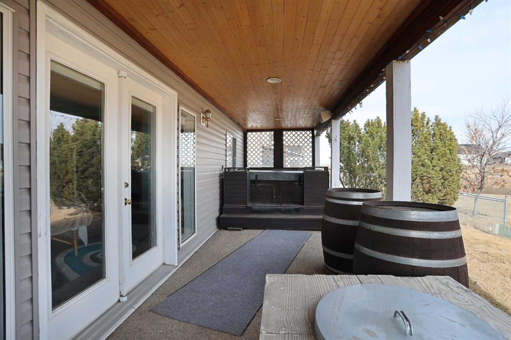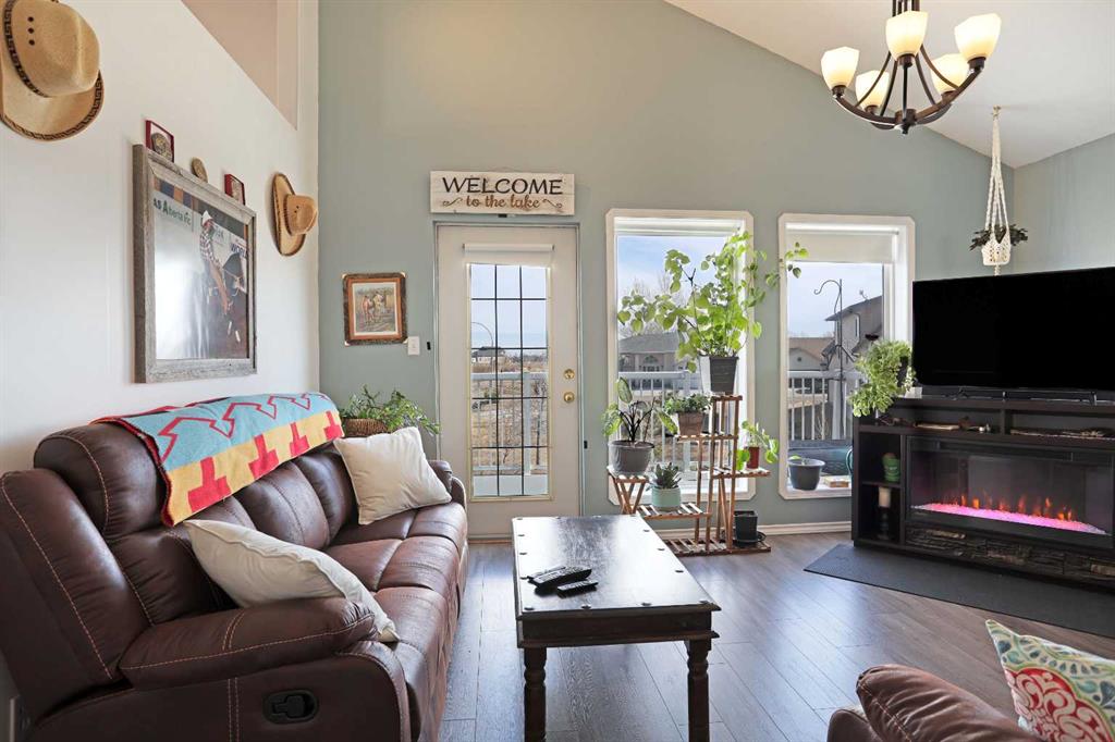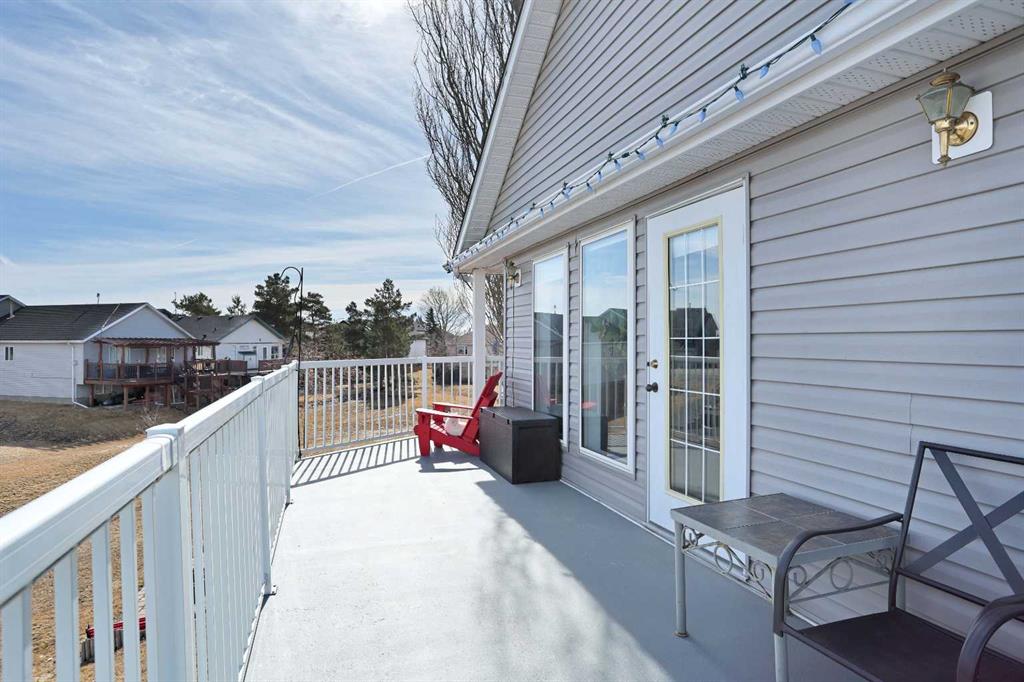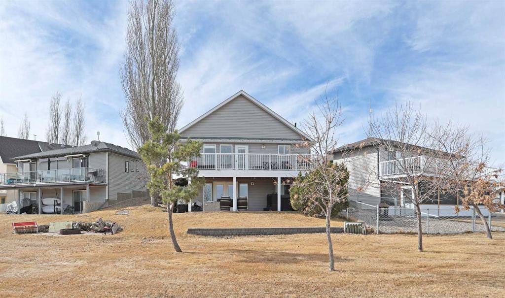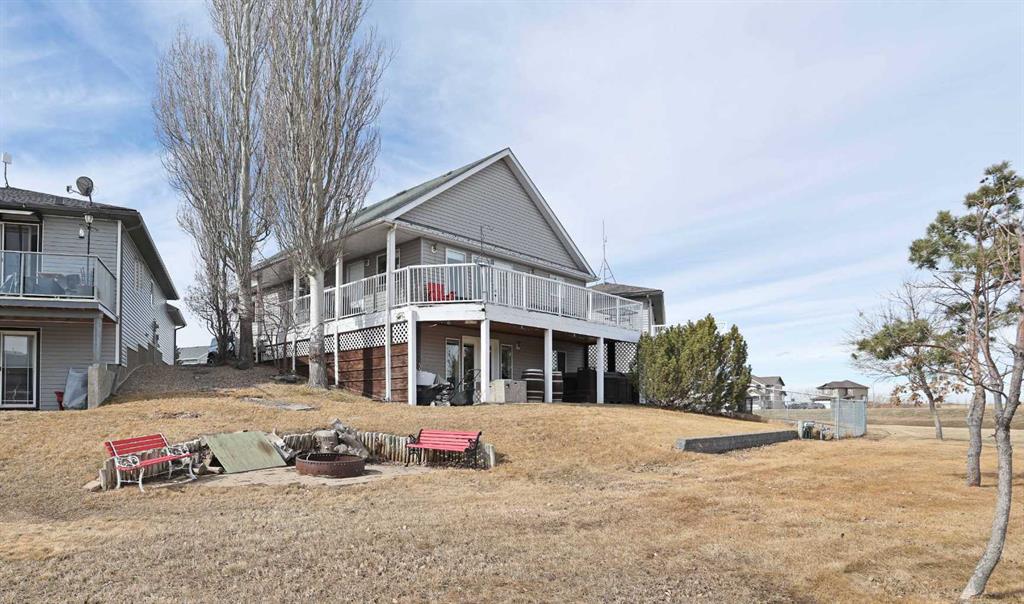 Wonderful 3 bedroom bungalow located in a quiet cul-de-sac at Lake Newell Resort. This well-maintained, move-in-ready home offers a cozy atmosphere and access to year-round outdoor activities, including boating, skating, and beach access. It is an ideal location for both a primary family residence or a vacation home. Key features include: - Main Floor: The sun-filled main level features vaulted ceilings and a spacious kitchen designed for meal preparation and entertaining. The sizable living area provides access to a wrap-around deck, perfect for enjoying summer evenings. Two spacious bedrooms and a full main bathroom complete this floor. - Walk-out Basement: This level provides a second living area with access to a patio featuring a secluded hot tub and a dedicated fire pit area. It includes a large primary bedroom and a versatile bonus room suitable for an office or flex space. A five-piece bathroom is conveniently accessible from both the primary bedroom and the hallway.