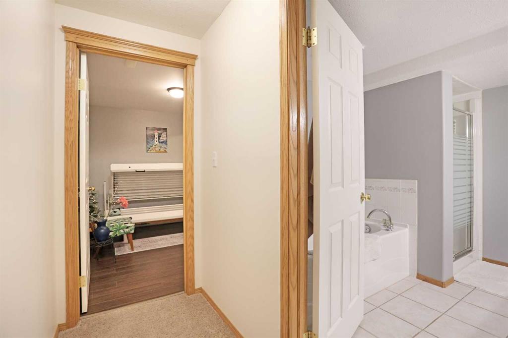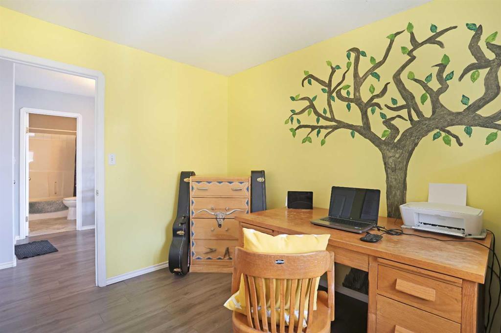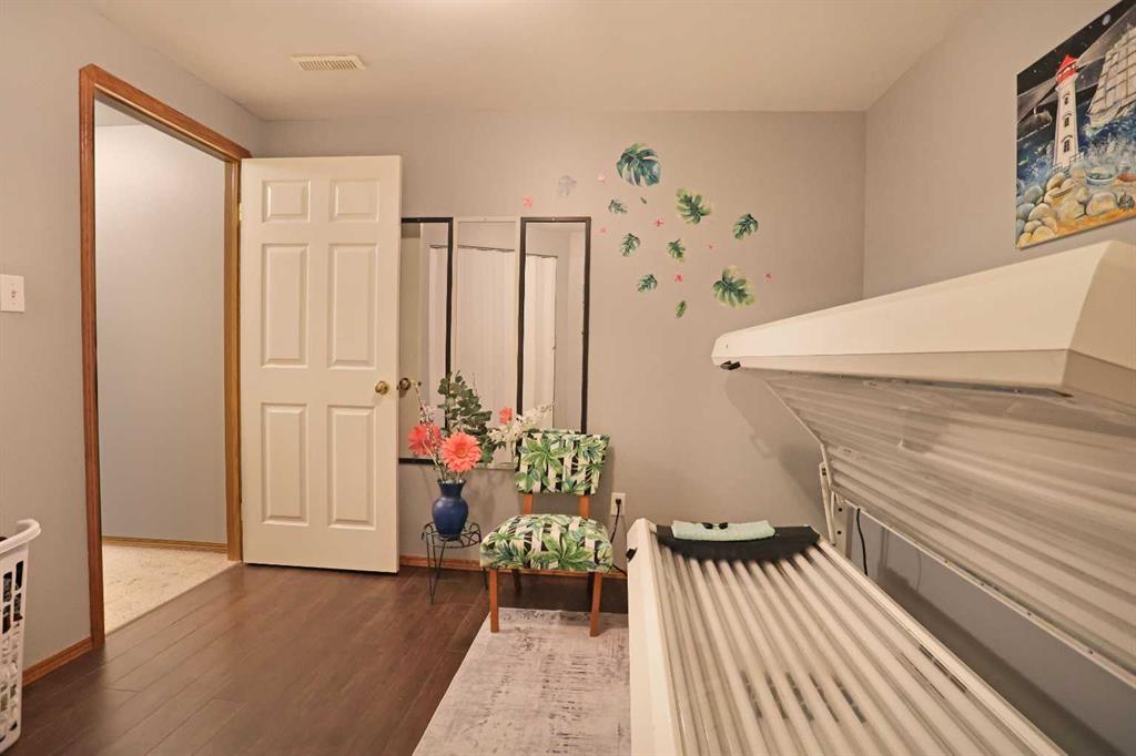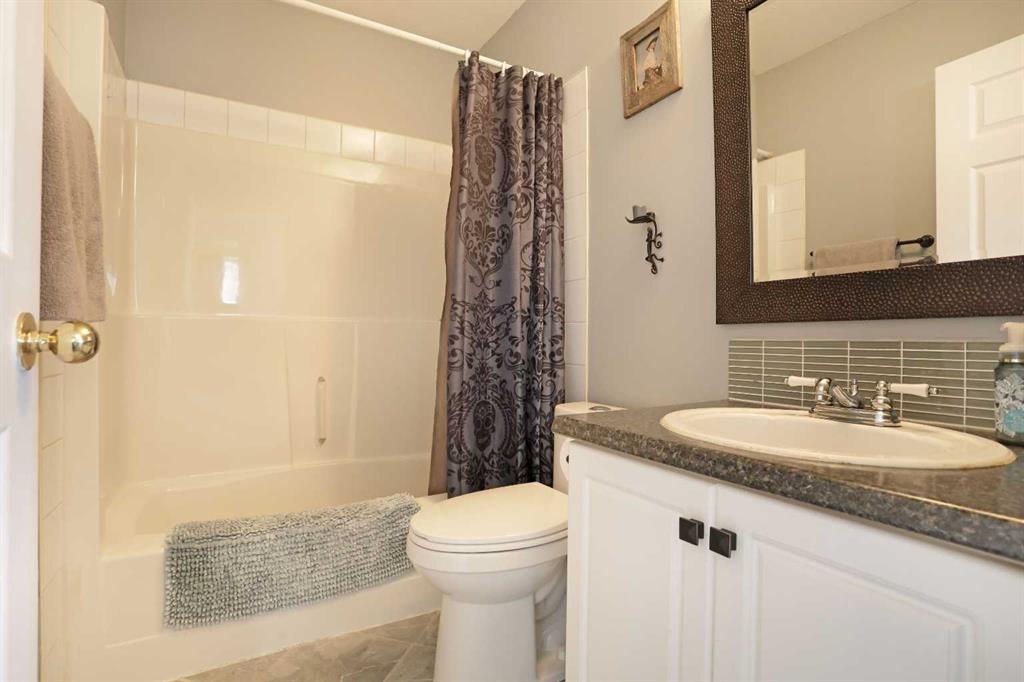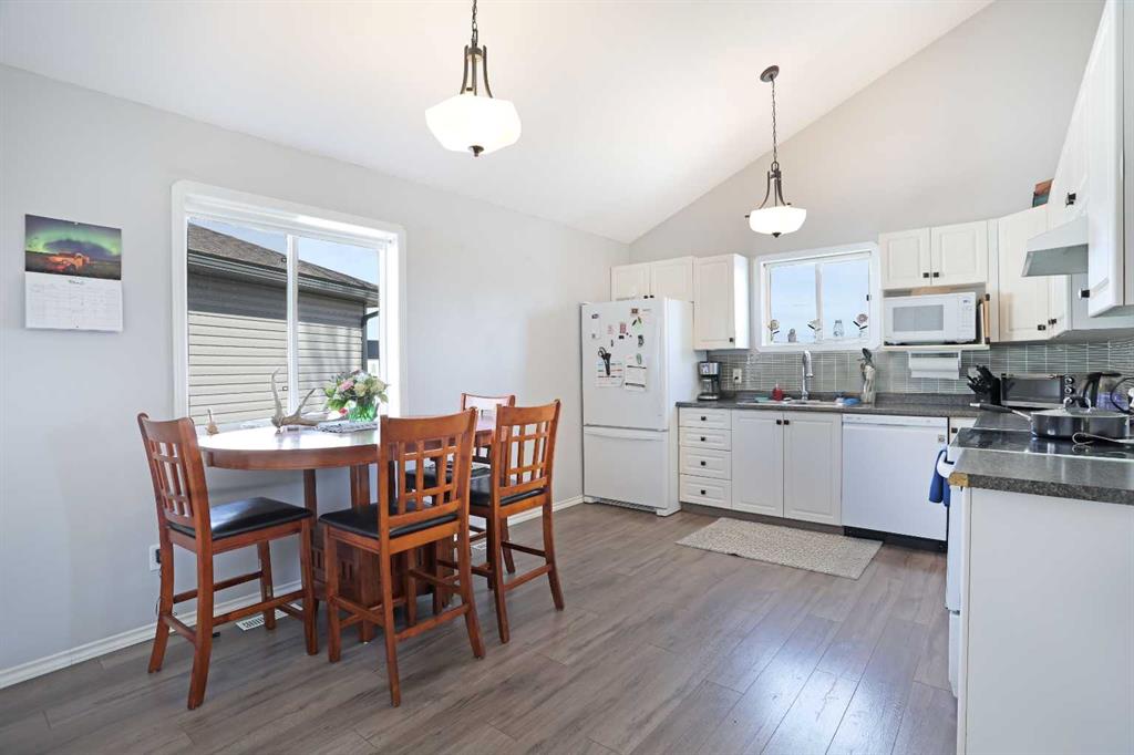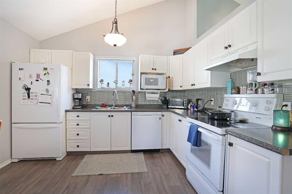 Wonderful 3 bedroom bungalow located in a quiet cul-de-sac at Lake Newell Resort. This well-maintained, move-in-ready home offers a cozy atmosphere and access to year-round outdoor activities, including boating, skating, and beach access. It is an ideal location for both a primary family residence or a vacation home. Key features include: - Main Floor: The sun-filled main level features vaulted ceilings and a spacious kitchen designed for meal preparation and entertaining. The sizable living area provides access to a wrap-around deck, perfect for enjoying summer evenings. Two spacious bedrooms and a full main bathroom complete this floor. - Walk-out Basement: This level provides a second living area with access to a patio featuring a secluded hot tub and a dedicated fire pit area. It includes a large primary bedroom and a versatile bonus room suitable for an office or flex space. A five-piece bathroom is conveniently accessible from both the primary bedroom and the hallway.