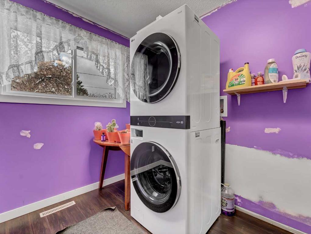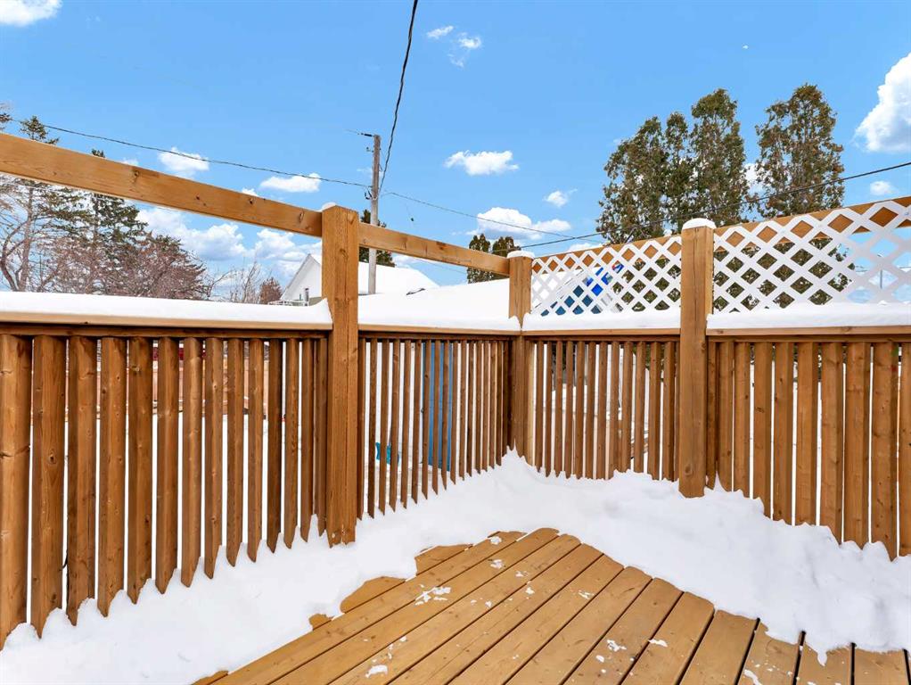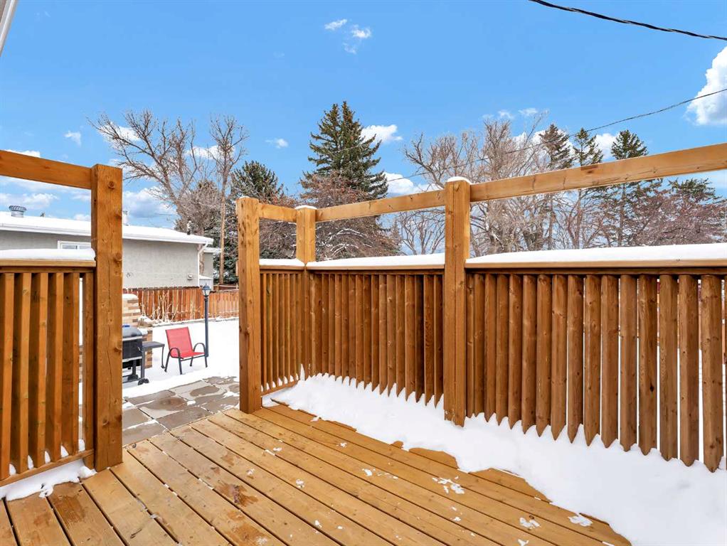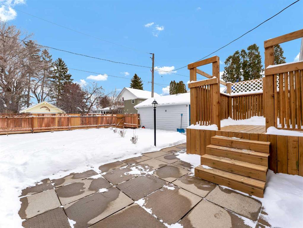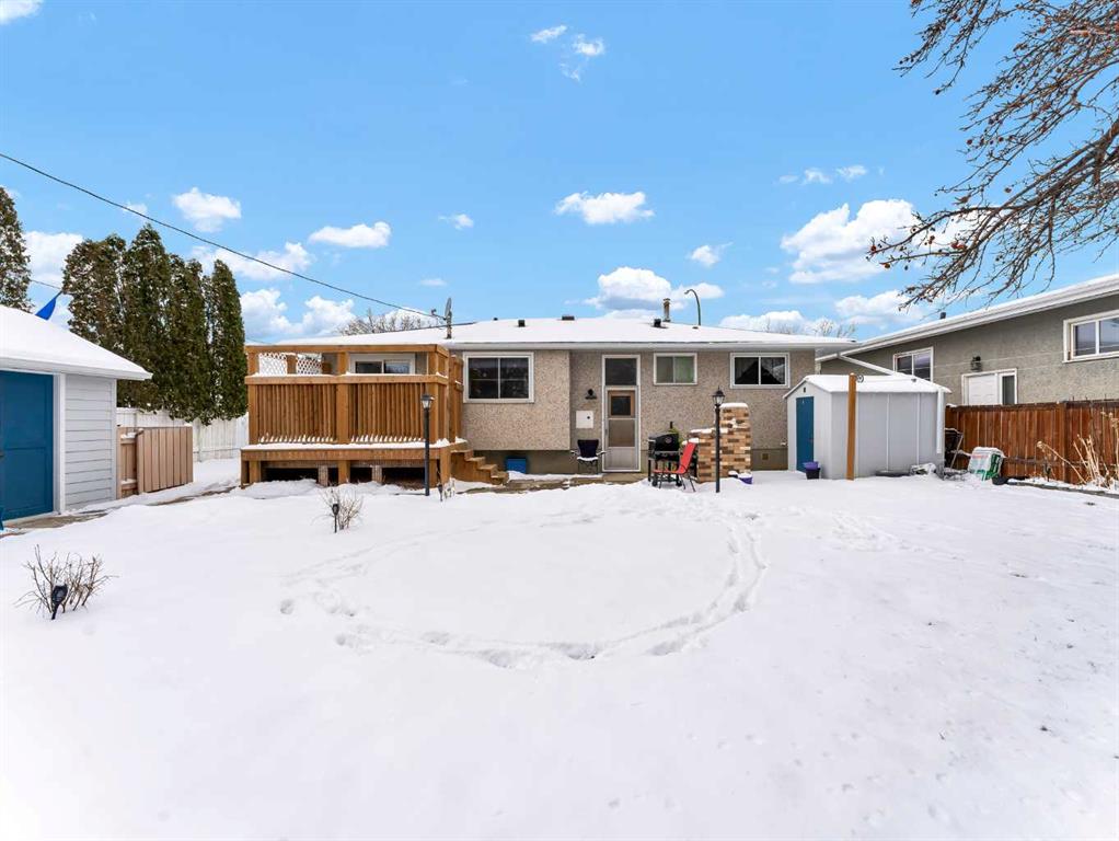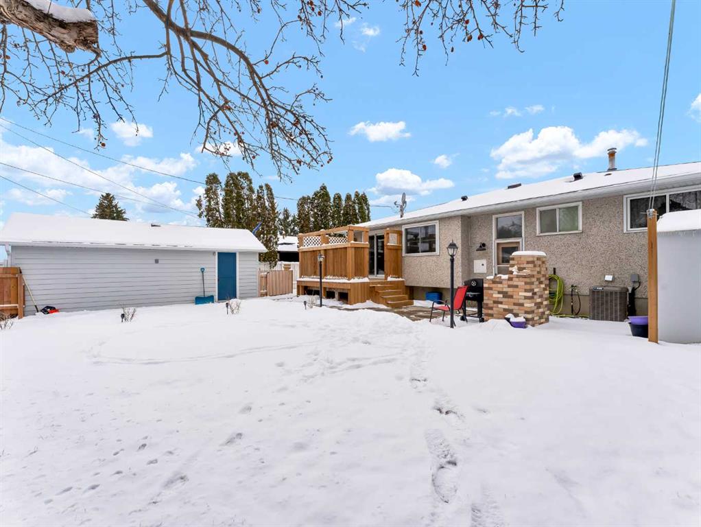 Nestled on a QUIET COURT WITH A GREEN BELT in the back, this RENOVATED BUNGALOW has TWO KITCHENS and TWO LAUNDRY ROOMS! This 4 bedroom , 2 bathroom home provides 2 excellent living spaces! The main floor has a nice open Kitchen / Dining area that takes advantage of the natural light. There are 3 bedrooms up, with one of the bedrooms currently set up as a MAIN FLOOR LAUNDRY. The main bathroom has been thoroughly renovated, the updated kitchen has a great layout with the sink and BRAND NEW DISHWASHER located in a central island. UPDATED WINDOWS AND PATIO DOORS on the main floor as well! The discreet rear entry to the home provides access to the basement . There is a convenient KITCHENETTE downstairs , a second laundry , a sitting room , a flex room , a bathroom , and a bedroom. There is a high efficiency furnace , a BRAND NEW A/C, and some updated plumbing and electrical as well. Being situated on a 65 foot wide lot creates an awesome back yard! There is a newer wooden deck and patio, an insulated detached single garage with a new overhead door, the yard is fully fenced, and also has U/G sprinklers front and back. A few other upgrades include NEW SOFFIT AND FACIA, and exterior paint. This is a great home in a great location where you can simply move in and enjoy !
