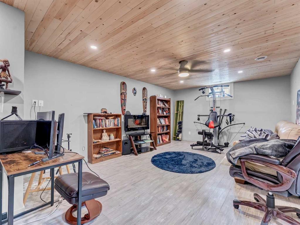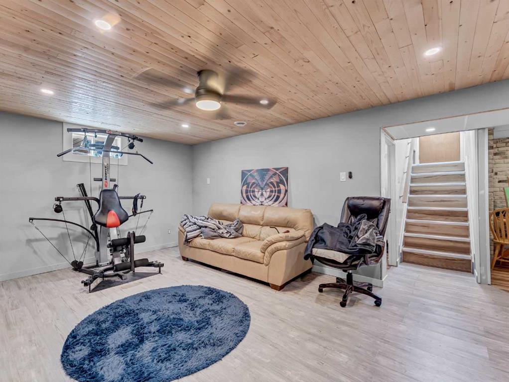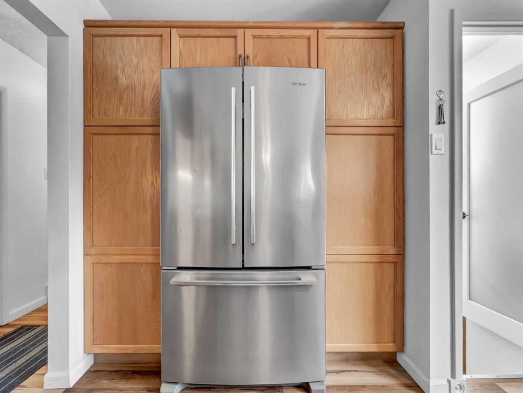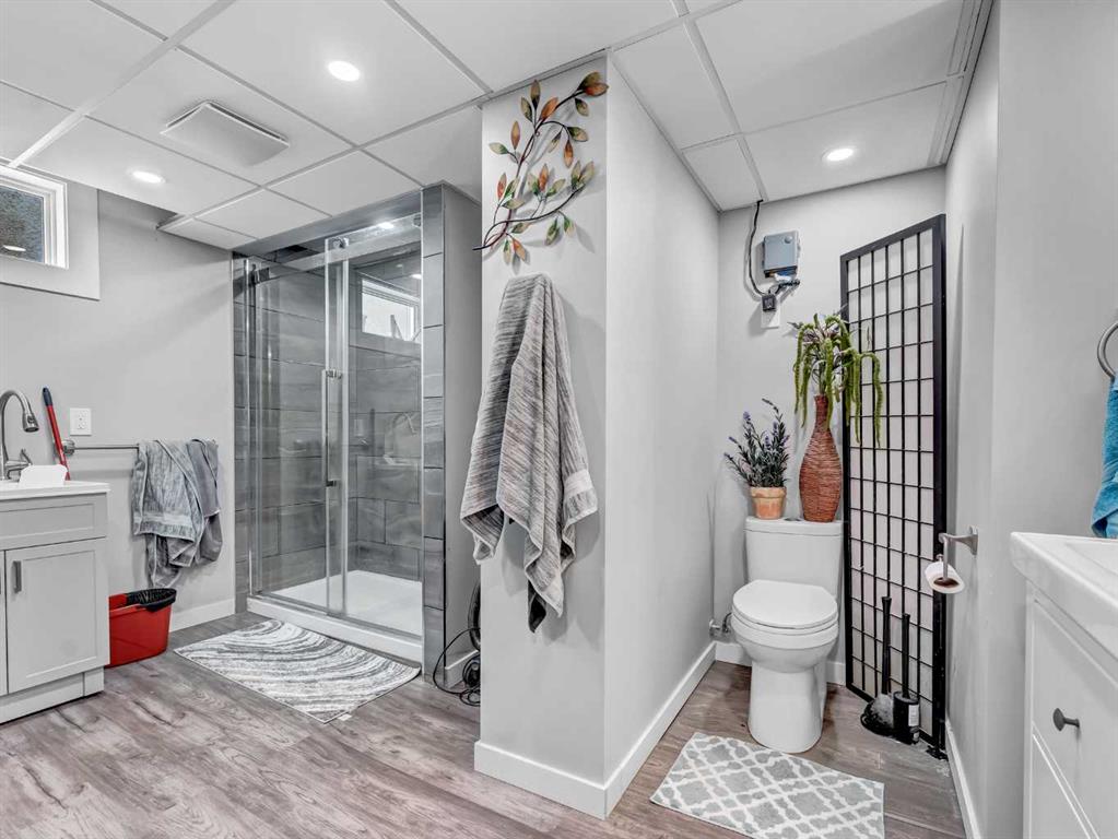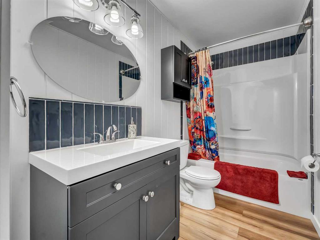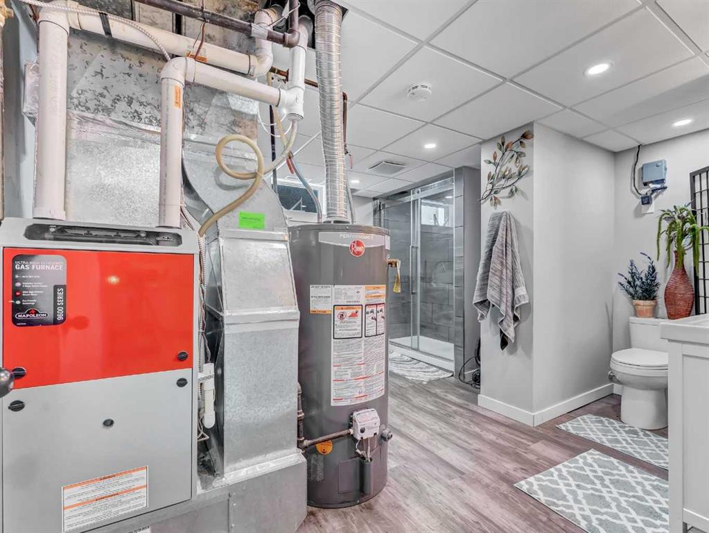 Nestled on a QUIET COURT WITH A GREEN BELT in the back, this RENOVATED BUNGALOW has TWO KITCHENS and TWO LAUNDRY ROOMS! This 4 bedroom , 2 bathroom home provides 2 excellent living spaces! The main floor has a nice open Kitchen / Dining area that takes advantage of the natural light. There are 3 bedrooms up, with one of the bedrooms currently set up as a MAIN FLOOR LAUNDRY. The main bathroom has been thoroughly renovated, the updated kitchen has a great layout with the sink and BRAND NEW DISHWASHER located in a central island. UPDATED WINDOWS AND PATIO DOORS on the main floor as well! The discreet rear entry to the home provides access to the basement . There is a convenient KITCHENETTE downstairs , a second laundry , a sitting room , a flex room , a bathroom , and a bedroom. There is a high efficiency furnace , a BRAND NEW A/C, and some updated plumbing and electrical as well. Being situated on a 65 foot wide lot creates an awesome back yard! There is a newer wooden deck and patio, an insulated detached single garage with a new overhead door, the yard is fully fenced, and also has U/G sprinklers front and back. A few other upgrades include NEW SOFFIT AND FACIA, and exterior paint. This is a great home in a great location where you can simply move in and enjoy !