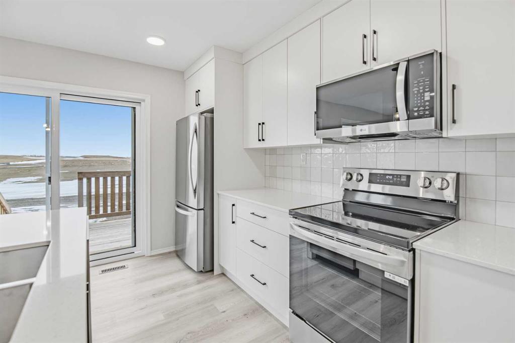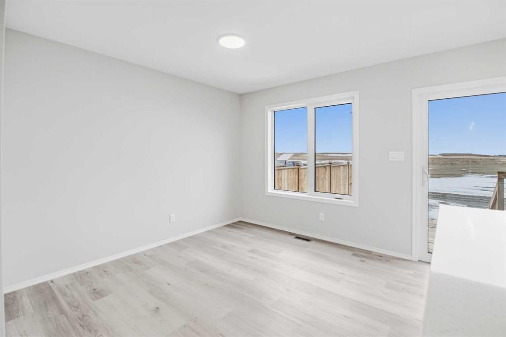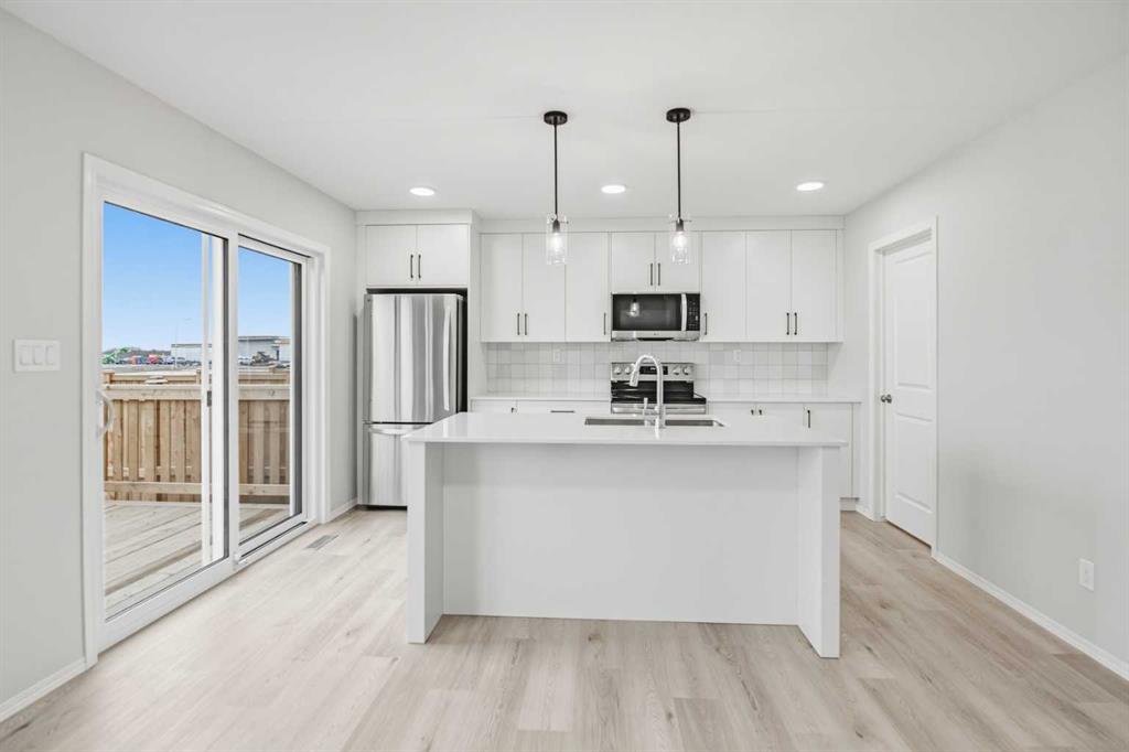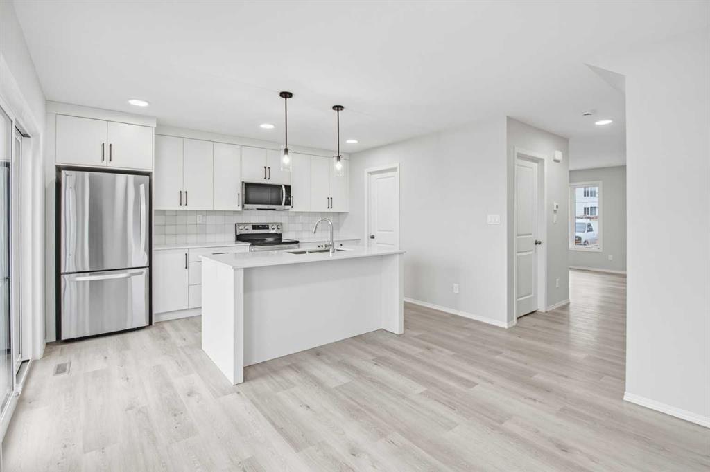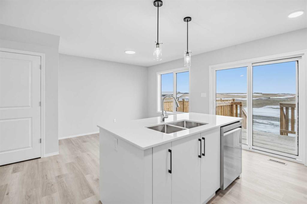 Experience the best of Blackfalds living in this pristine 1,320 sq. ft. two storey townhome in the sought after Aspen Lakes West subdivision. Be the very first to occupy this thoughtfully designed home featuring 3 spacious bedrooms and 2.5 bathrooms. The main floor offers a bright, open concept layout with a modern kitchen complete with a center island and quartz countertops. Upstairs, you will find a primary suite with a private ensuite, two additional bedrooms, and the added convenience of upper floor laundry. Located just steps from playgrounds, scenic walking trails and more! This home perfectly blends contemporary style with community connection. Photos are representative.