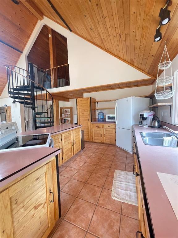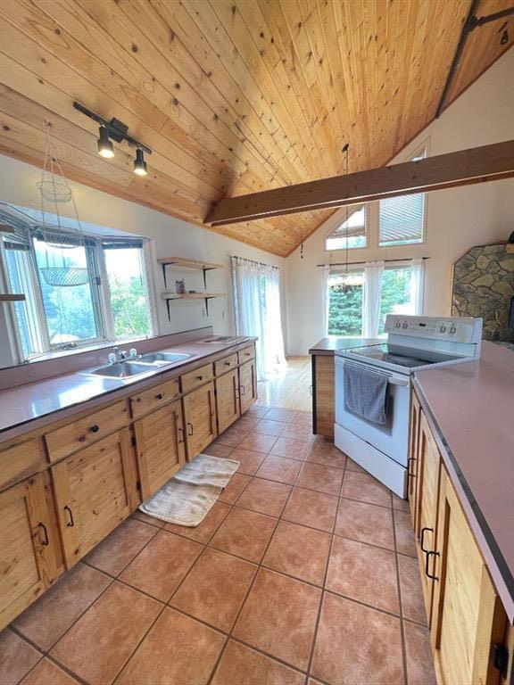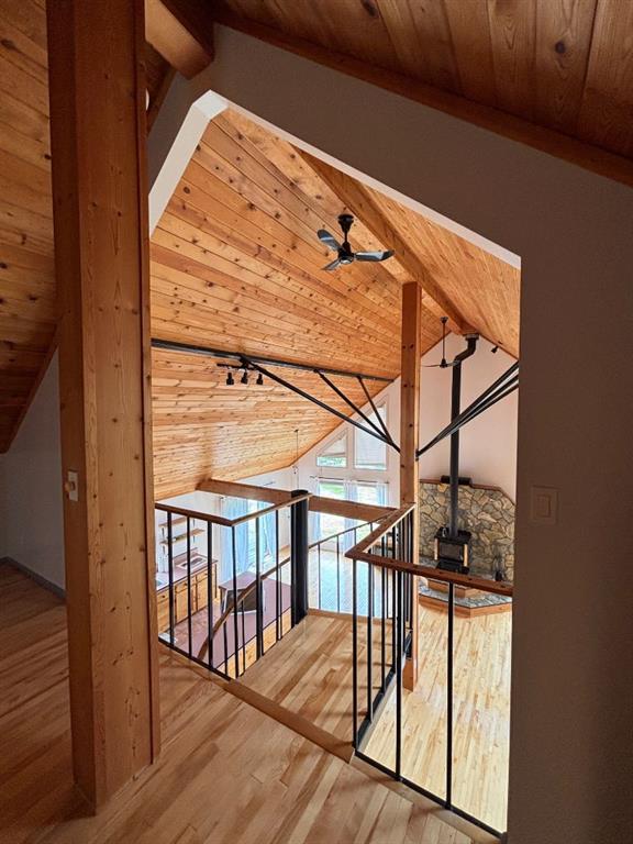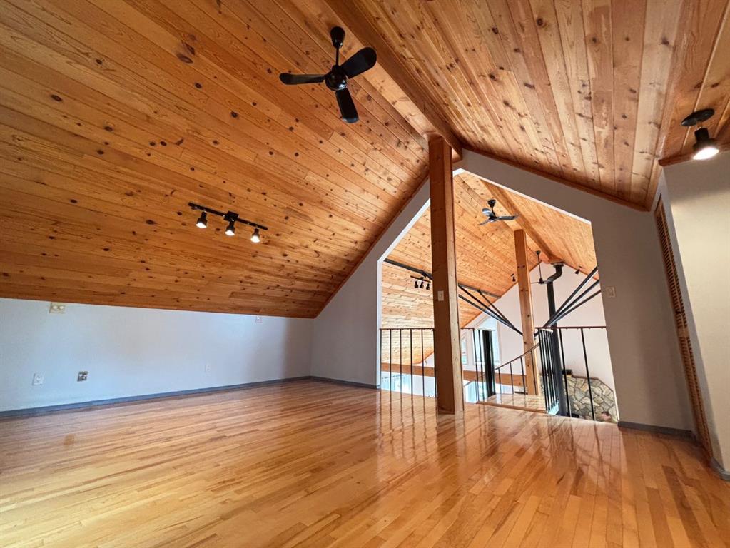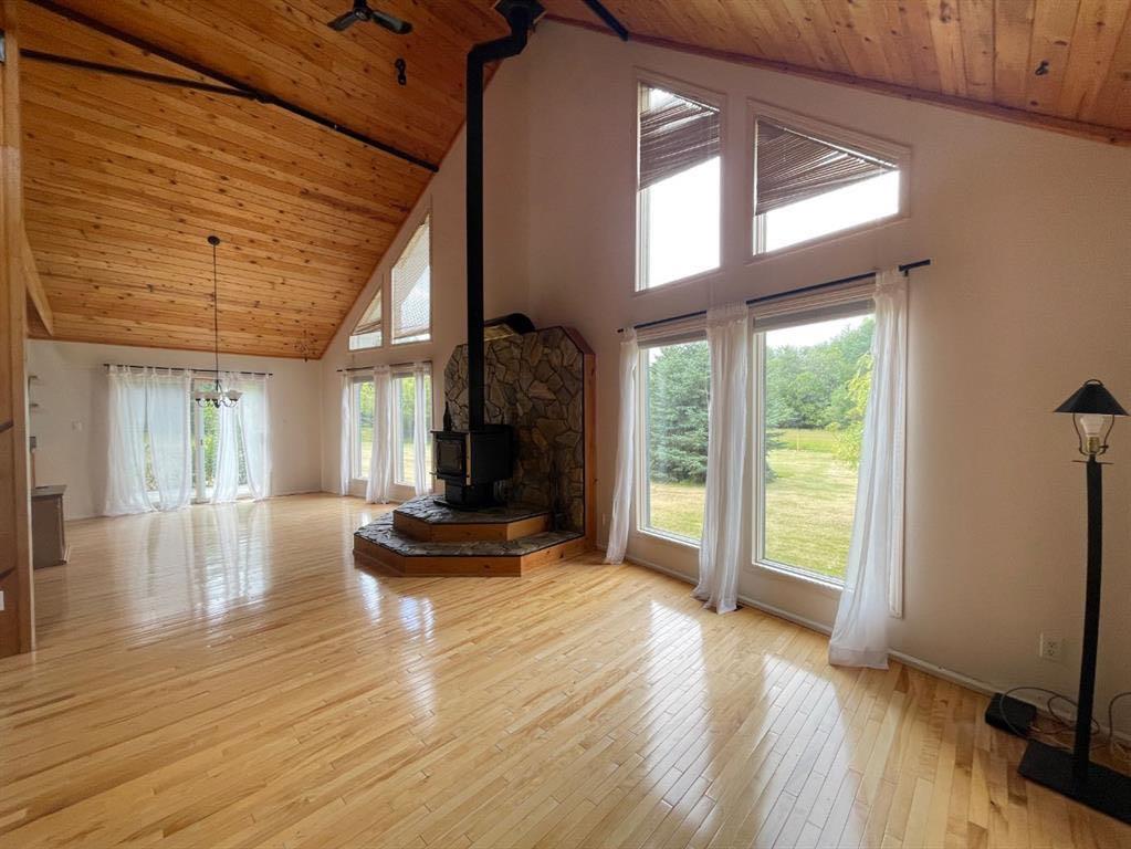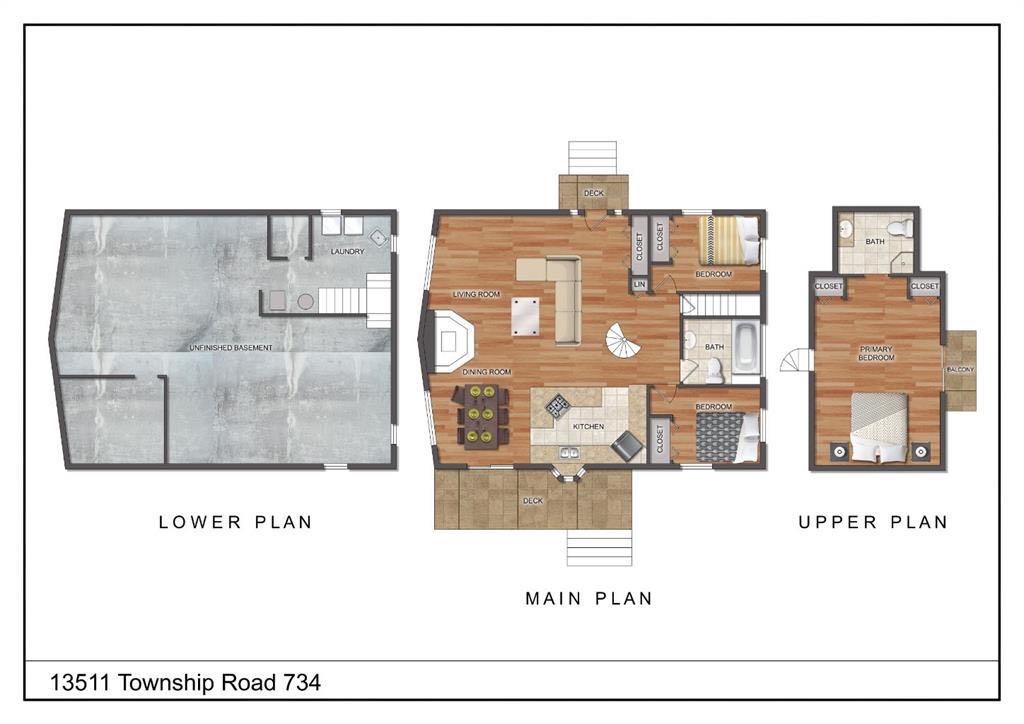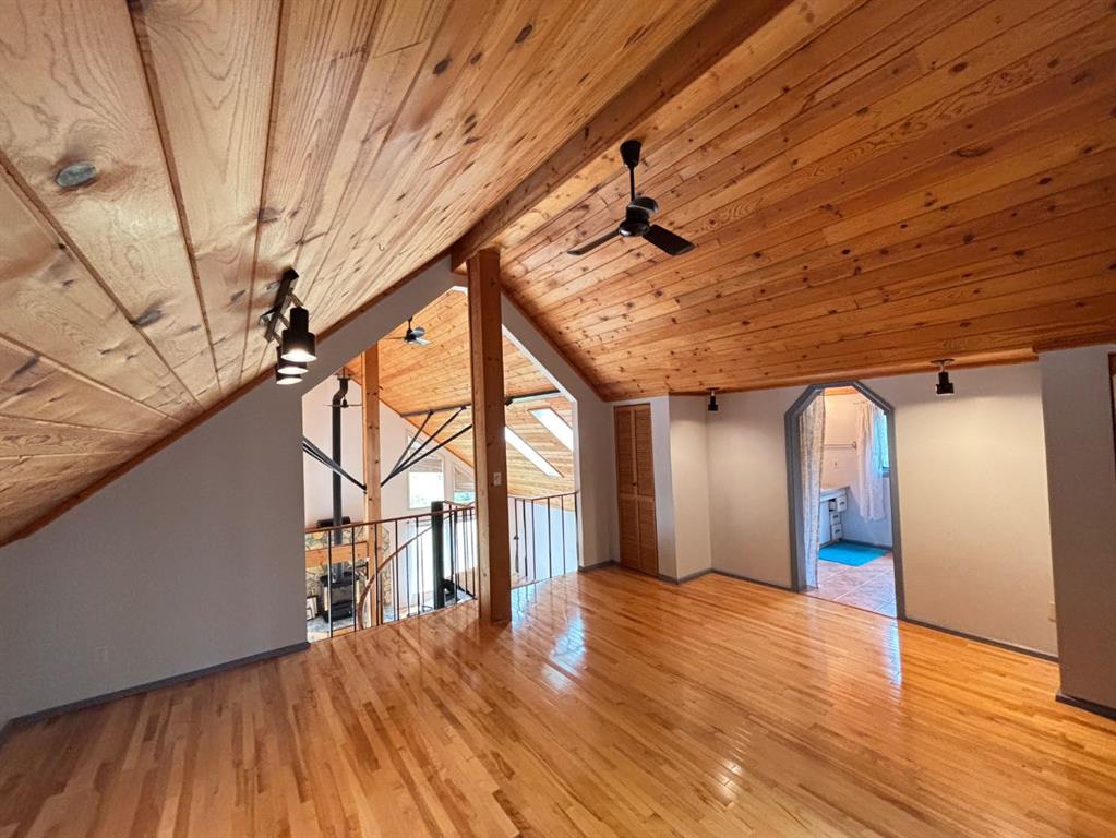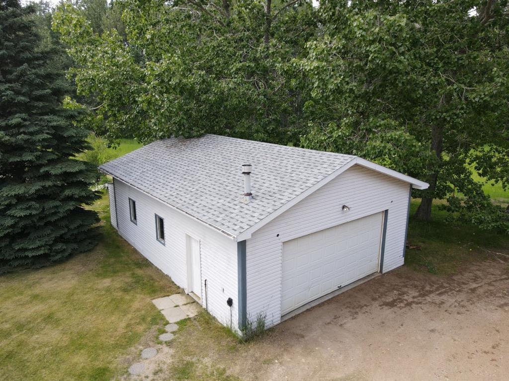 Tucked away in a natural setting, this A-frame home is the perfect blend of tranquility and possibility. The main level offers an open-concept layout where the bright living area, kitchen, and dining space flow seamlessly together, accompanied by two bedrooms and a spacious bathroom featuring a sleek black soaking tub set before a picture window. Ascend the spiral staircase to discover a private primary suite, complete with an ensuite bath and a balcony that overlooks the serene landscape below. An unfinished basement provides a blank canvas—ready to become a family room, extra bedrooms, or a custom space tailored to your needs. Outside, a detached heated double garage offers ample storage or workshop potential, while the land itself is a true sanctuary. This lush, sheltered ecosystem nurtures native plants and trees, creating a natural windbreak and water source that nature enthusiasts will adore. Whether you seek a peaceful countryside home, a recreational getaway, or a hobby farm, this property delivers an extraordinary combination of comfort, space, and natural beauty. Call today to book your viewing: immediate possesssion available.