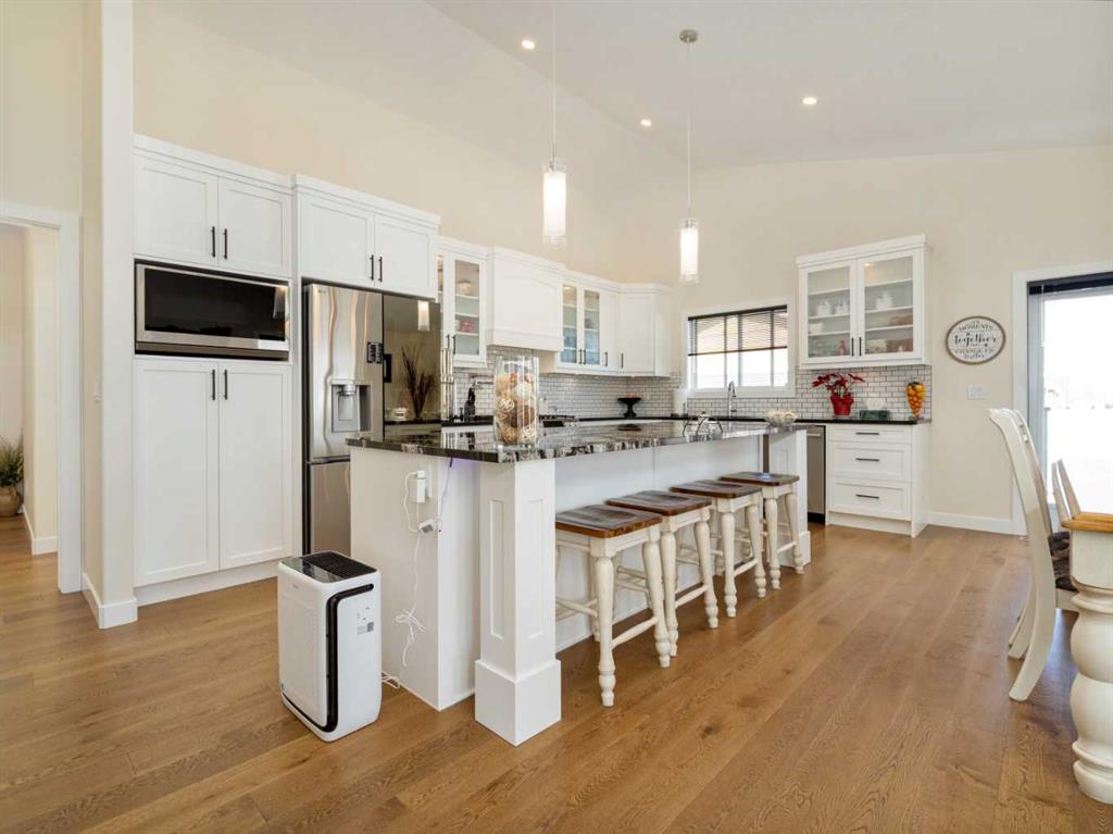Welcome to your dream home! This beautifully built bungalow shines with pride of ownership and class offering a perfect blend of comfort and style. Step inside to a bright, open-concept living space and a cozy living room, ideal for relaxation. The gourmet kitchen boasts stunning granite countertops, a large 9-foot island perfect for entertaining, and a pantry complete with convenient pullouts and motion lighting. A laundry room and a 2-piece bathroom add to the convenience of this level, while the abundance of natural light from large windows brightens every corner. The main floor includes a spacious primary suite with a walk-in closet and a luxurious 6-piece ensuite bathroom. Designed for both relaxation and entertainment, the basement features a large family room perfect for gatherings, two additional bedrooms, and a full bathroom. Step outside to an exceptionally well-kept fenced yard, creating the perfect setting for summer BBQs and gatherings. Additional highlights of this home include high-end appliances, a stylish stove faucet, vaulted ceilings on the main floor and in the master suite, and 8-foot ceilings in the basement. You'll also enjoy a double attached garage, architectural lighting enhancing the exterior, underground sprinklers for effortless yard maintenance. This home truly checks all the boxes for modern living. Don't miss the opportunity to make it yours!
