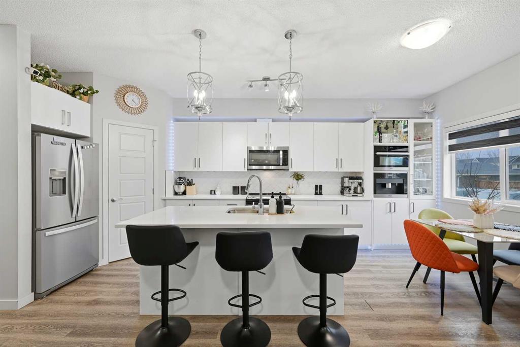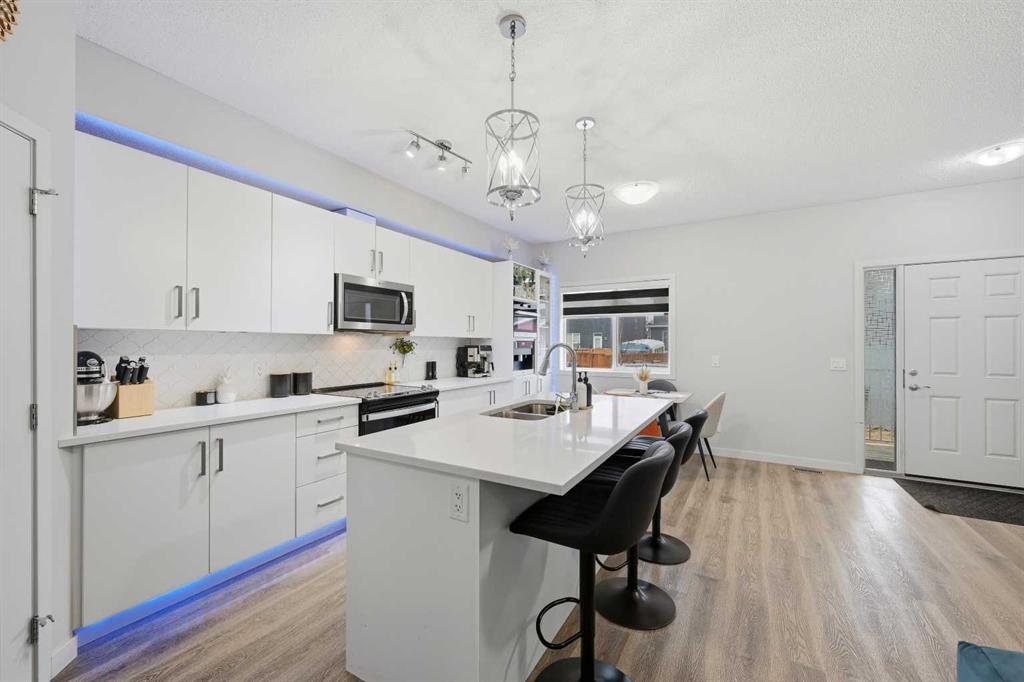 Experience refined living in this elegantly upgraded townhouse located in the sought-after community of Redstone. This beautifully appointed home offers 2 spacious bedrooms and 2.5 baths, complemented by a fully finished basement featuring an additional full bedroom, a dedicated office/den, and a full washroom—perfect for extended family, guests, or a private workspace. Step into a chef-inspired kitchen that truly sets this home apart. Thoughtfully designed with premium stainless steel appliances, an extended kitchen layout, quartz countertops, and high-end built-in Miele appliances, including a wall oven and a built-in coffee machine, this space blends luxury with everyday functionality. Large, well-placed windows fill the home with abundant natural light, enhancing the warm and inviting atmosphere. This is a non-smoking, exceptionally well-kept home that reflects pride of ownership throughout. Perfectly situated, this property is just a 2–3 minute walk to the nearby shopping plaza, with a brand-new commercial plaza currently being developed on the opposite side—bringing even more convenience and value to the area. Enjoy close proximity to parks, playgrounds, and schools, making it an ideal choice for families and professionals alike. An assigned parking stall adds to the everyday ease. A rare opportunity to own a stylish, move-in-ready home in one of Calgary’s fastest-growing communities. This property won't last long. Call you favorite realtor to book a viewing.