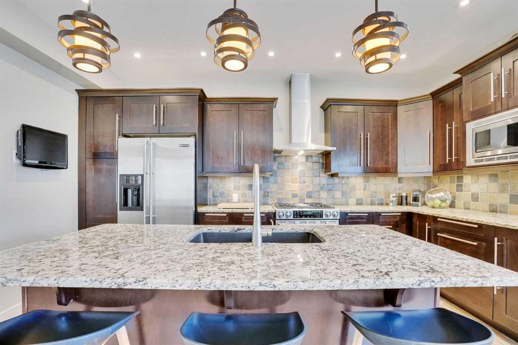 Discover elevated inner-city living in the heart of Altadore—where modern luxury meets an unbeatable lifestyle. Perfectly positioned just steps from River Park, Sandy Beach, and the scenic Elbow River, and only minutes to the vibrant energy of Marda Loop and 17th Avenue, this location offers the ultimate blend of urban convenience and natural beauty. With top-rated schools nearby and effortless access to downtown via Crowchild Trail or transit, every element of city living is at your fingertips. From the moment you arrive, the home captivates with a bold, Tuscan-inspired interior. Inside, a sun-filled front den/office area sets the tone for sophisticated living. At the heart of the home, a chef-inspired kitchen is masterfully crafted with full-height custom cabinetry, sleek surfaces, perfectly anchored by an oversized island designed for both entertaining and everyday living. The adjoining living space invites relaxation with an adobe-inspired fireplace and refined ambiance, designer powder room add a layer of quiet, European-inspired luxury to the main floor. Upstairs, retreat to your private sanctuary. The primary suite offers a tranquil escape, complete with a spacious walk-in closet and a spa-caliber ensuite featuring dual vanities, a deep soaker tub, and a beautifully tiled shower. Two additional bedrooms, a stylish full bath, and an upper-level laundry room provide comfort and practicality for modern living. The fully finished lower level walk out expands your living experience with a spacious recreation room, wet bar, media zone, fourth bedroom, and full bath—ideal for entertaining, hosting guests, or simply enjoying everyday life to the fullest. The fully landscaped backyard offers privacy and features a double car garage. Set in one of Calgary’s most sought-after communities, this exceptional Altadore home delivers a rare combination of location, design, and livability. In the heart of Altadore, where location meets impeccable design, this residence is crafted to grow with you and elevate your everyday living.