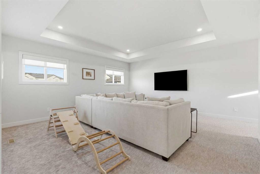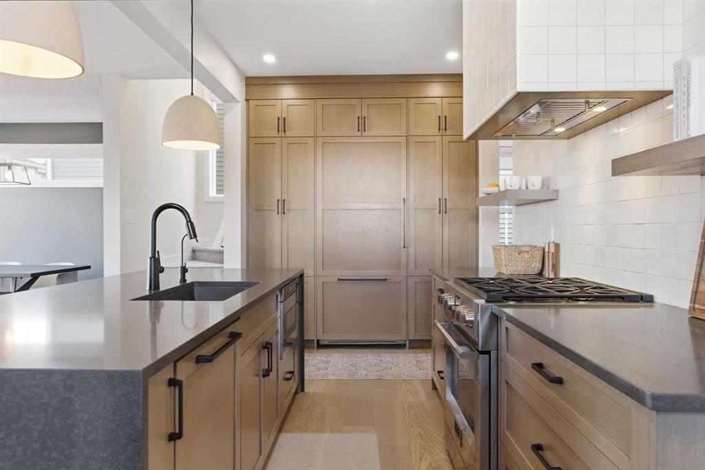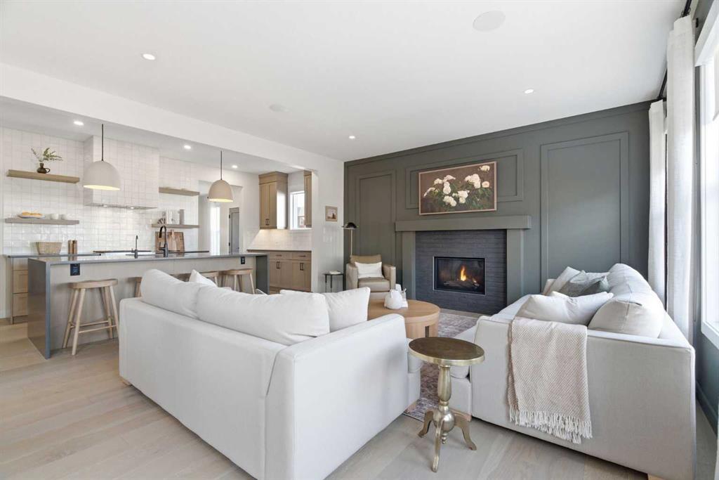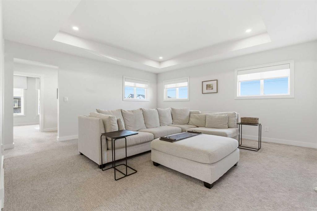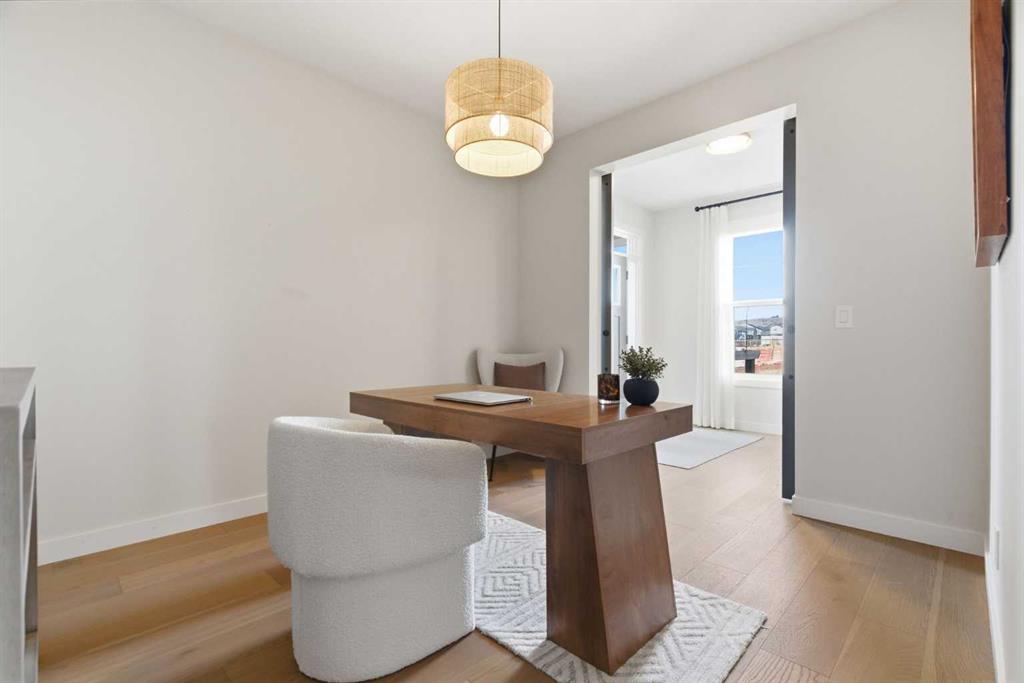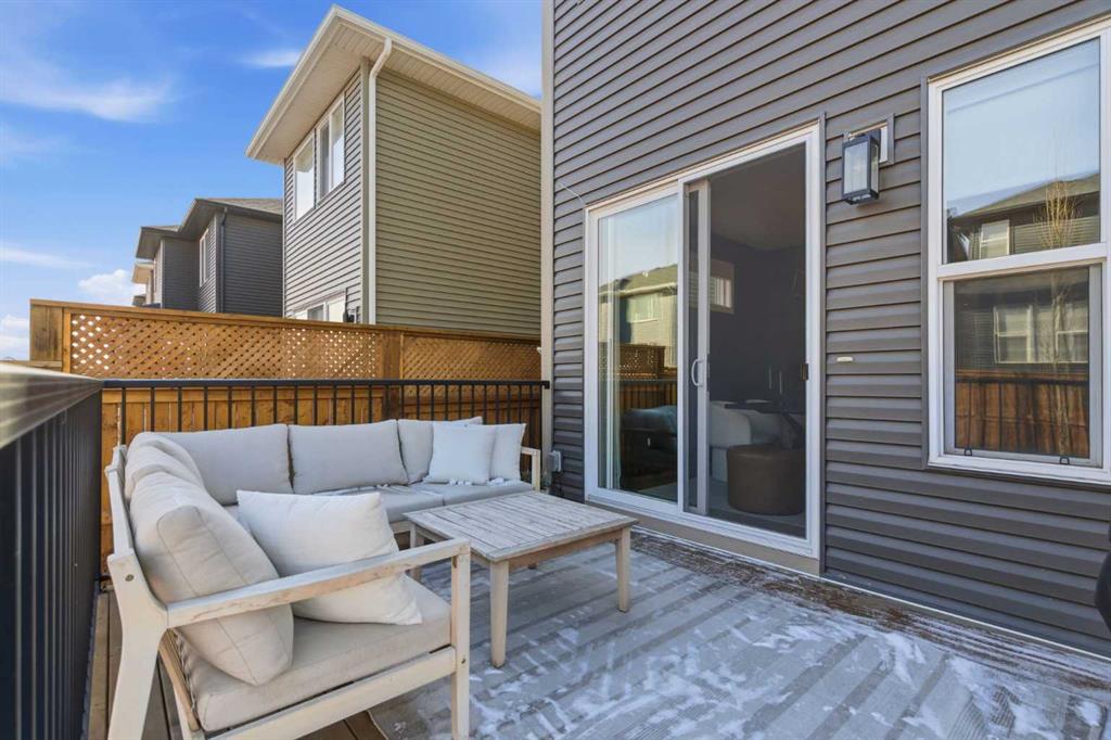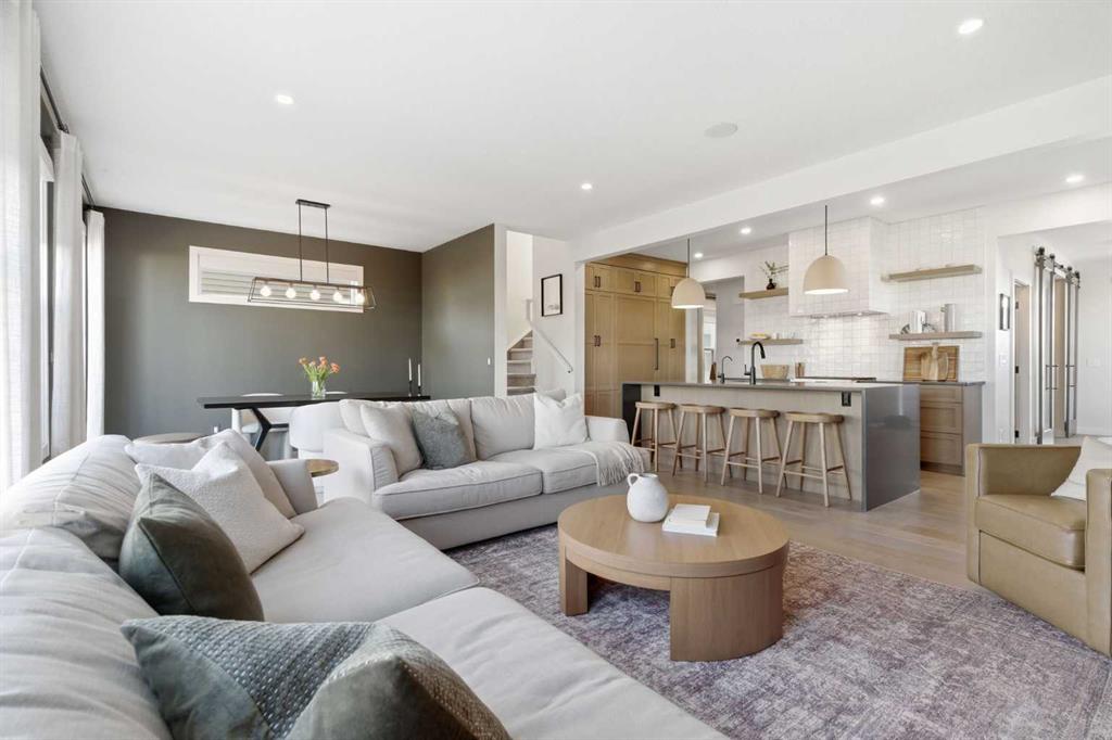 4 BEDROOMS | 3 1/2 BATHROOMS | 2-STOREY | 3,600+ SQFT OF LIVING SPACE | DOUBLE ATTACHED GARAGE | FULLY DEVELOPED BASEMENT | CORNER LOT | Welcome to this stunning Trico-built former showhome located in the sought-after community of Sirocco at Pine Creek, offering over 3,600 sqft of beautifully finished living space with 4 bedrooms and 3.5 bathrooms. Situated on a corner lot, this home is loaded with high-end upgrades and thoughtfully designed for both everyday living and entertaining. As you enter the home, you are greeted by soaring 9-foot ceilings and rich white oak hardwood flooring that flows throughout the main level. The bright and inviting living room features a gas fireplace and elegant decorative wall paneling, creating a warm and refined space to gather. Just off the foyer, a versatile flex room with a glass barn door and striking stone feature wall provides the perfect space for a home office or formal dining room. The heart of the home is the designer kitchen, showcasing white oak cabinetry with integrated appliances, including a hidden fridge and dishwasher, high-end gas range, built-in microwave, and a statement backsplash. Quartz countertops with rounded edges, a large island with waterfall edge and flush eating bar, and full-height cabinetry with crown moulding complete this stunning space. The adjacent dining area opens onto the rear deck and fully fenced landscaped backyard with a stone patio and built-in fire pit - the perfect place for entertaining. A walkthrough butler’s pantry leads to the mudroom with built-in lockers and convenient access to the double attached garage. Upstairs, you’ll find a spacious bonus room with tray ceilings and large windows, along with a convenient study nook. The luxurious primary retreat features a statement stone feature wall, a large walk-in closet with direct access to the laundry room, and a spa-inspired 5-piece ensuite with dual vanities, soaker tub, and a glass shower with bench. Two additional bedrooms, each with their own walk-in closet, and a full 4-piece bathroom complete this level. The fully developed basement with 9-foot ceilings offers even more living space, including a large recreation room with play area, a fourth bedroom, and a full bathroom, making it ideal for guests or a growing family. Additional upgrades include central air conditioning, built-in sound system on the main floor and basement, CAT5 wiring, electronic blinds, and sump pump. Located close to parks, playgrounds, and pathways, Sirocco Golf Course, and Spruce Meadows. This exceptional home offers luxury, space, and functionality in one of Calgary’s newest and most desirable communities. Book your showing today!
