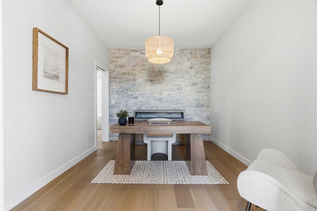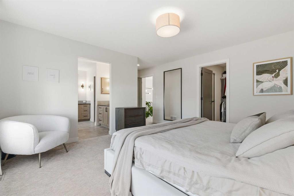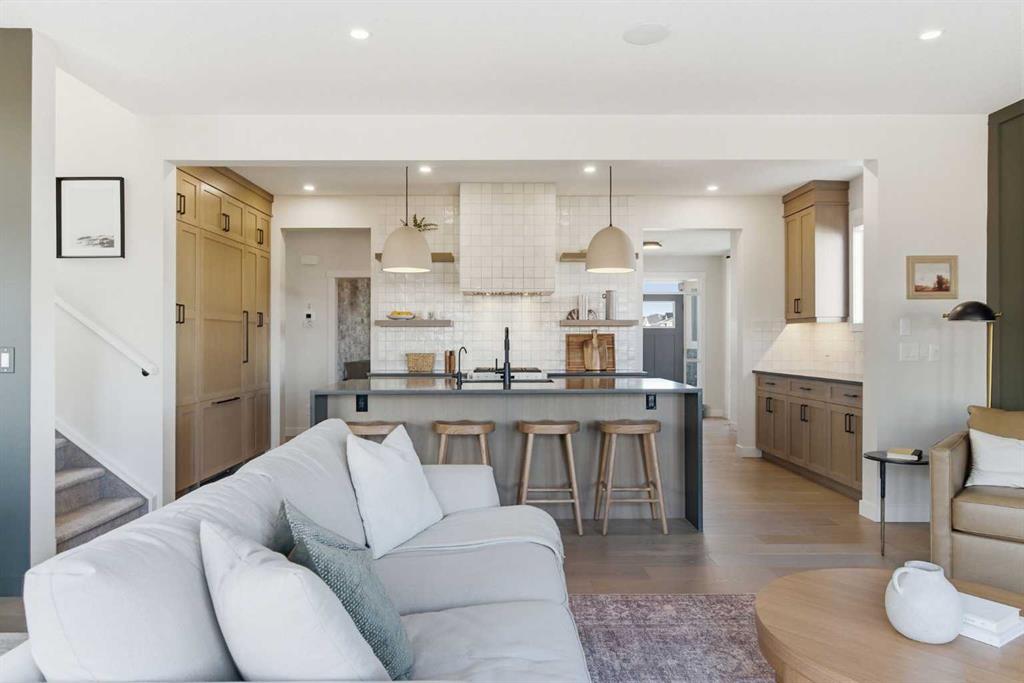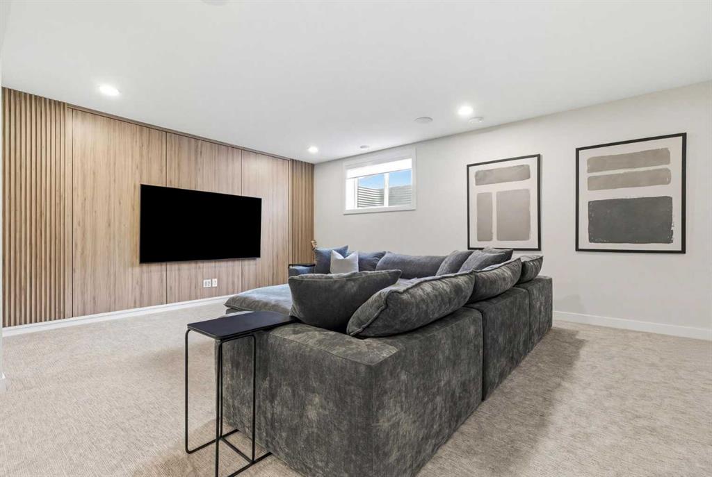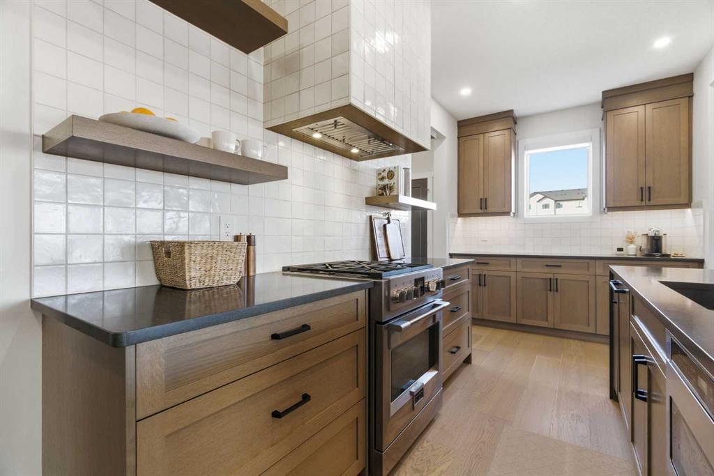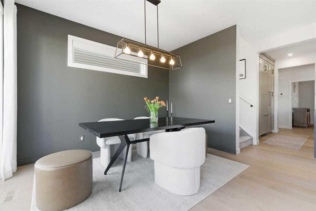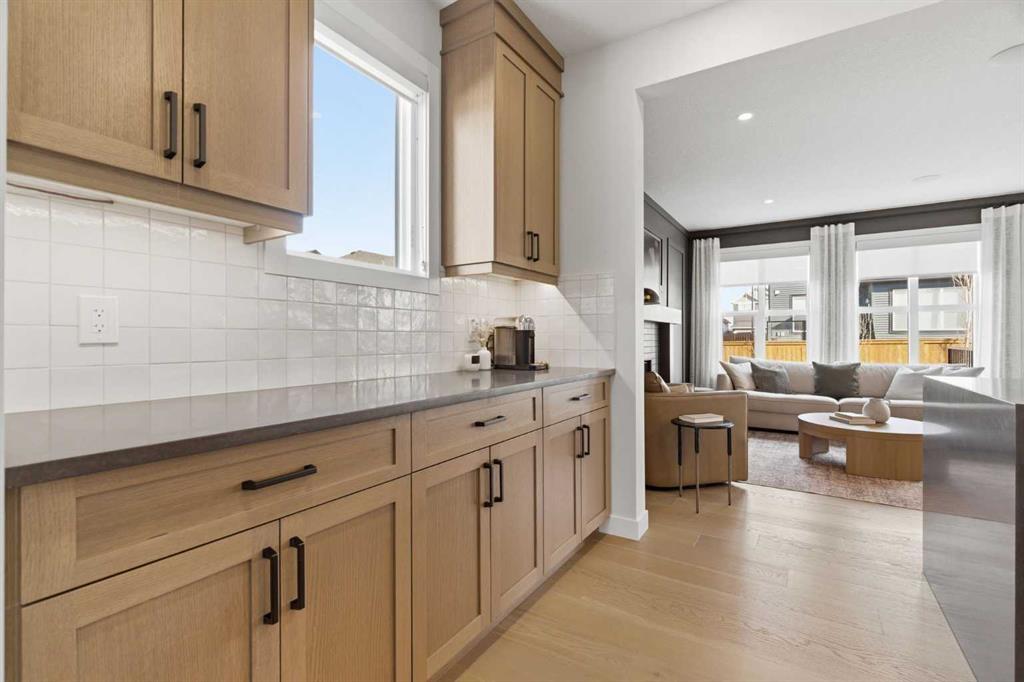 4 BEDROOMS | 3 1/2 BATHROOMS | 2-STOREY | 3,600+ SQFT OF LIVING SPACE | DOUBLE ATTACHED GARAGE | FULLY DEVELOPED BASEMENT | CORNER LOT | Welcome to this stunning Trico-built former showhome located in the sought-after community of Sirocco at Pine Creek, offering over 3,600 sqft of beautifully finished living space with 4 bedrooms and 3.5 bathrooms. Situated on a corner lot, this home is loaded with high-end upgrades and thoughtfully designed for both everyday living and entertaining. As you enter the home, you are greeted by soaring 9-foot ceilings and rich white oak hardwood flooring that flows throughout the main level. The bright and inviting living room features a gas fireplace and elegant decorative wall paneling, creating a warm and refined space to gather. Just off the foyer, a versatile flex room with a glass barn door and striking stone feature wall provides the perfect space for a home office or formal dining room. The heart of the home is the designer kitchen, showcasing white oak cabinetry with integrated appliances, including a hidden fridge and dishwasher, high-end gas range, built-in microwave, and a statement backsplash. Quartz countertops with rounded edges, a large island with waterfall edge and flush eating bar, and full-height cabinetry with crown moulding complete this stunning space. The adjacent dining area opens onto the rear deck and fully fenced landscaped backyard with a stone patio and built-in fire pit - the perfect place for entertaining. A walkthrough butler’s pantry leads to the mudroom with built-in lockers and convenient access to the double attached garage. Upstairs, you’ll find a spacious bonus room with tray ceilings and large windows, along with a convenient study nook. The luxurious primary retreat features a statement stone feature wall, a large walk-in closet with direct access to the laundry room, and a spa-inspired 5-piece ensuite with dual vanities, soaker tub, and a glass shower with bench. Two additional bedrooms, each with their own walk-in closet, and a full 4-piece bathroom complete this level. The fully developed basement with 9-foot ceilings offers even more living space, including a large recreation room with play area, a fourth bedroom, and a full bathroom, making it ideal for guests or a growing family. Additional upgrades include central air conditioning, built-in sound system on the main floor and basement, CAT5 wiring, electronic blinds, and sump pump. Located close to parks, playgrounds, and pathways, Sirocco Golf Course, and Spruce Meadows. This exceptional home offers luxury, space, and functionality in one of Calgary’s newest and most desirable communities. Book your showing today!