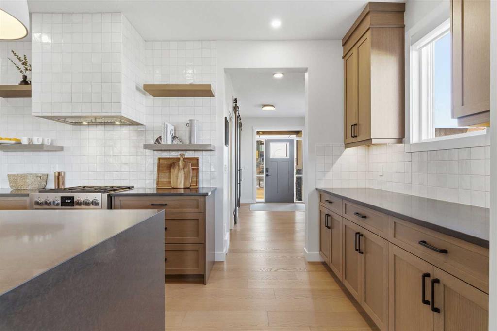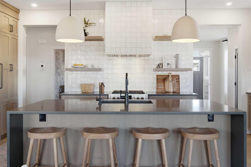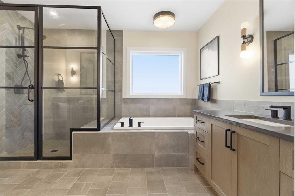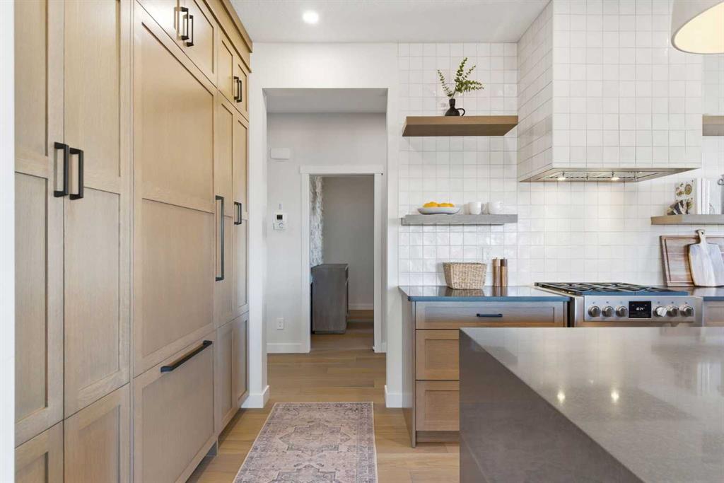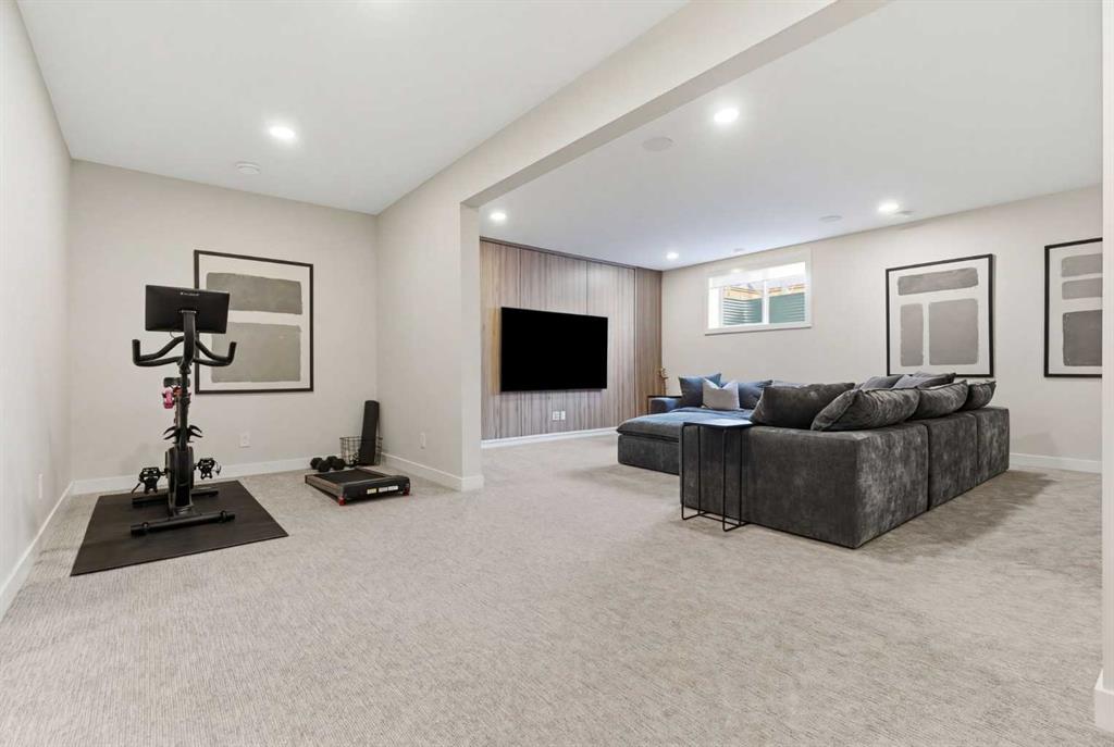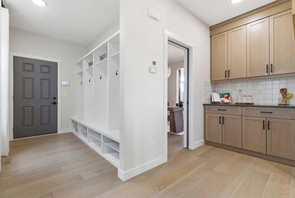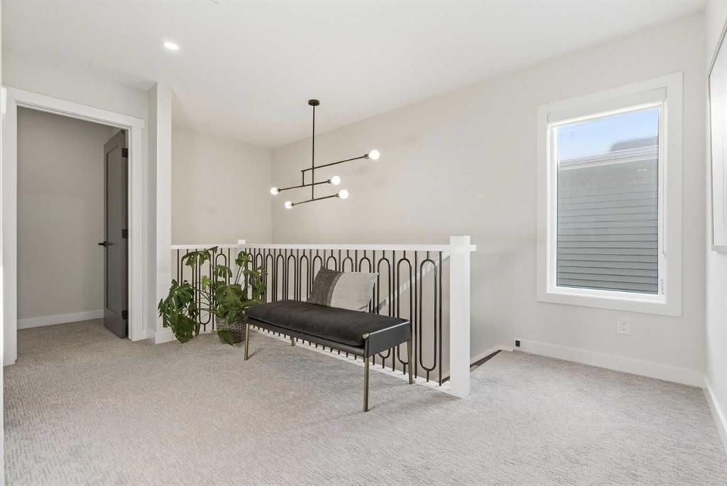 4 BEDROOMS | 3 1/2 BATHROOMS | 2-STOREY | 3,600+ SQFT OF LIVING SPACE | DOUBLE ATTACHED GARAGE | FULLY DEVELOPED BASEMENT | CORNER LOT | Welcome to this stunning Trico-built former showhome located in the sought-after community of Sirocco at Pine Creek, offering over 3,600 sqft of beautifully finished living space with 4 bedrooms and 3.5 bathrooms. Situated on a corner lot, this home is loaded with high-end upgrades and thoughtfully designed for both everyday living and entertaining. As you enter the home, you are greeted by soaring 9-foot ceilings and rich white oak hardwood flooring that flows throughout the main level. The bright and inviting living room features a gas fireplace and elegant decorative wall paneling, creating a warm and refined space to gather. Just off the foyer, a versatile flex room with a glass barn door and striking stone feature wall provides the perfect space for a home office or formal dining room. The heart of the home is the designer kitchen, showcasing white oak cabinetry with integrated appliances, including a hidden fridge and dishwasher, high-end gas range, built-in microwave, and a statement backsplash. Quartz countertops with rounded edges, a large island with waterfall edge and flush eating bar, and full-height cabinetry with crown moulding complete this stunning space. The adjacent dining area opens onto the rear deck and fully fenced landscaped backyard with a stone patio and built-in fire pit - the perfect place for entertaining. A walkthrough butler’s pantry leads to the mudroom with built-in lockers and convenient access to the double attached garage. Upstairs, you’ll find a spacious bonus room with tray ceilings and large windows, along with a convenient study nook. The luxurious primary retreat features a statement stone feature wall, a large walk-in closet with direct access to the laundry room, and a spa-inspired 5-piece ensuite with dual vanities, soaker tub, and a glass shower with bench. Two additional bedrooms, each with their own walk-in closet, and a full 4-piece bathroom complete this level. The fully developed basement with 9-foot ceilings offers even more living space, including a large recreation room with play area, a fourth bedroom, and a full bathroom, making it ideal for guests or a growing family. Additional upgrades include central air conditioning, built-in sound system on the main floor and basement, CAT5 wiring, electronic blinds, and sump pump. Located close to parks, playgrounds, and pathways, Sirocco Golf Course, and Spruce Meadows. This exceptional home offers luxury, space, and functionality in one of Calgary’s newest and most desirable communities. Book your showing today!