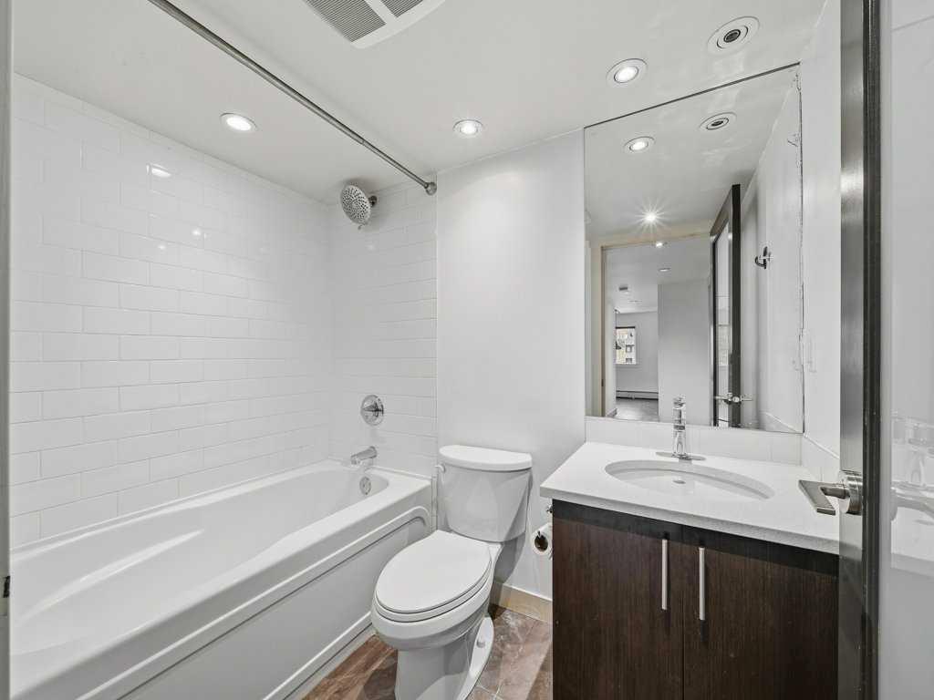 Vacant and available for immediate possession, this bright 2-bedroom, 1-bathroom condo offers an exceptional opportunity to enjoy life in one of Calgary’s most sought-after inner-city neighbourhoods. Ideally located in Lower Mount Royal on prestigious Cameron Avenue SW, this second-floor end unit offers added privacy, excellent natural light, and an unbeatable walkable lifestyle just steps from the shops, restaurants, cafés, and energy of 17th Avenue. Freshly painted and impeccably maintained, the home features attractive low-maintenance tile flooring throughout for a clean, cohesive look. The kitchen is well equipped with quartz countertops, rich maple shaker cabinetry, stainless steel appliances, an all-in-one washer/dryer, and generous prep space. The bathroom is equally well finished with quartz counters and a soaker tub. The spacious primary bedroom is complemented by a versatile second bedroom that works well for guests, a roommate, or a home office. Additional highlights include a private wraparound balcony, covered assigned parking conveniently located near the rear entrance, and a stylish, secure main entrance with beautiful character tilework. This pet-friendly building was extensively renovated in 2008 with updated windows and balconies, and also features a new roof completed in 2024. Exceptional value in a highly desirable inner-city location.
