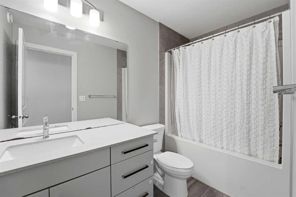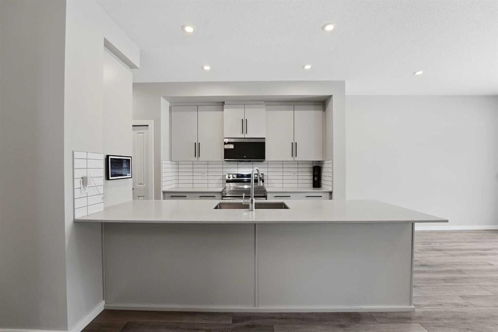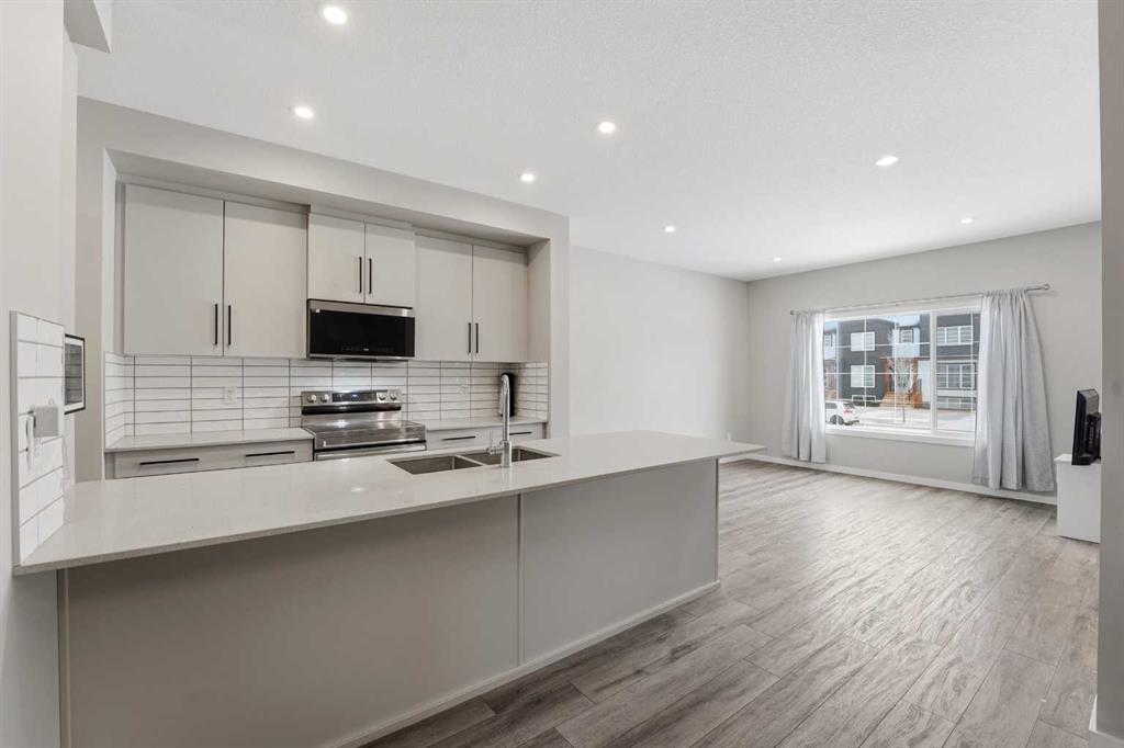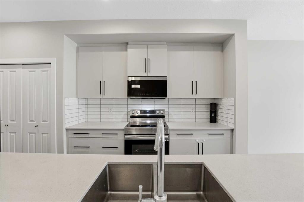 A two storey house with 3 bedrooms and 3 bathrooms. The front entryway greets you to the open style floor plan with laminate flooring that runs through the main floor. The living room is flooded with natural light through the large front window. Ceiling height kitchen cabinets are accented by quartz countertops, a new microwave hoodfan, stainless steel appliances, full tile backsplash, a large eating bar island with a sink, pot/pan drawers and a pantry for your convenience. There is a nice sized eating area and a powder room. Upstairs features 3 bedrooms, 2 bathrooms and a laundry closet. The king sized primary bedroom has a large walk through double sided closet & a 4 piece ensuite with an oversized glass/tile shower, an extended vanity, double sinks, quartz countertops and a water closet. The basement is unfinished and ready for your development with rough in for a bathroom. You'll love the backyard that features a 2 tier deck with a privacy wall and gazebo, vinyl fence and parking for two vehicles. The home features a Brilliant Light System, with touch dimmers, a screen and an app for Alexa to control the lights and thermostat. Better than new with all the appliances included, landscaping and fence! The home has solar panels (assumable contract).