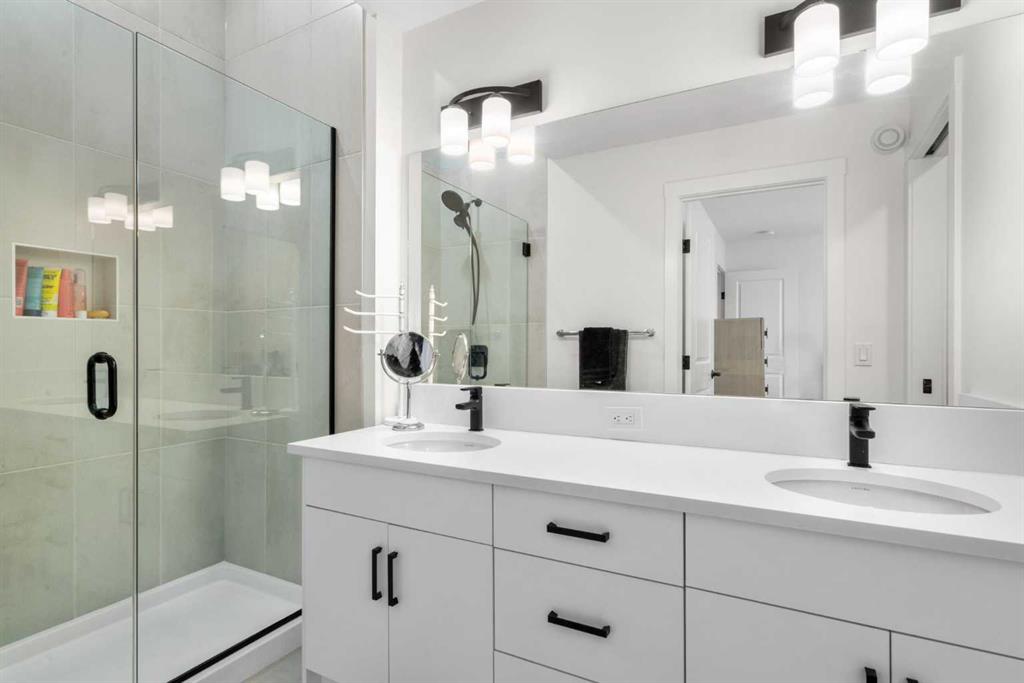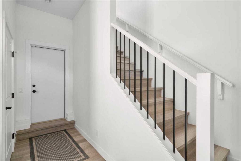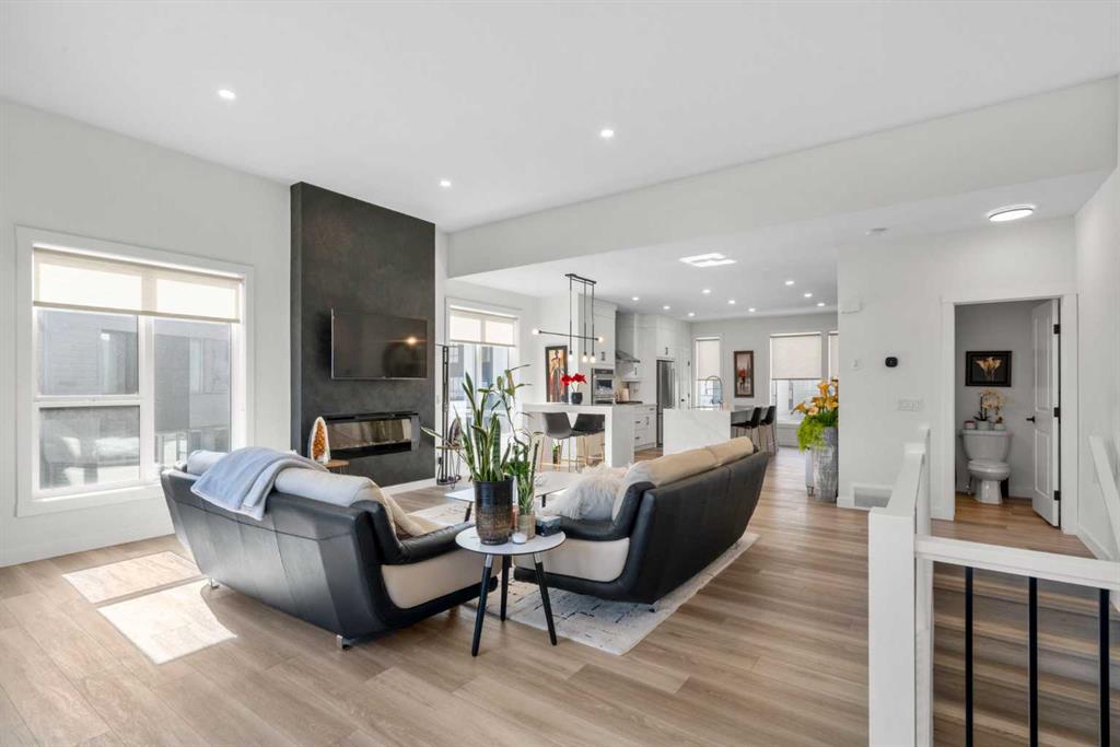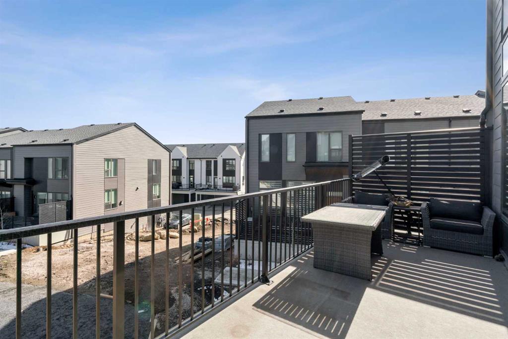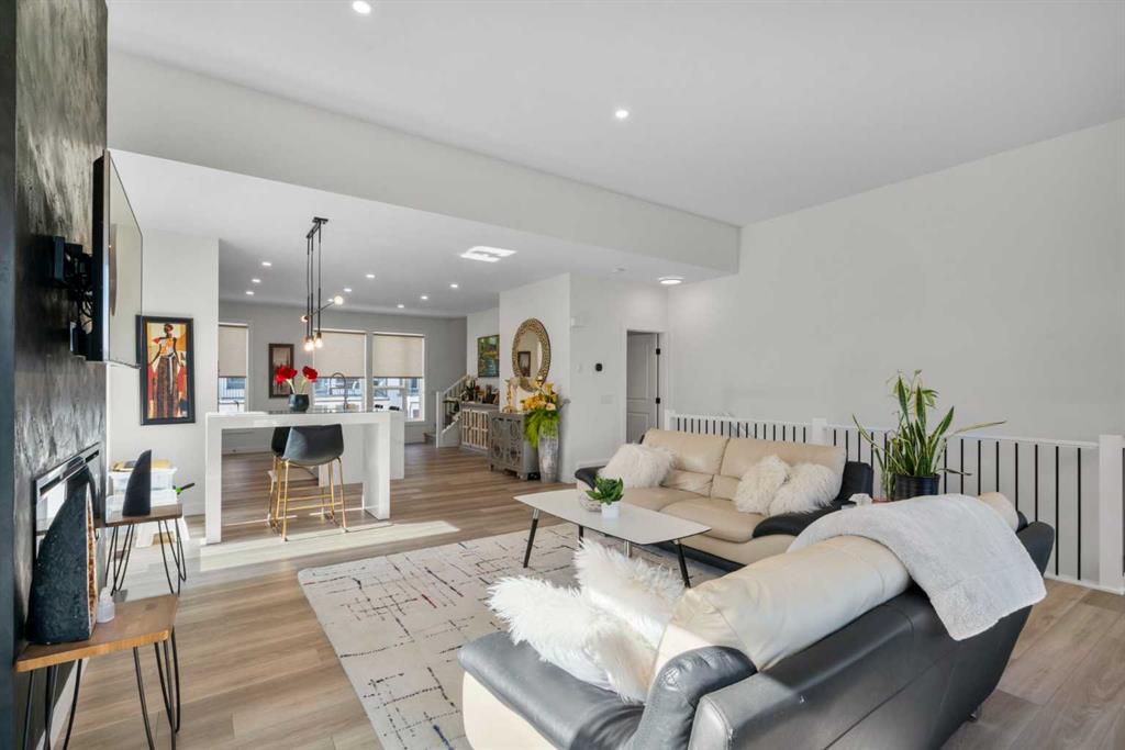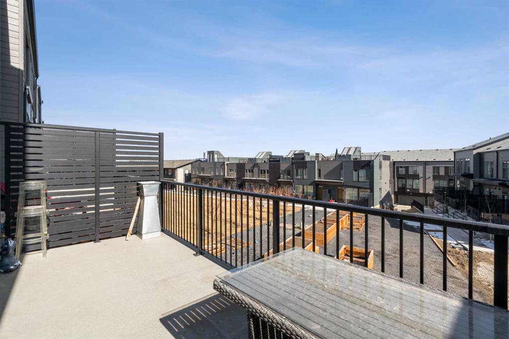 Perched atop one of the highest points in Crown Park, this striking Stanley plan walkout end unit townhome offers a rare combination of contemporary sophistication, exceptional functionality & sweeping downtown skyline views, making it a standout opportunity in Calgary’s premier urban communities. Boasting 2274 square feet of exquisitely upgraded living space & over $55,000 in thoughtful enhancements, this home is perfectly tailored for professionals, urban families & lifestyle driven buyers seeking a seamless blend of city convenience & serene natural surroundings. From the moment you arrive, a private east facing front patio greets you, overlooking a massive lush green space & beautifully maintained raised garden beds, instantly connecting you to the community’s outdoor lifestyle & sense of calm. Step inside to a versatile entry level flex space, perfect as a home office, gym, creative studio, or quiet retreat, with direct access to the double attached garage with a additional storage room. The main living level dazzles with soaring ceilings, oversized windows, an open concept layout drenched in natural light. At its heart, a chef inspired kitchen showcases a premium KitchenAid appliance package with gas cooktop, built-in oven, microwave & sleek range hood, complemented by dramatic quartz countertops with waterfall edges, a spacious island with seating & custom cabinetry complement these features, creating a stunning focal point for entertaining & everyday living. The dining area flows effortlessly into a generous living room anchored by a contemporary electric fireplace set against a full height artistic plaster feature wall, offering a perfect blend of warmth, style & sophistication. Step onto the full width east facing deck to enjoy serene green space & city skyline views, ideal for morning coffee, sunset cocktails, or quiet relaxation. Upstairs, the expansive primary suite features a walk-in closet, a luxurious private ensuite with upgraded tile surrounds & shower niches. two ample sized secondary bedrooms offer stunning downtown views, while a central bonus area provides flexible space for a reading nook, study, or children’s play area, complemented by convenient laundry. Every detail reflects thoughtful craftsmanship, from luxury vinyl plank flooring on the main level & tile in bathrooms, to custom blinds, additional pot lights, central air conditioning, sleek metal spindle railings, while EnerGuide certification ensures energy efficiency & lasting comfort. Situated in one of Calgary’s most vibrant & connected neighborhoods, residents enjoy immediate access to walking paths, parks, the Bow River, Douglas Fir & Quarry Trails, Shaganappi Golf Course, boutique fitness studios, dog friendly spaces plus some of the city’s finest dining & entertainment. With Bow Trail & the LRT nearby, commuting downtown or escaping to the mountains is effortless, blending urban excitement with outdoor adventure. This townhome is a statement of elevated modern living & design.